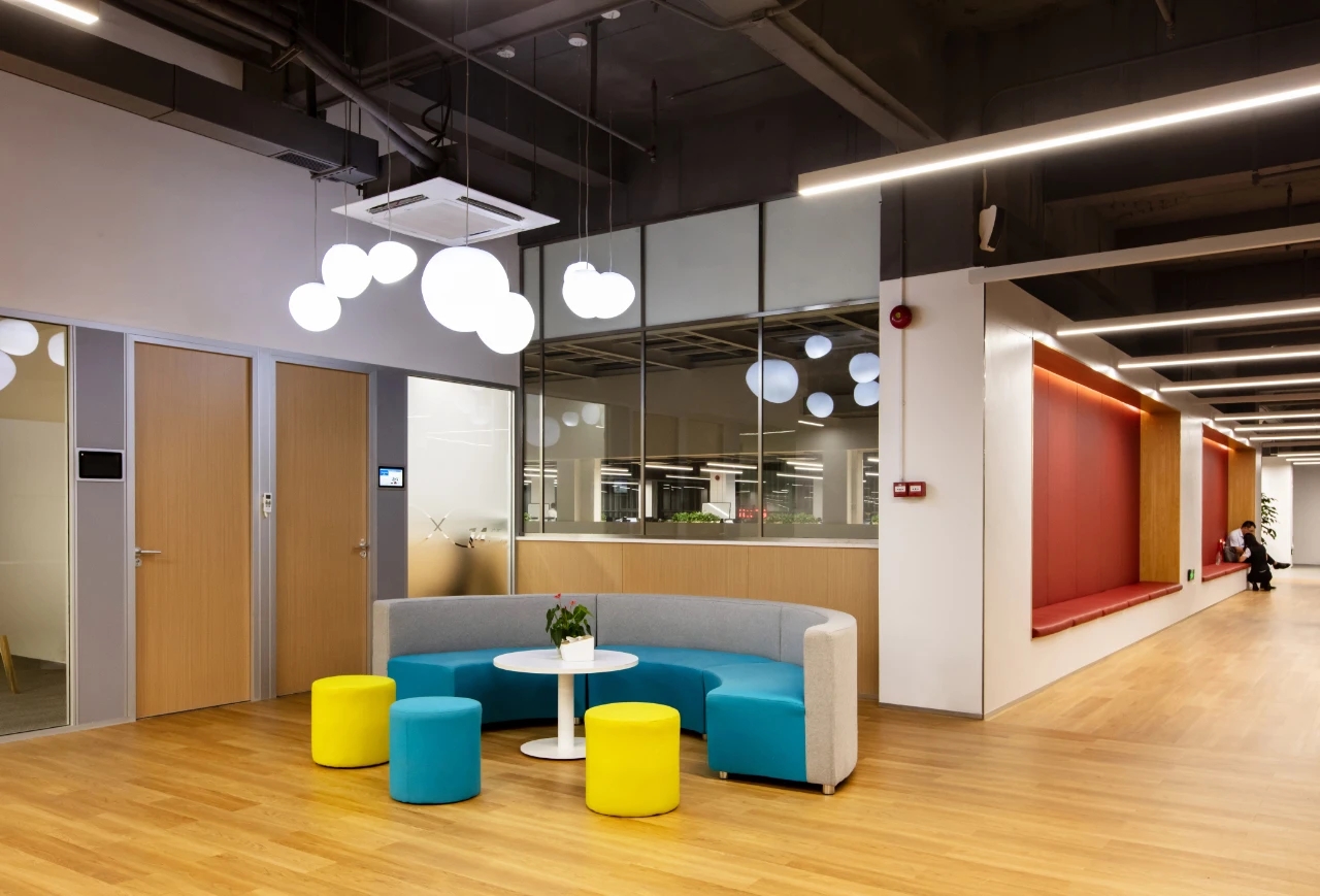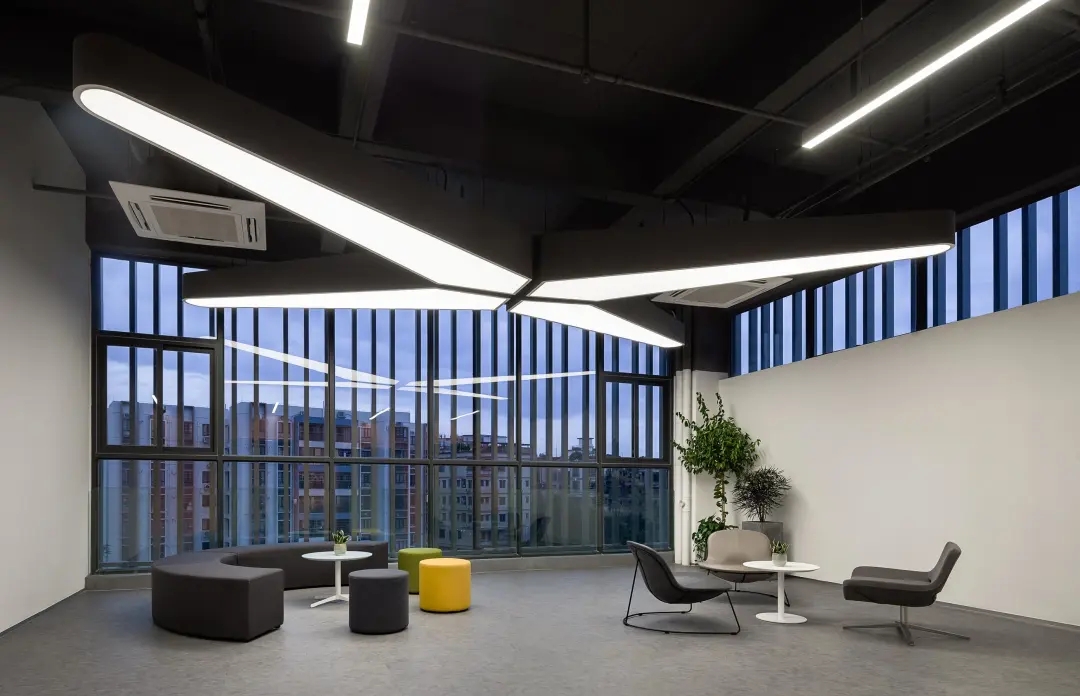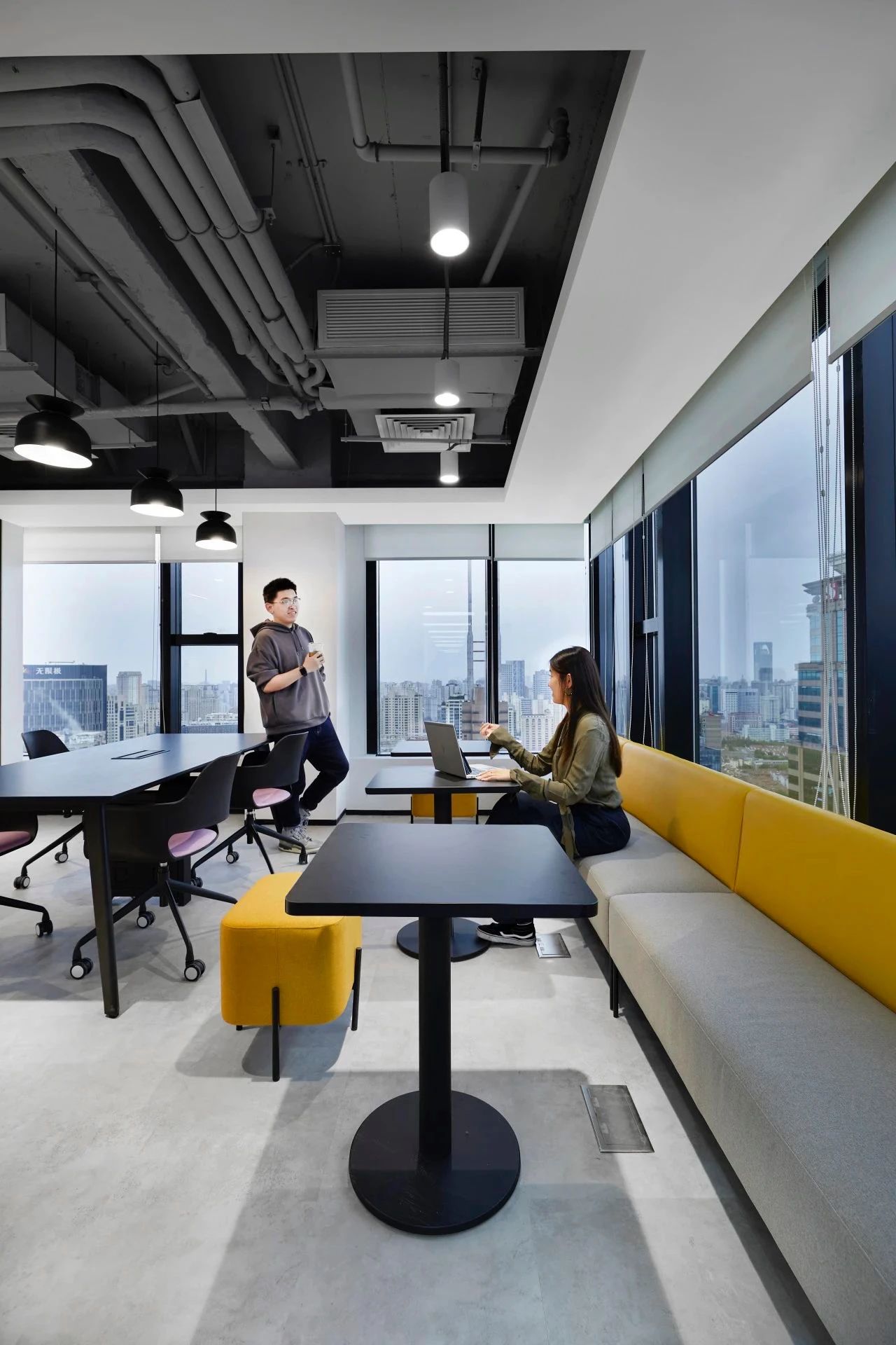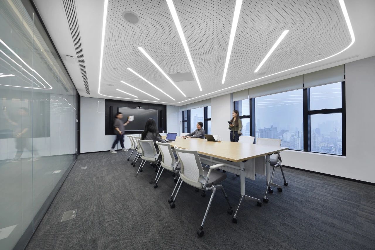 自然光线和舒适的工作环境:强调办公室的良好照明设计和充足的自然光线,如大窗户、透明隔断和明亮的灯光,让读者感受到办公室的明亮和舒适的工作环境。