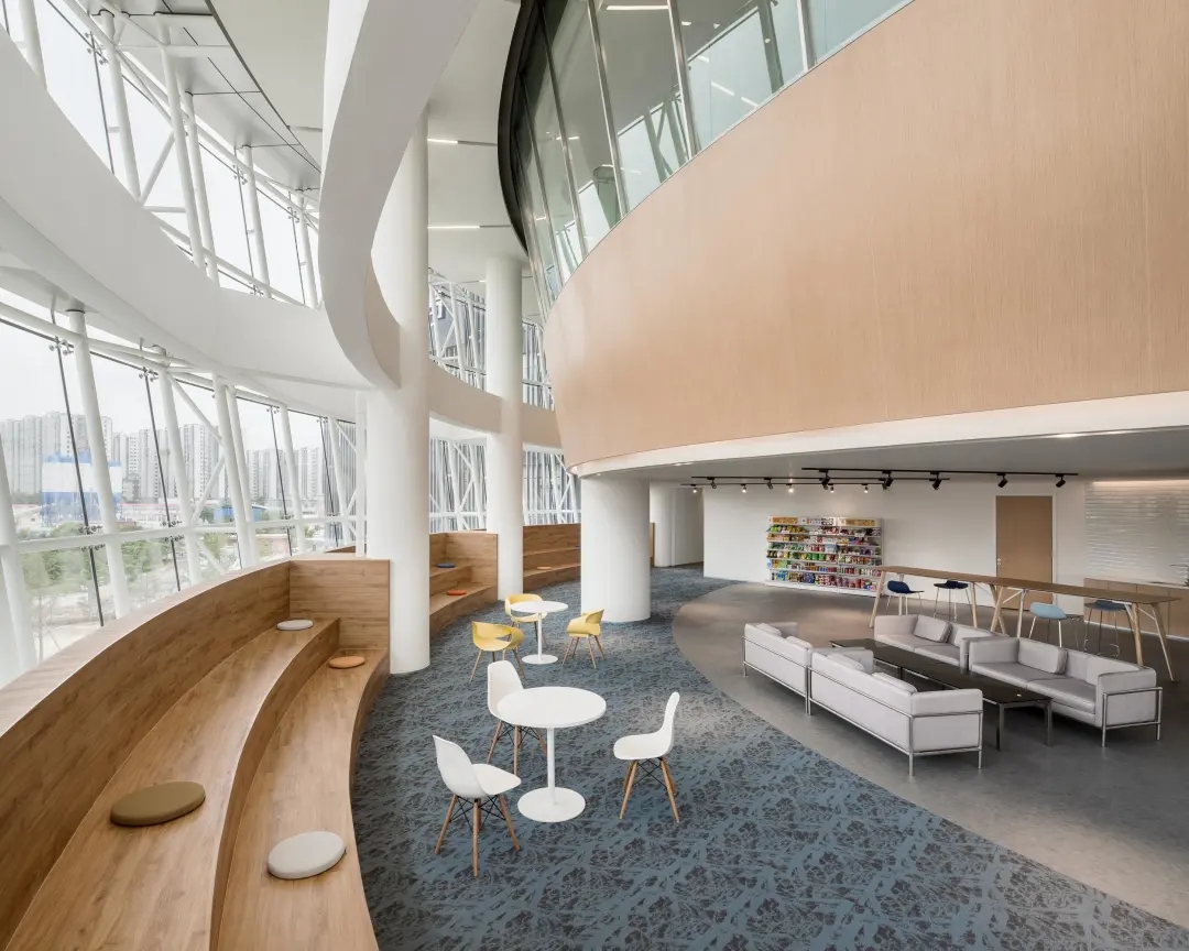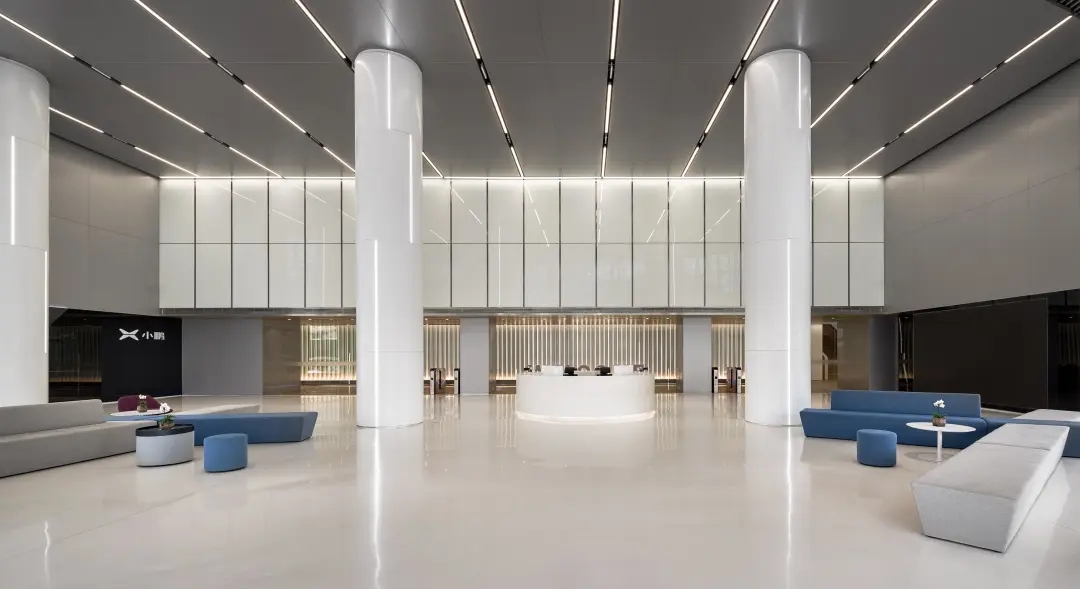 成熟的设计手法和空间的合理布局,让小鹏汽车总部办公大楼更具品质感;通过建筑语言塑造一个冷峻和炫酷气质、流畅而又富有科技感的现代化办公大楼;室内空间定义为开放、轻松、随性,用线性的语言去表达,采用丰富且有质感的材料去营造空间的通透性;