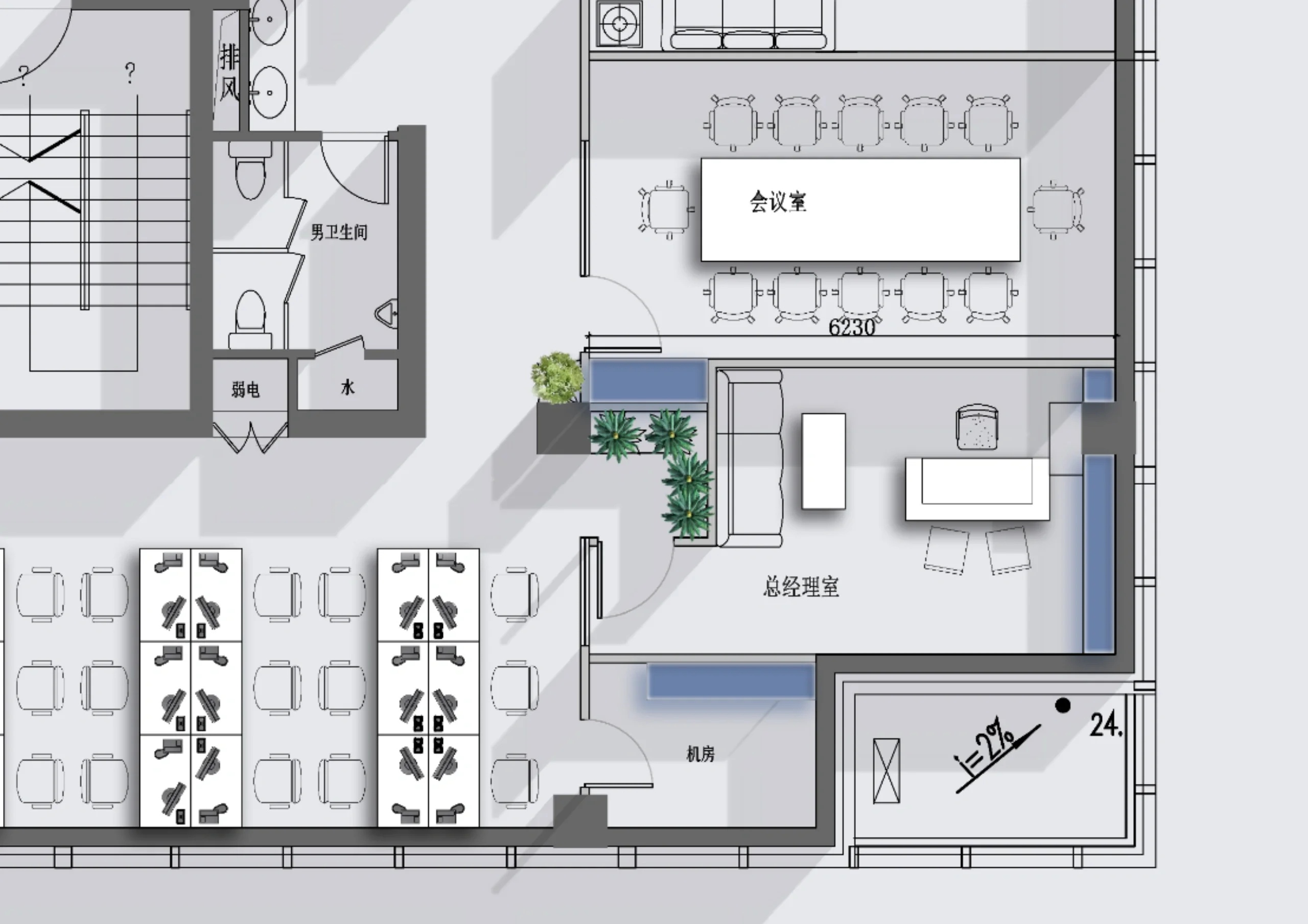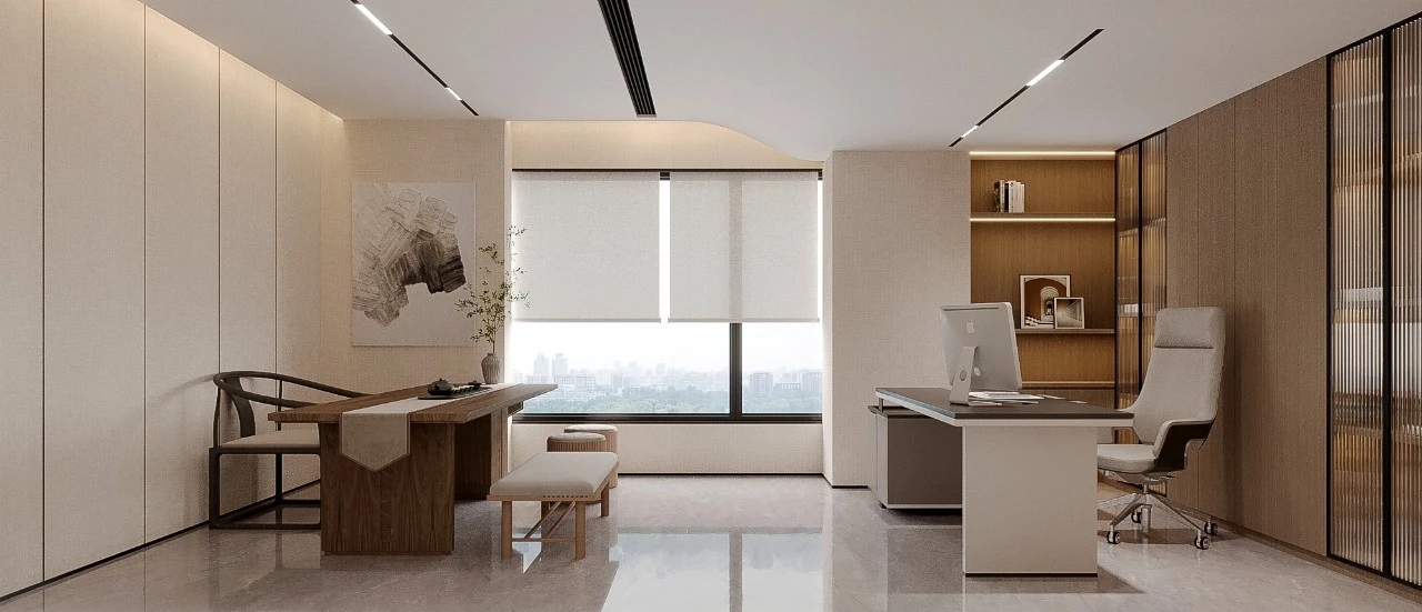 简约而精致的设计:介绍办公室的简约设计元素,如简洁的线条、干净的色彩和无多余装饰的空间布局,让读者感受到办公室的简约美感和精致细节。