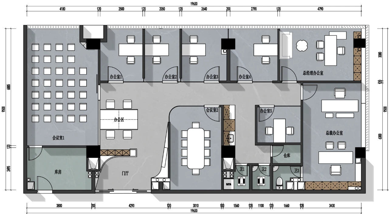 注重空间的利用和功能性:描述办公室的空间布局和功能分区,如合理的办公区域划分、充分利用墙壁和角落的储物空间,以及便捷的工作流程设计,让读者感受到办公室的高效和便利性。