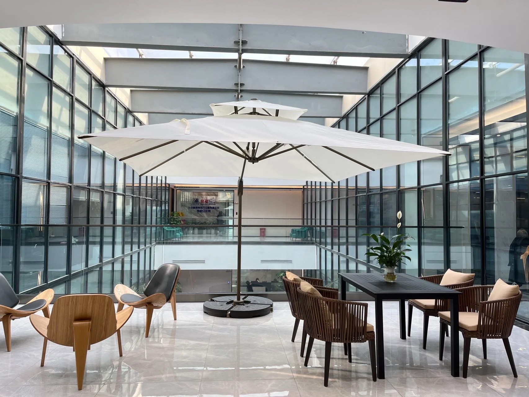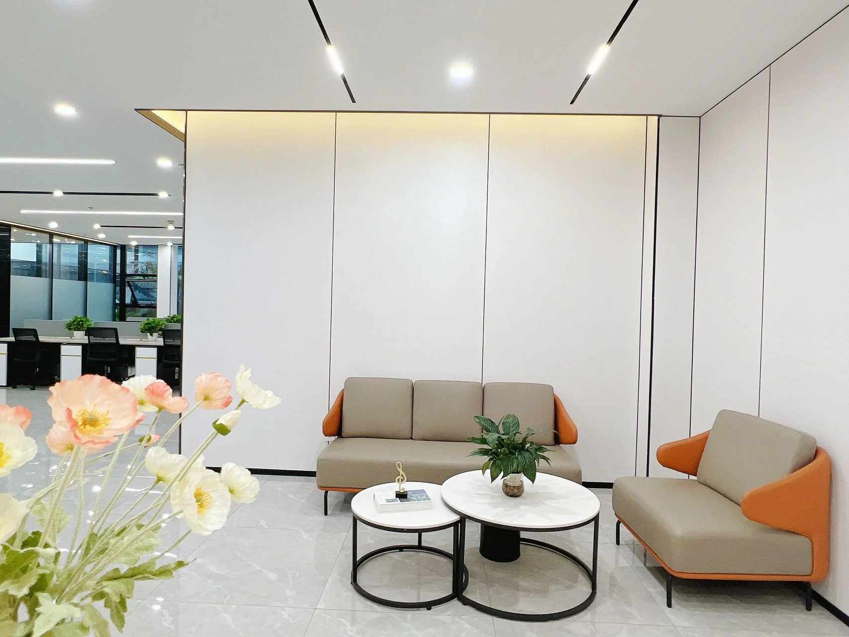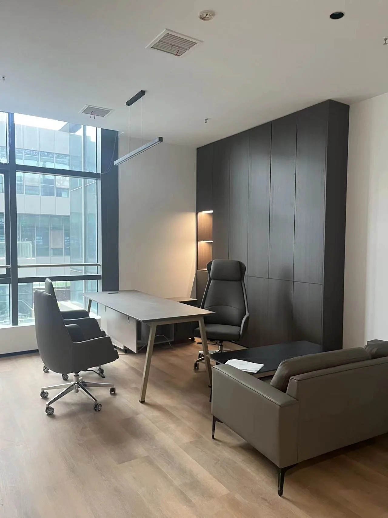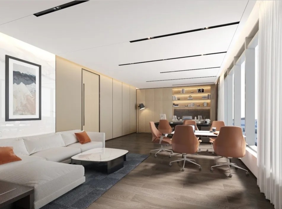 开放式的设计办公区,超常规的办公桌尺寸,以及桌面上方独立的照明控制等,在满足设计师日常工作需求的同时,兼顾了团队日常沟通讨论和办公舒适度的平衡,并且通过各个空间之间的互相联动,建立了一个平等、融合的工作氛围。办公室的次入口,与主入口一样都面向街区的公共走廊,是空间中另一处“现”的区域,我们在这个半户外空间设置了一个户外休闲区,既为社区住户提供日常休闲座位也适用于公司更多不同的办公情境。