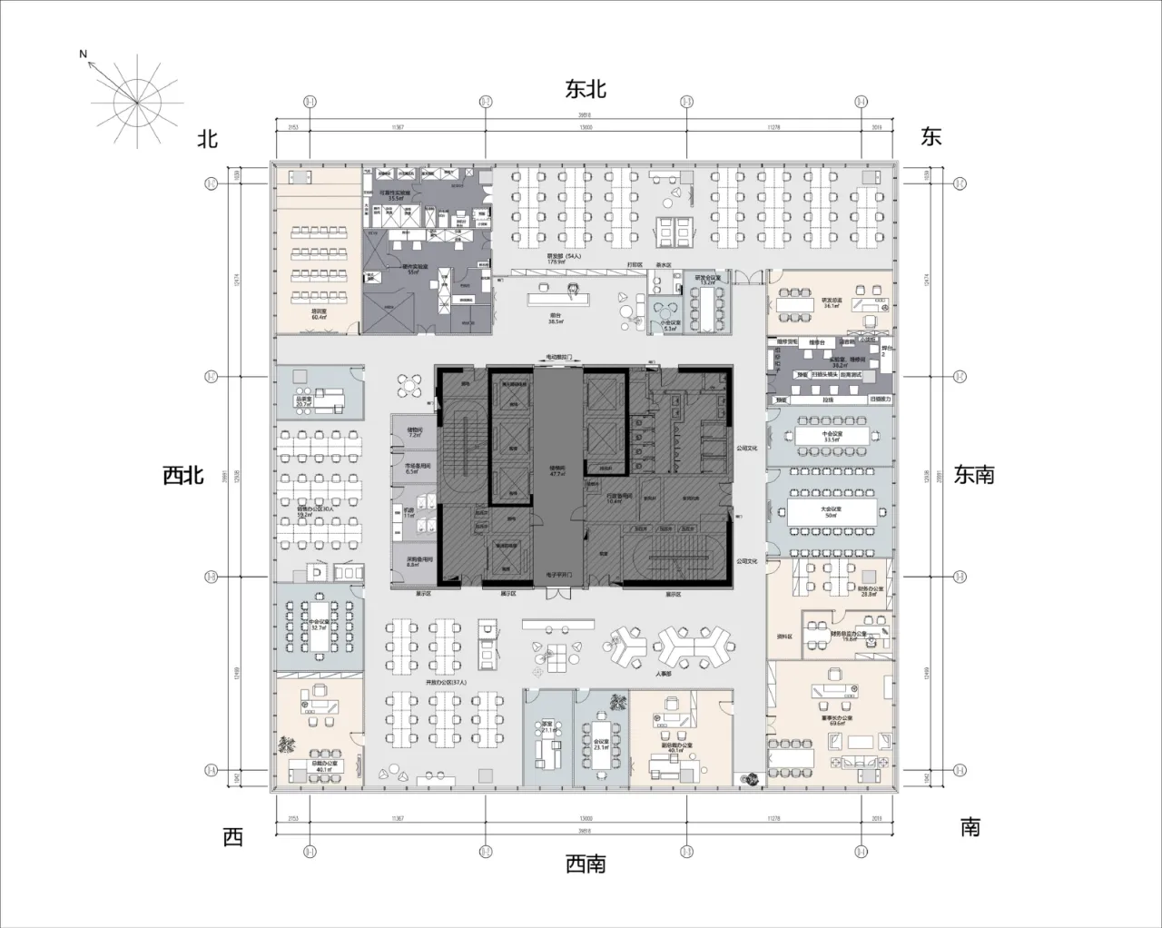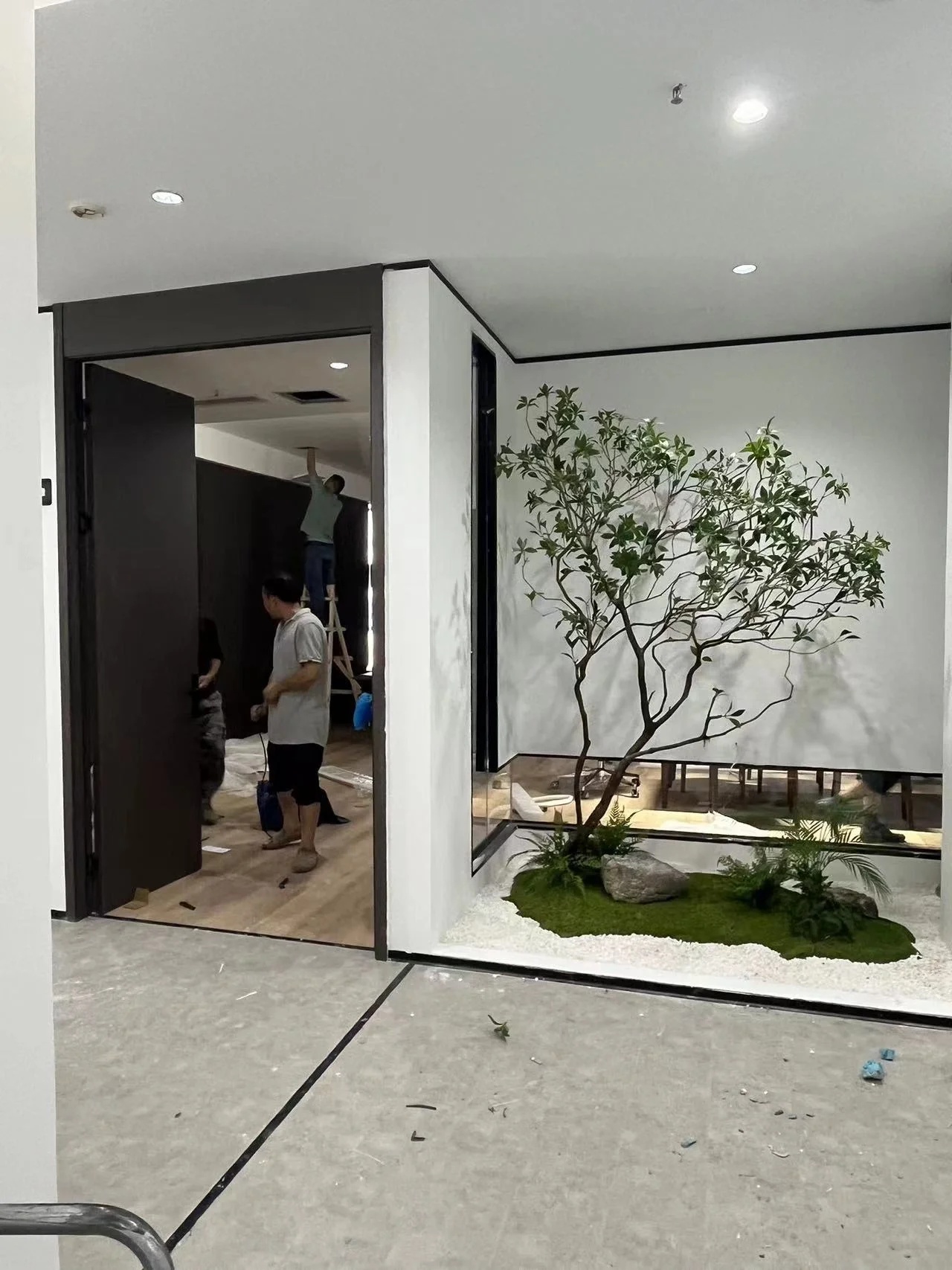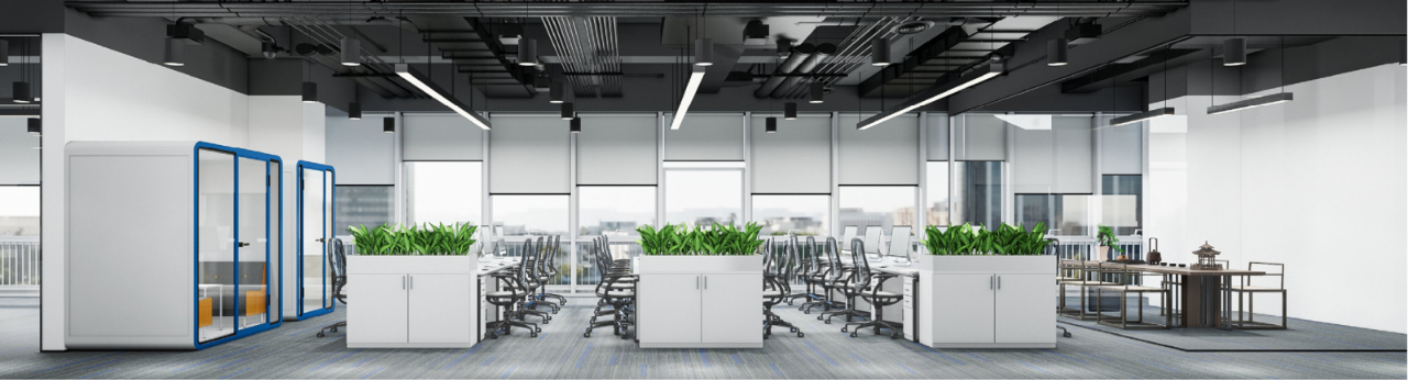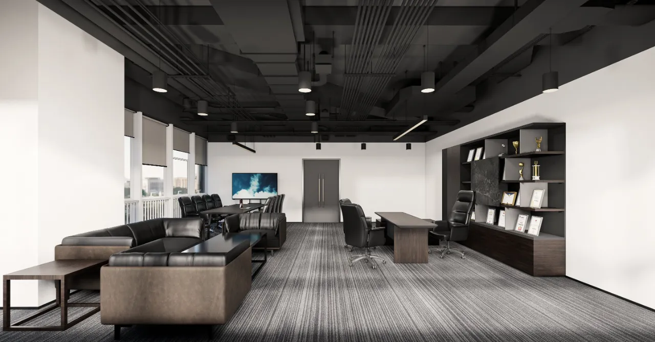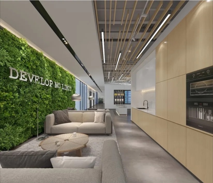 开放式的设计办公区,超常规的办公桌尺寸,以及桌面上方独立的照明控制等,在满足设计师日常工作需求的同时,兼顾了团队日常沟通讨论和办公舒适度的平衡,并且通过各个空间之间的互相联动,建立了一个平等、融合的工作氛围。办公室的次入口,与主入口一样都面向街区的公共走廊,是空间中另一处“现”的区域,我们在这个半户外空间设置了一个户外休闲区,既为社区住户提供日常休闲座位也适用于公司更多不同的办公情境。