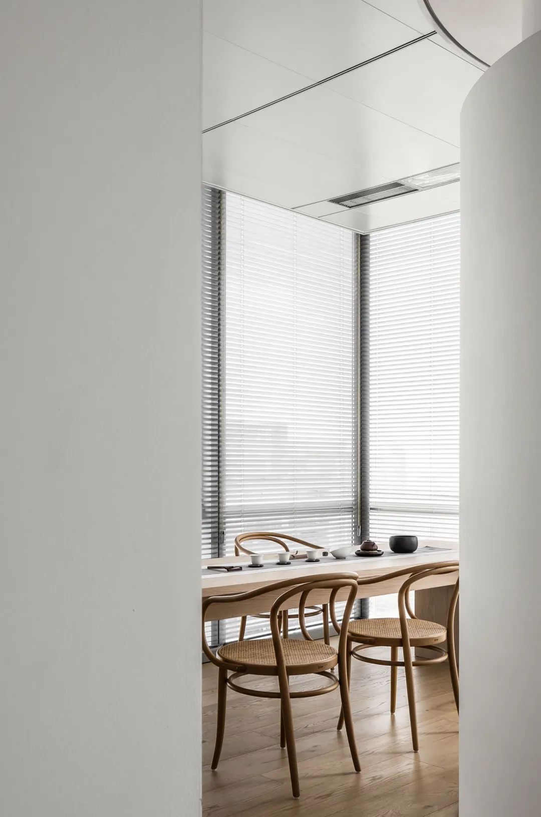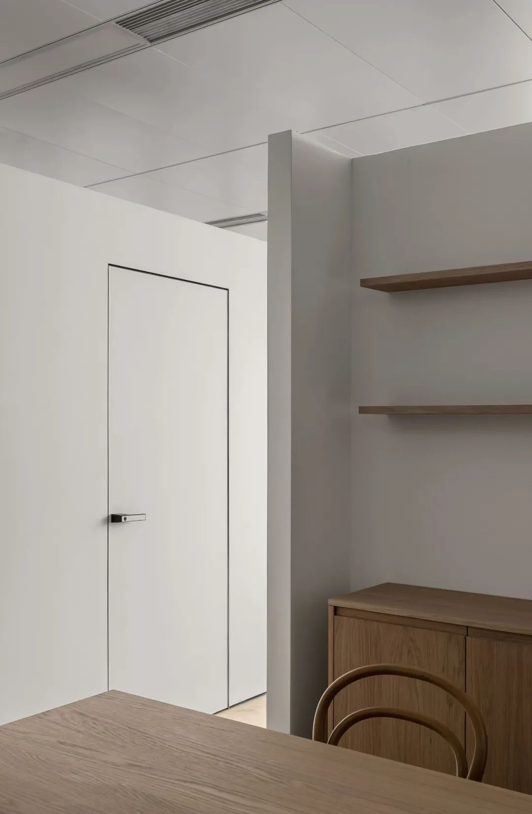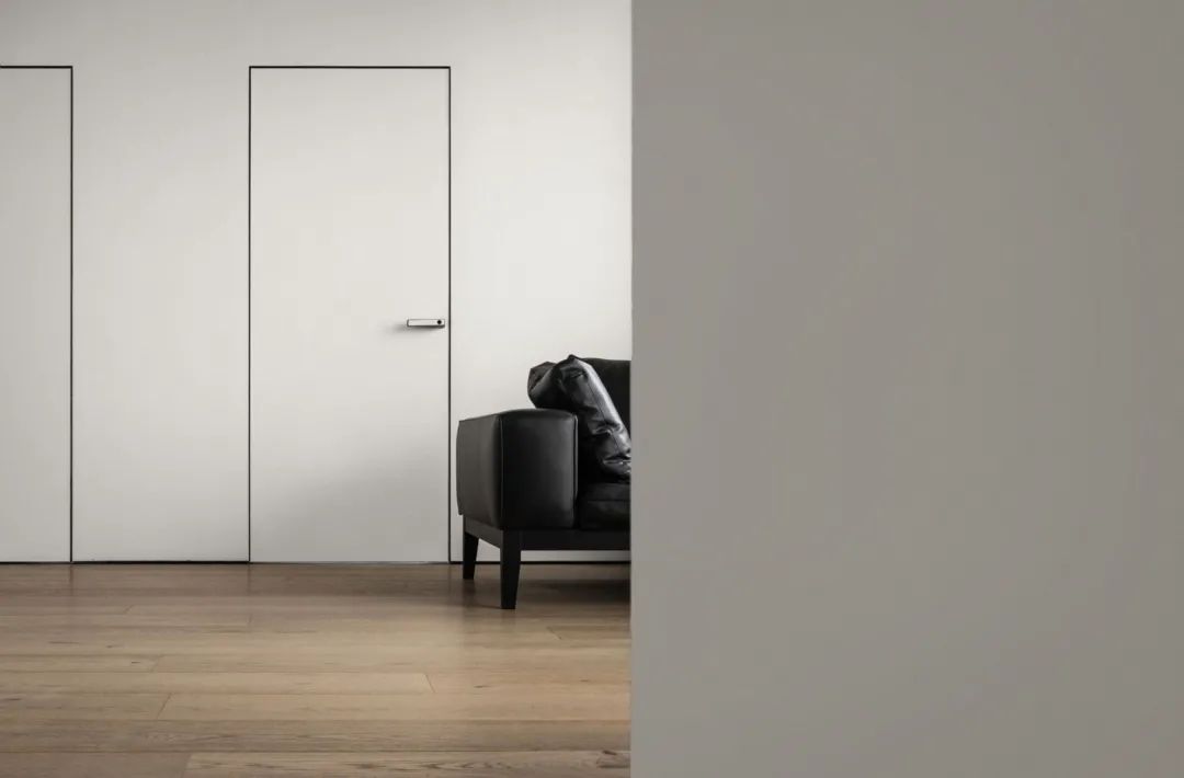 窄体隐框门,摒弃了传统门型的粗壮线条,减少了视觉上的阻碍,与墙体风格和谐统一,使整个空间连为一体。