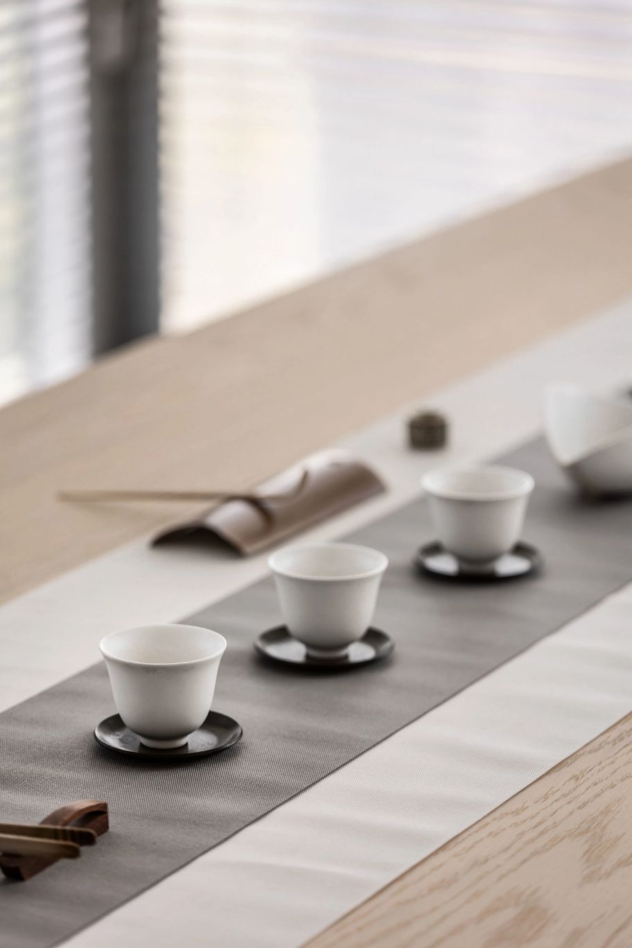 半封闭的隔断墙让空间拥有更好流动性,原木矮柜简单的搭配设计师收藏的茶杯,整个空间简单中显见一种令人神清气爽的特质。