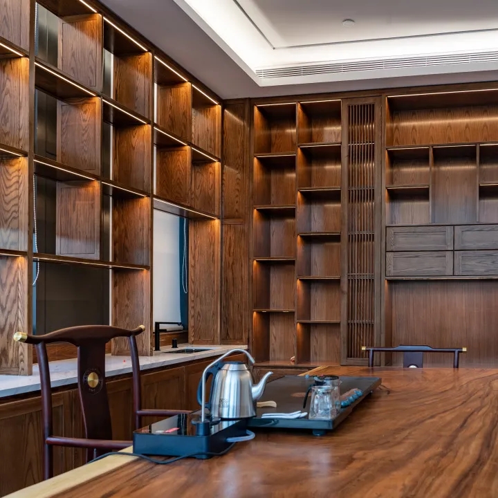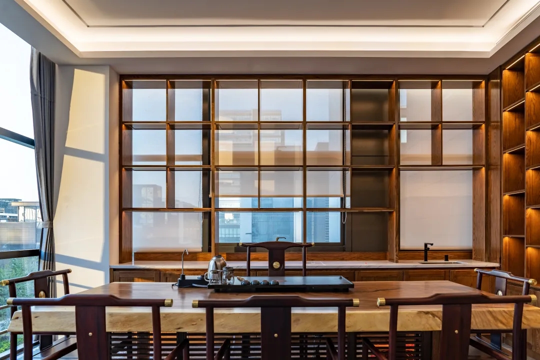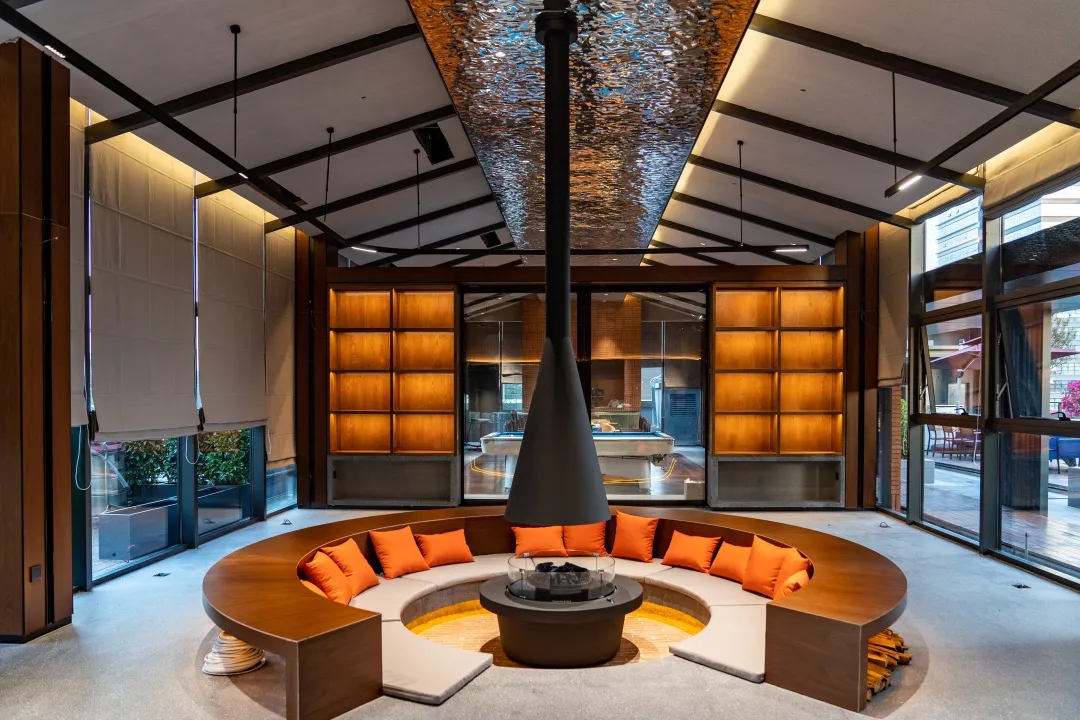 弧形的壁炉空间虚化掉了直线带来的紧张感,增添了空间的趣味性,有一些柔美洒脱,谦逊却不羁的感觉。张弛有度的空间,互有呼应该的艺术摆件,既能点亮空间,让人从专注工作中带来愉悦感。