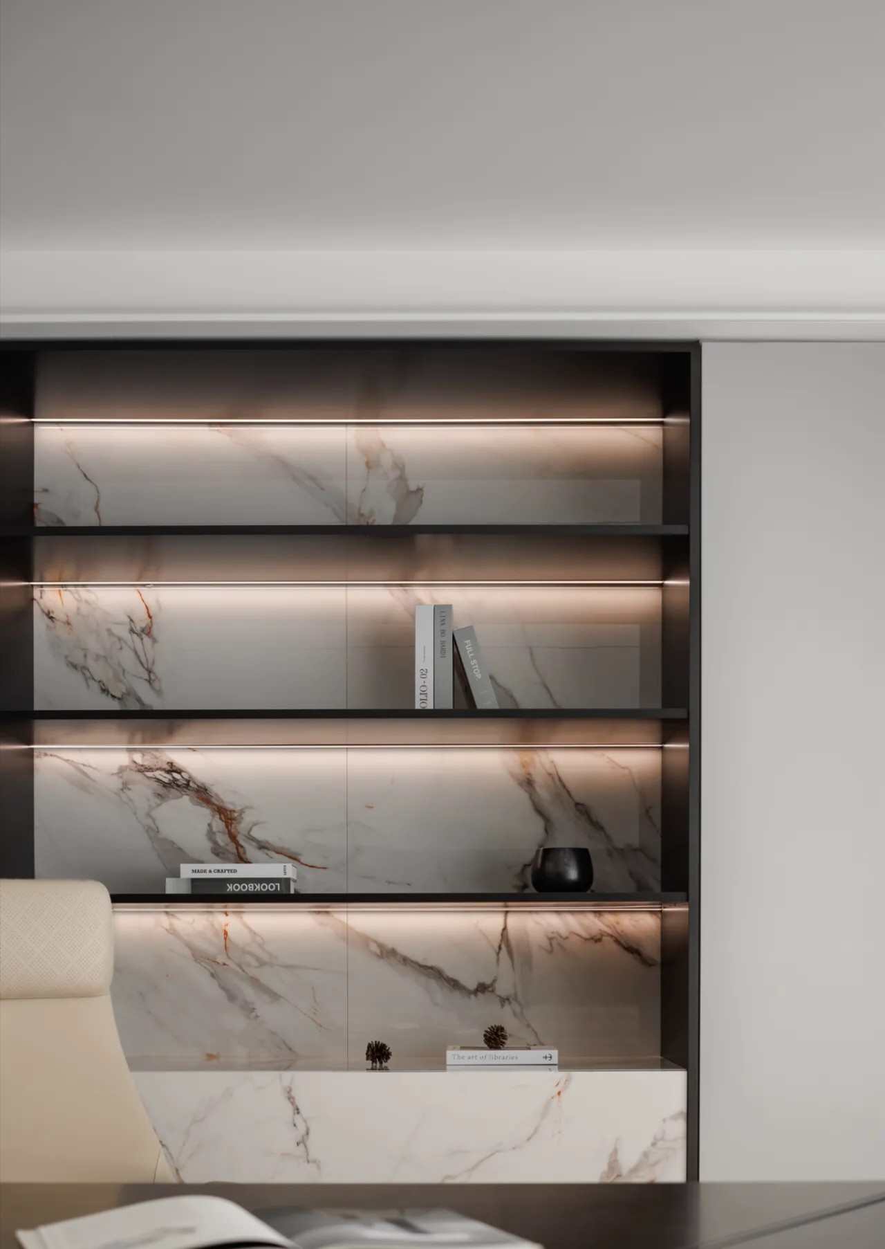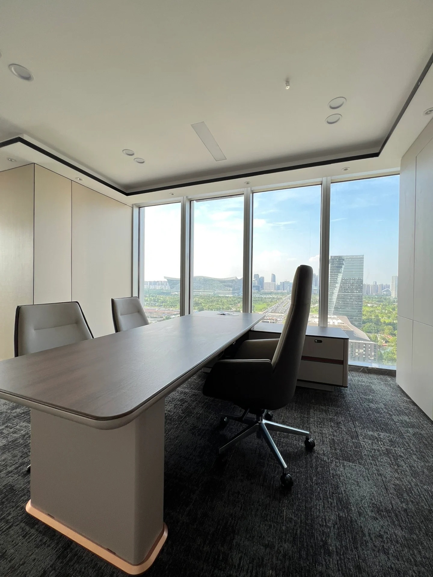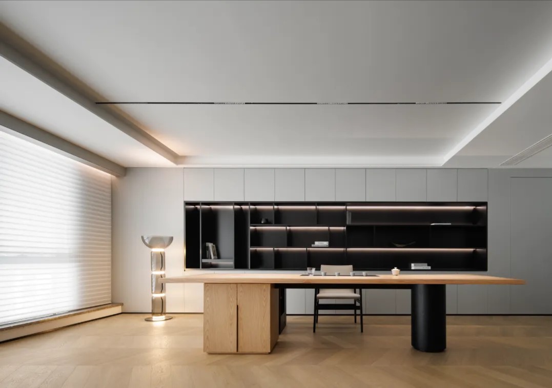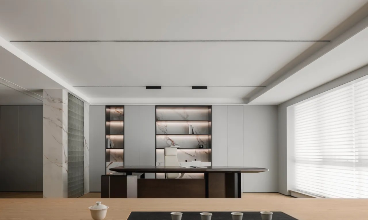 总经理办公室提炼外部空间的用色与选材作为关联,向内延伸并演绎出更为纯粹的审美主张与个人色彩。
