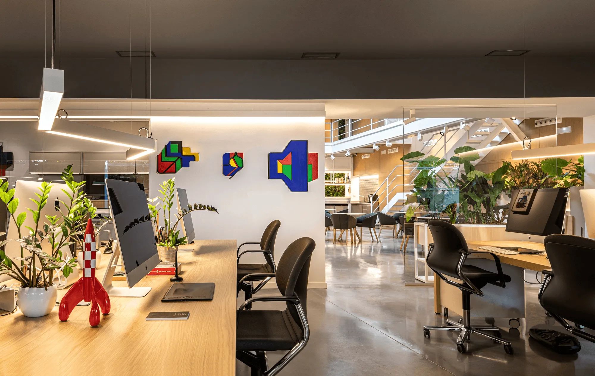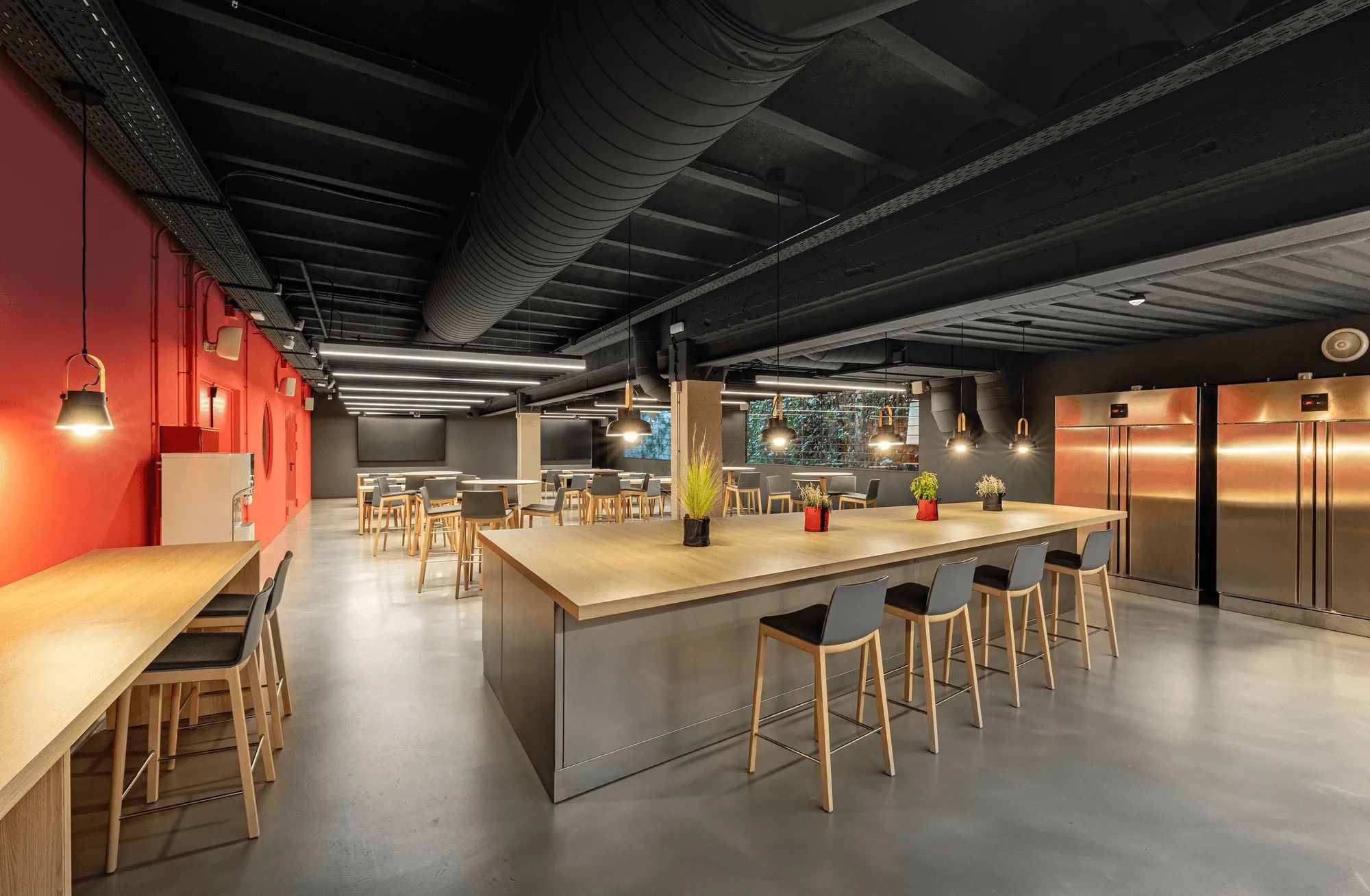 巧妙地集成的头顶灯充满整个空间,提供了一个以内部为中心的环境,创造了一个风景的中心位置,加强了对团队来说非常重要的家庭感觉!