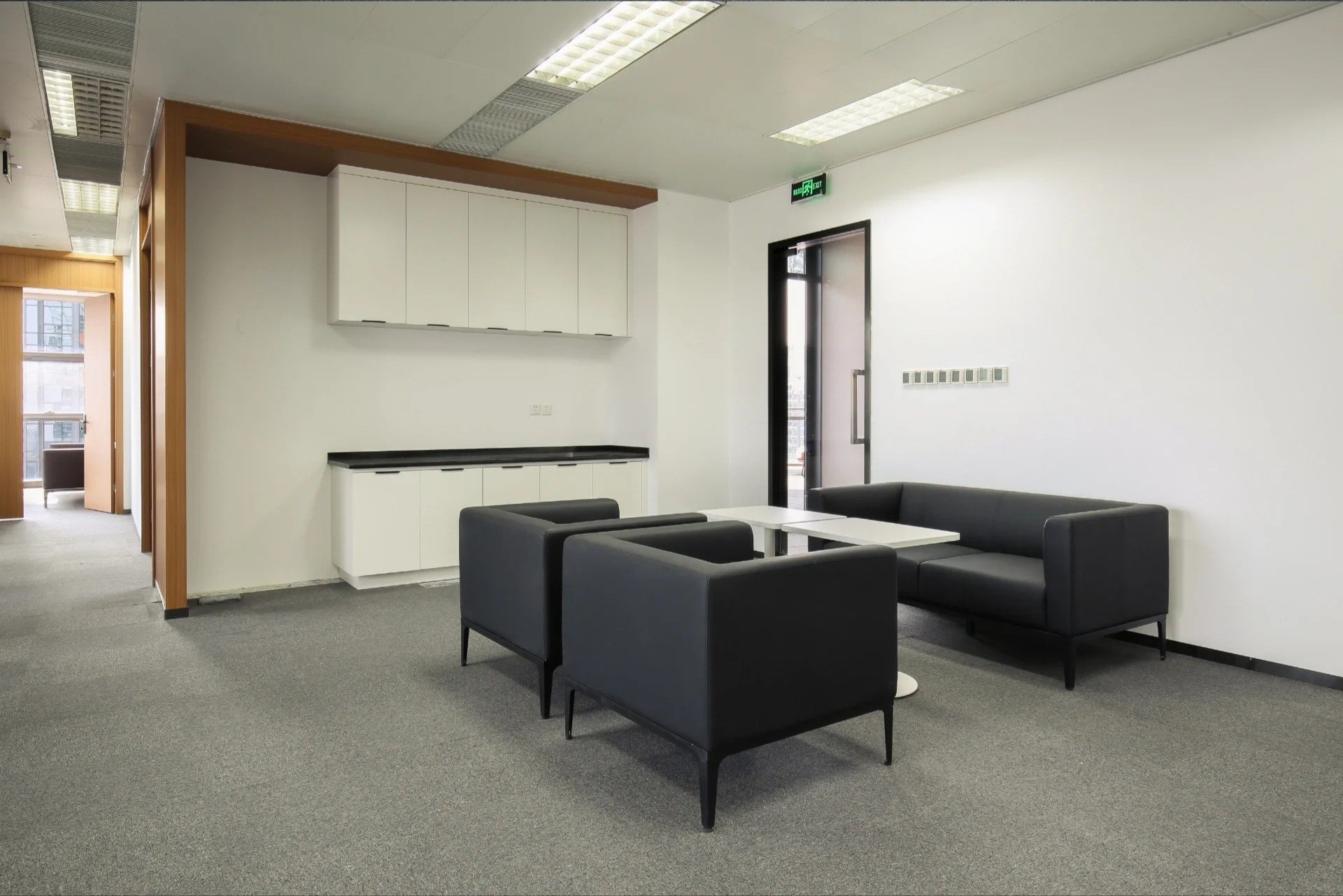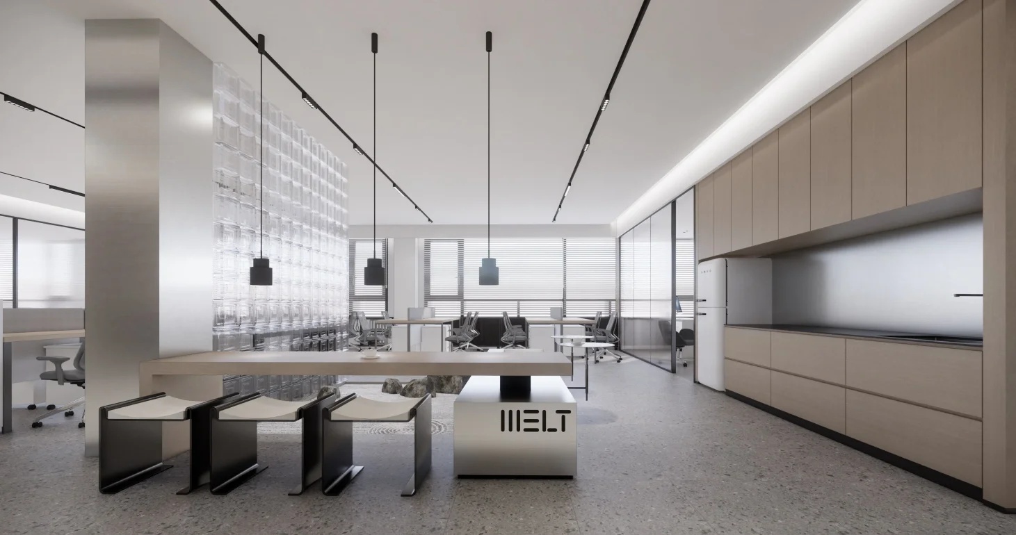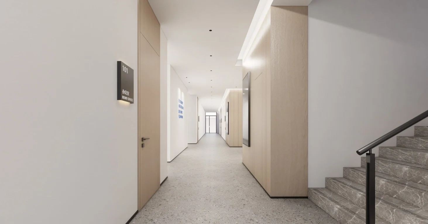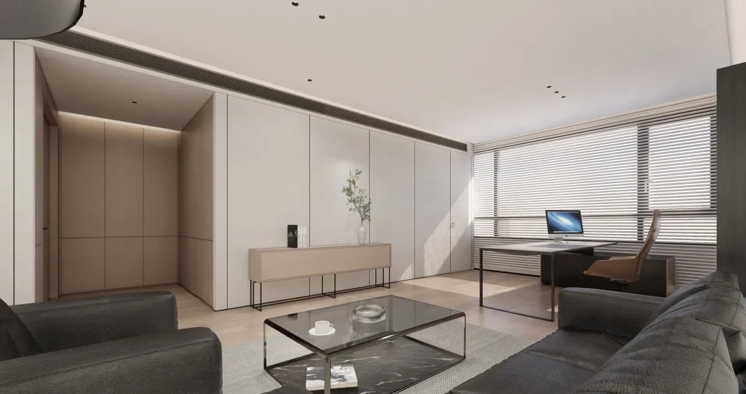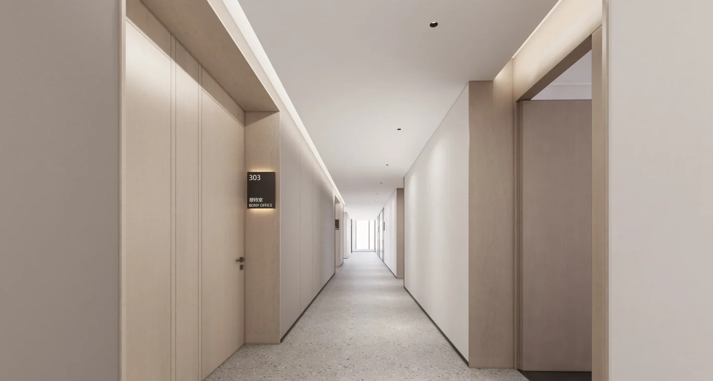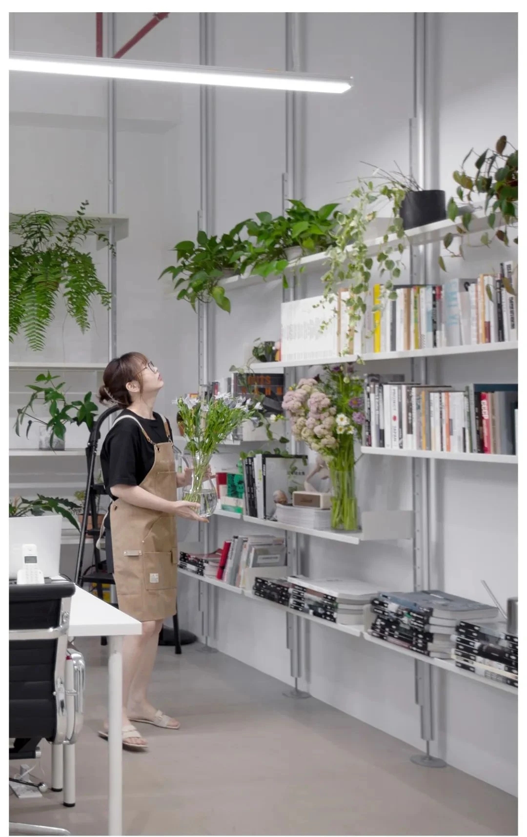 对于套内面积仅50平米左右的单间办公室来说,这个空间反而变得狭窄且动线不顺畅。同时,访客不管是通过货梯通道或者走廊来我们工作室会首先看到转角处那面墙而不是走廊侧边的墙。于是我们将入口的方向调整,让工作室的入口形象更好的被展示。进入时,动线更顺畅,视线也更开敞。