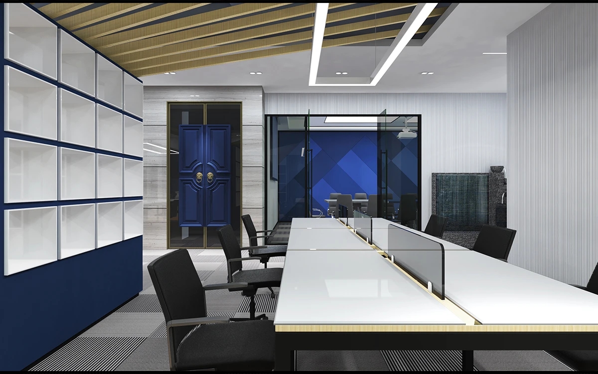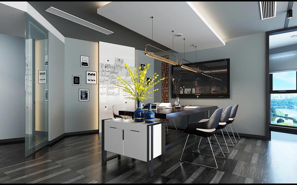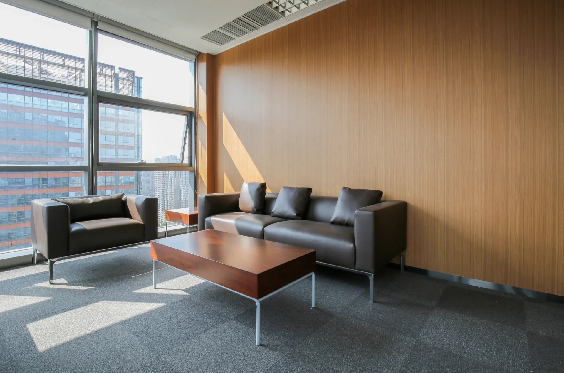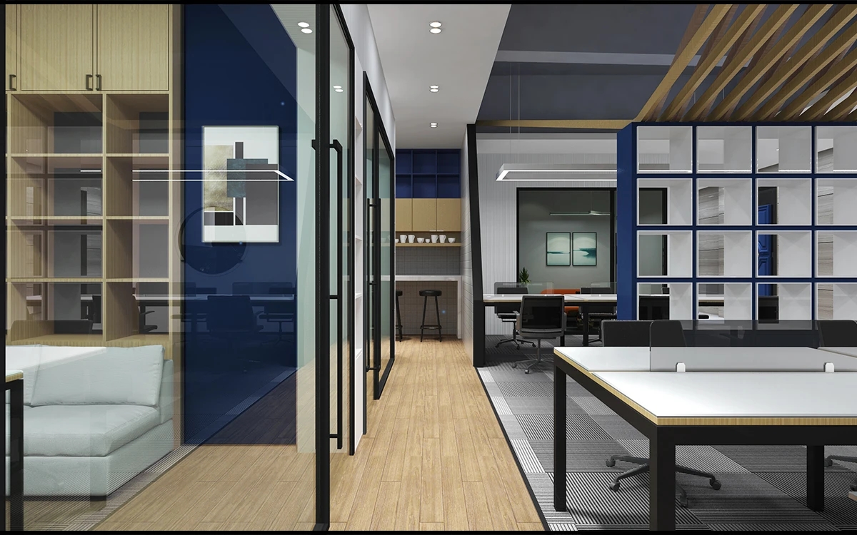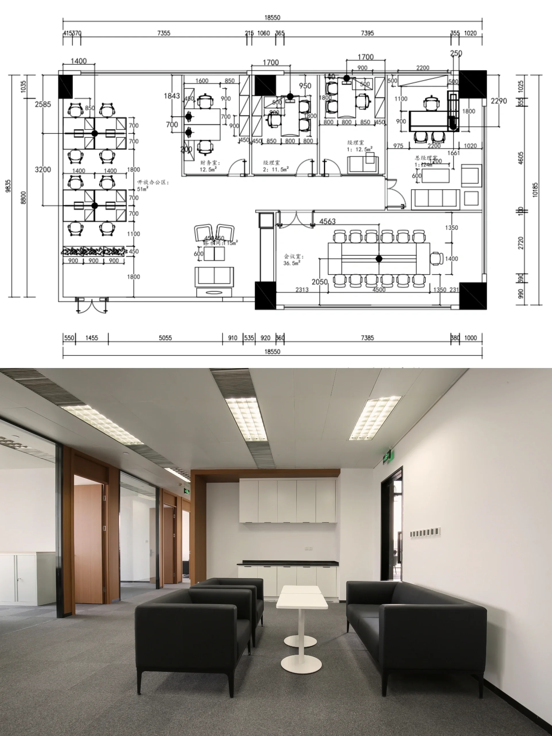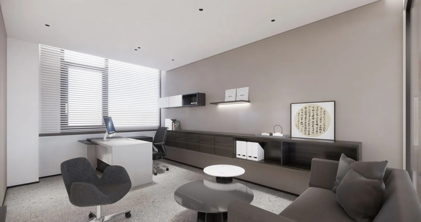 对于套内面积仅50平米左右的单间办公室来说,这个空间反而变得狭窄且动线不顺畅。同时,访客不管是通过货梯通道或者走廊来我们工作室会首先看到转角处那面墙而不是走廊侧边的墙。于是我们将入口的方向调整,让工作室的入口形象更好的被展示。进入时,动线更顺畅,视线也更开敞。