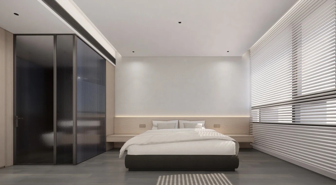 在整个设计和装修过程中,我们一直都在讨论痕迹,痕迹是一件很浪漫的事情。空间是会承载时间的痕迹,将原天花拆掉后,厂房原顶被裸露出来,我们没有重新喷白,也没有将漆刮掉刻意做旧,希望保留一些这个空间的原样,同时利用梁的标高做一个分界,过去的痕迹vs. 新的、未来我们生活的轨迹。