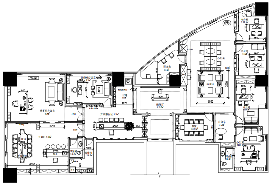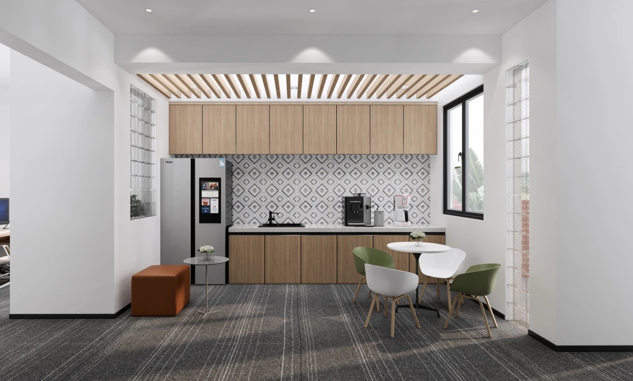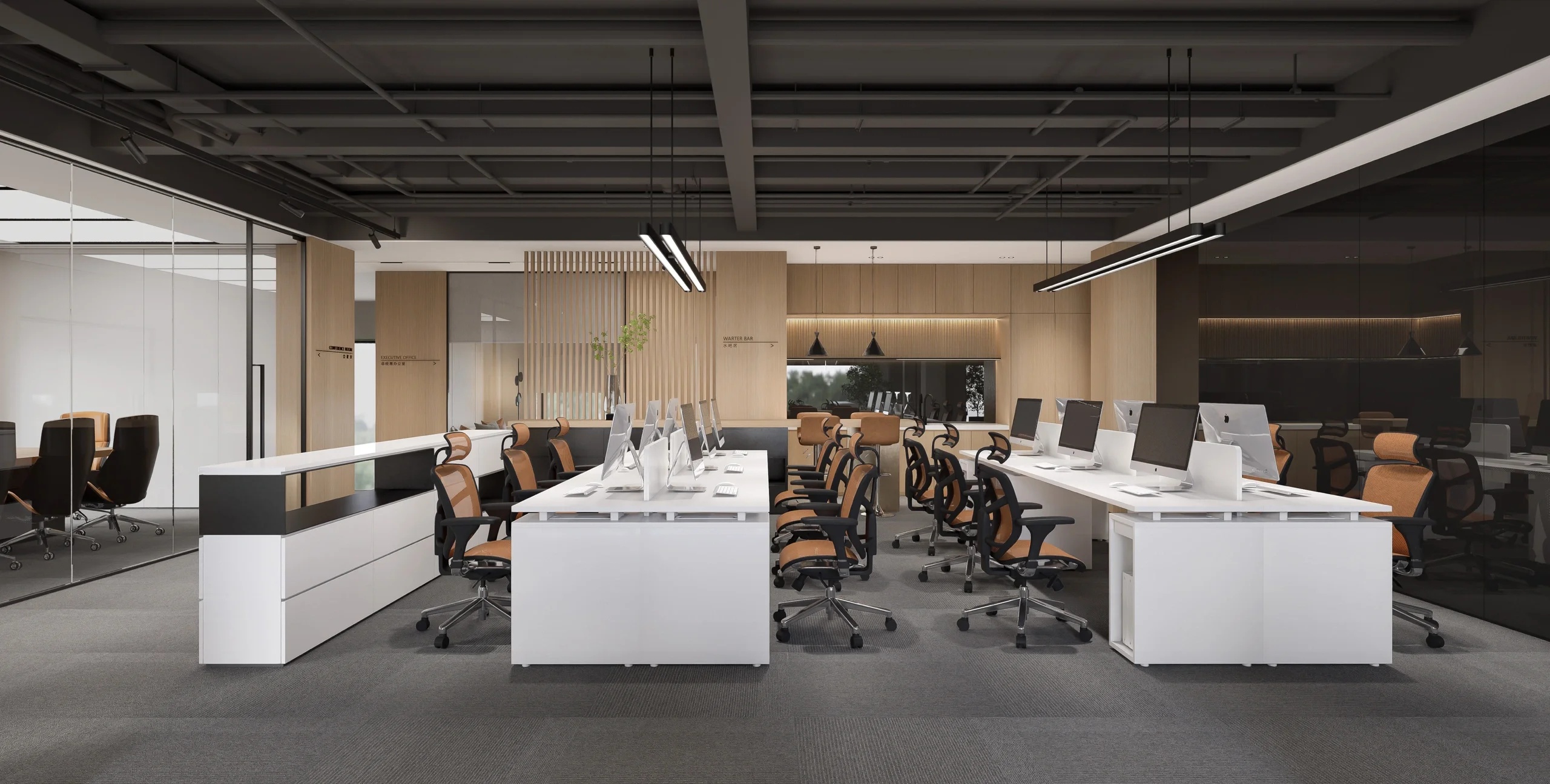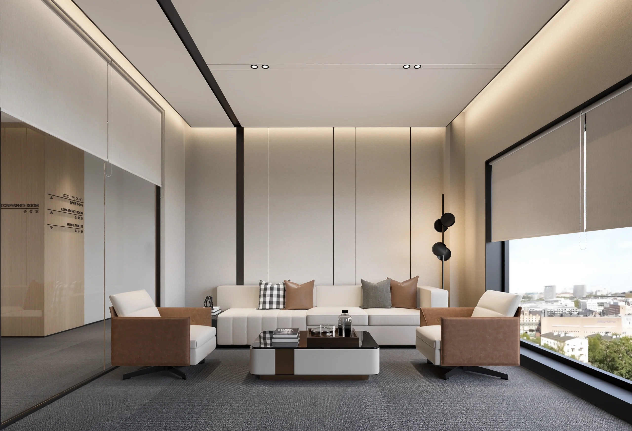 结合现代创新和经典元素运用,加大胆设计灵感,采用英国银行上世纪30年代风格提取经典元素,墨绿色台灯演变与现代空间结合,重新创造出“新”精英办公空间。