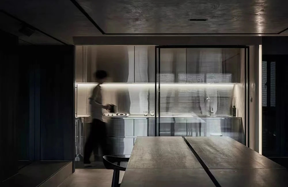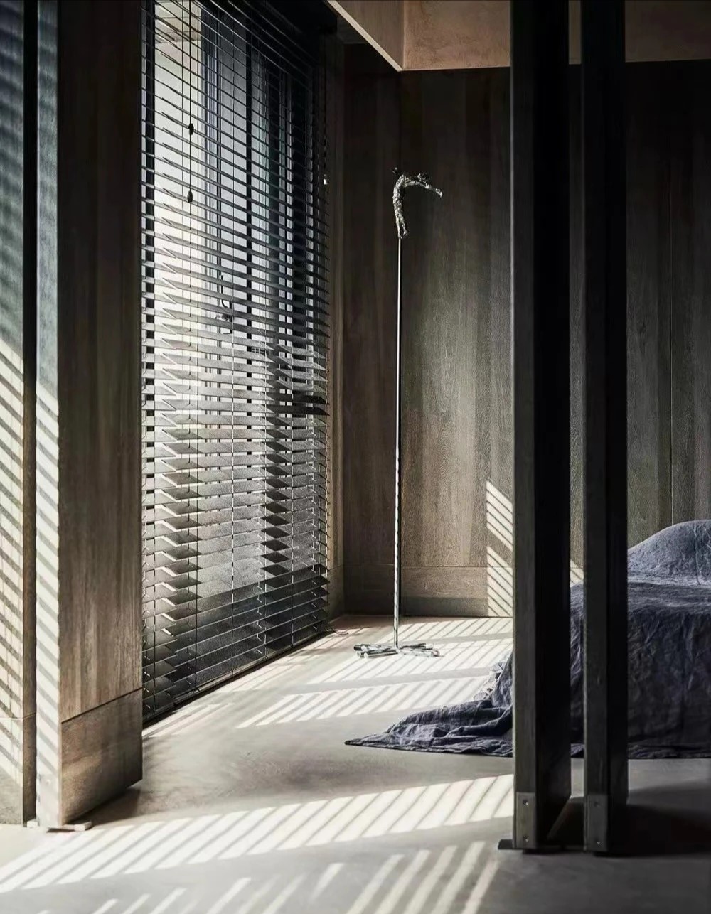 这种精神互动的背后拆分开来,却是设计师理性与感性思维的互动,空间的本质、材质的本质都会以某种方式深印在人的思维深处,而设计者则要去感受某种记忆中的意境;通过空间里面材质、光影、家具陈设、时间还原出来。