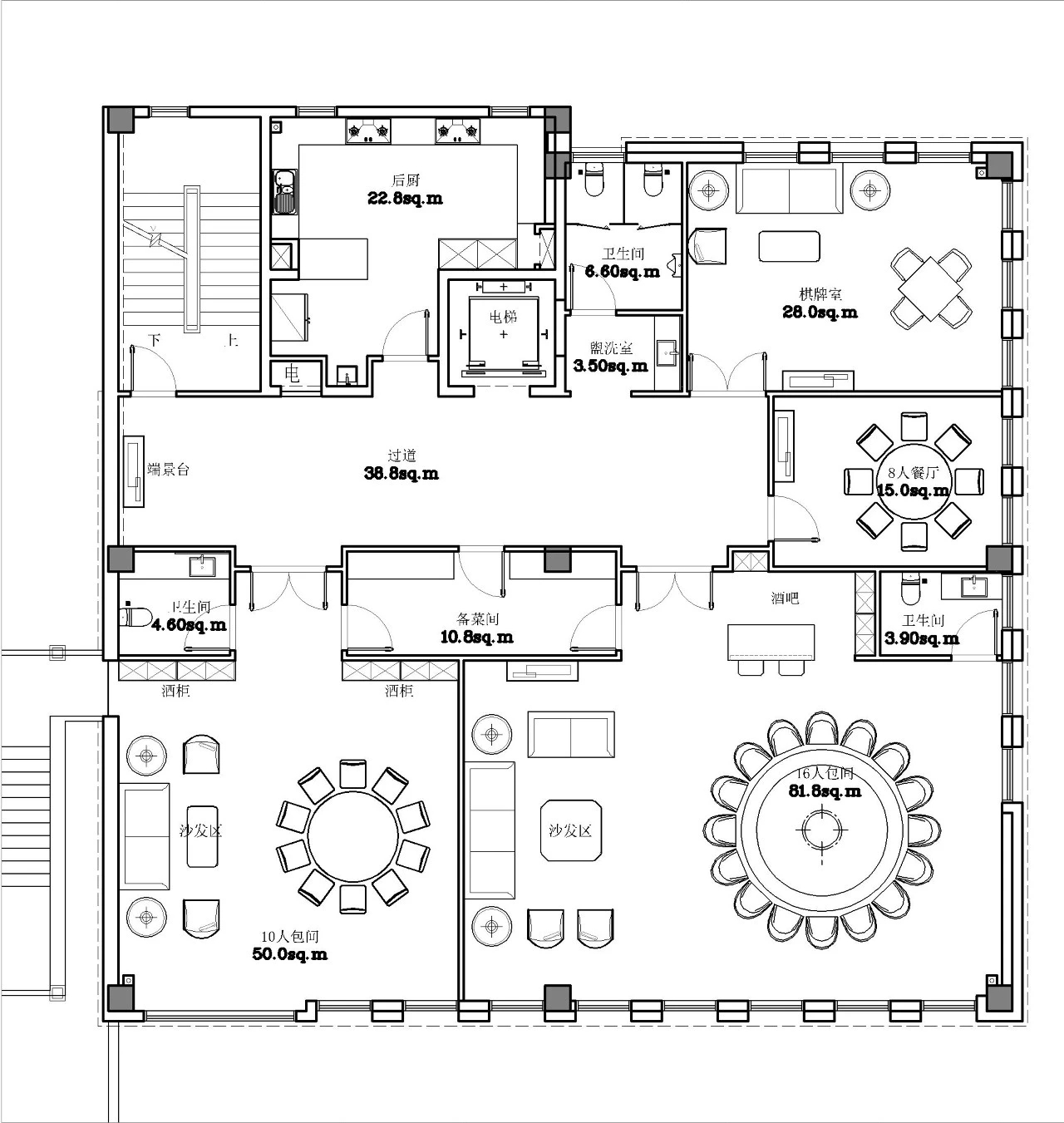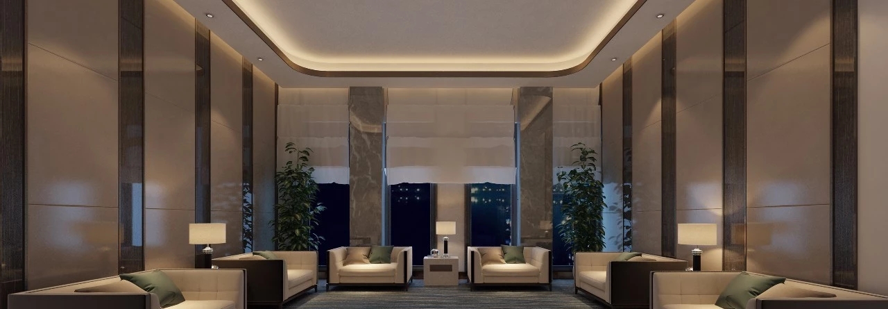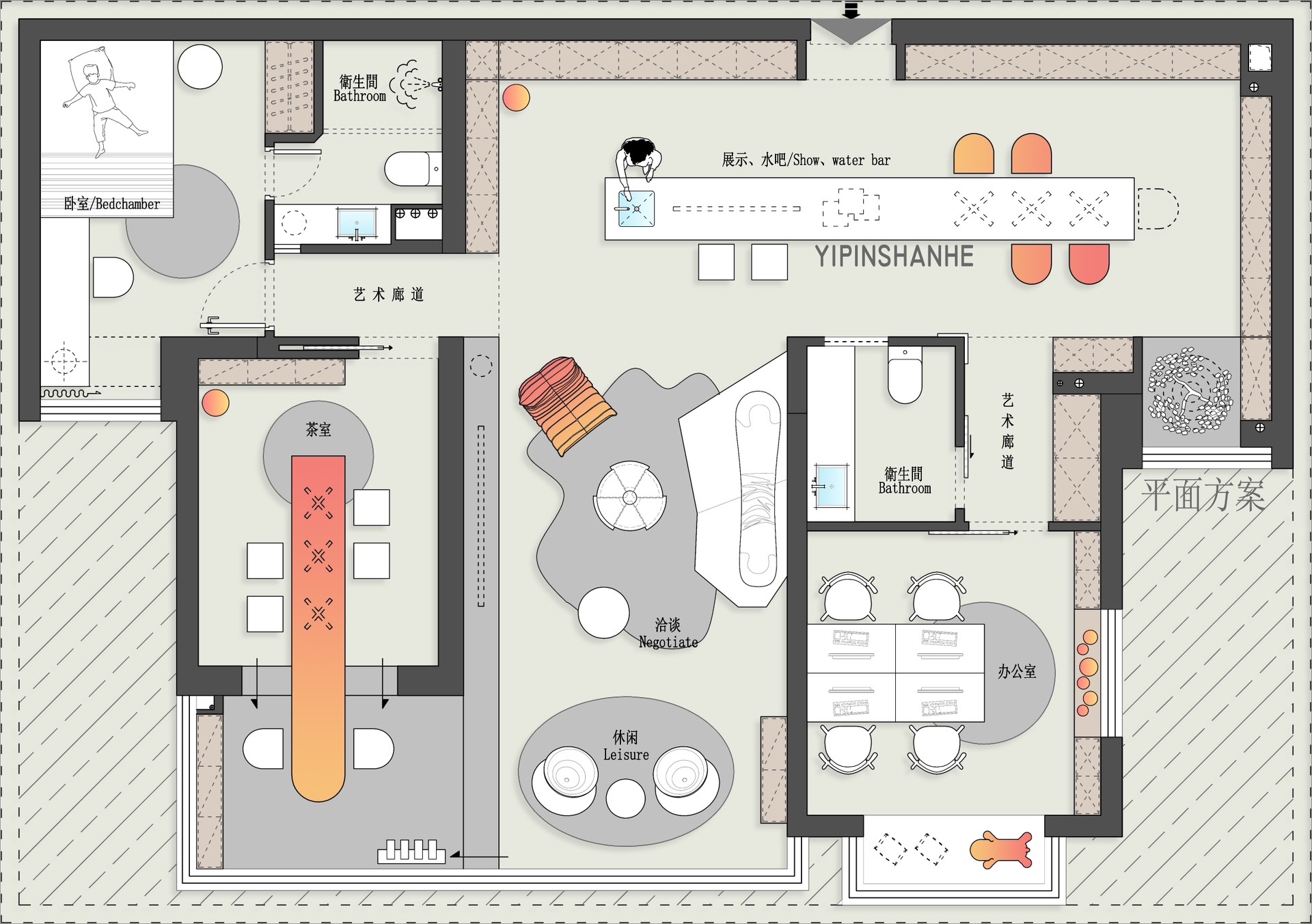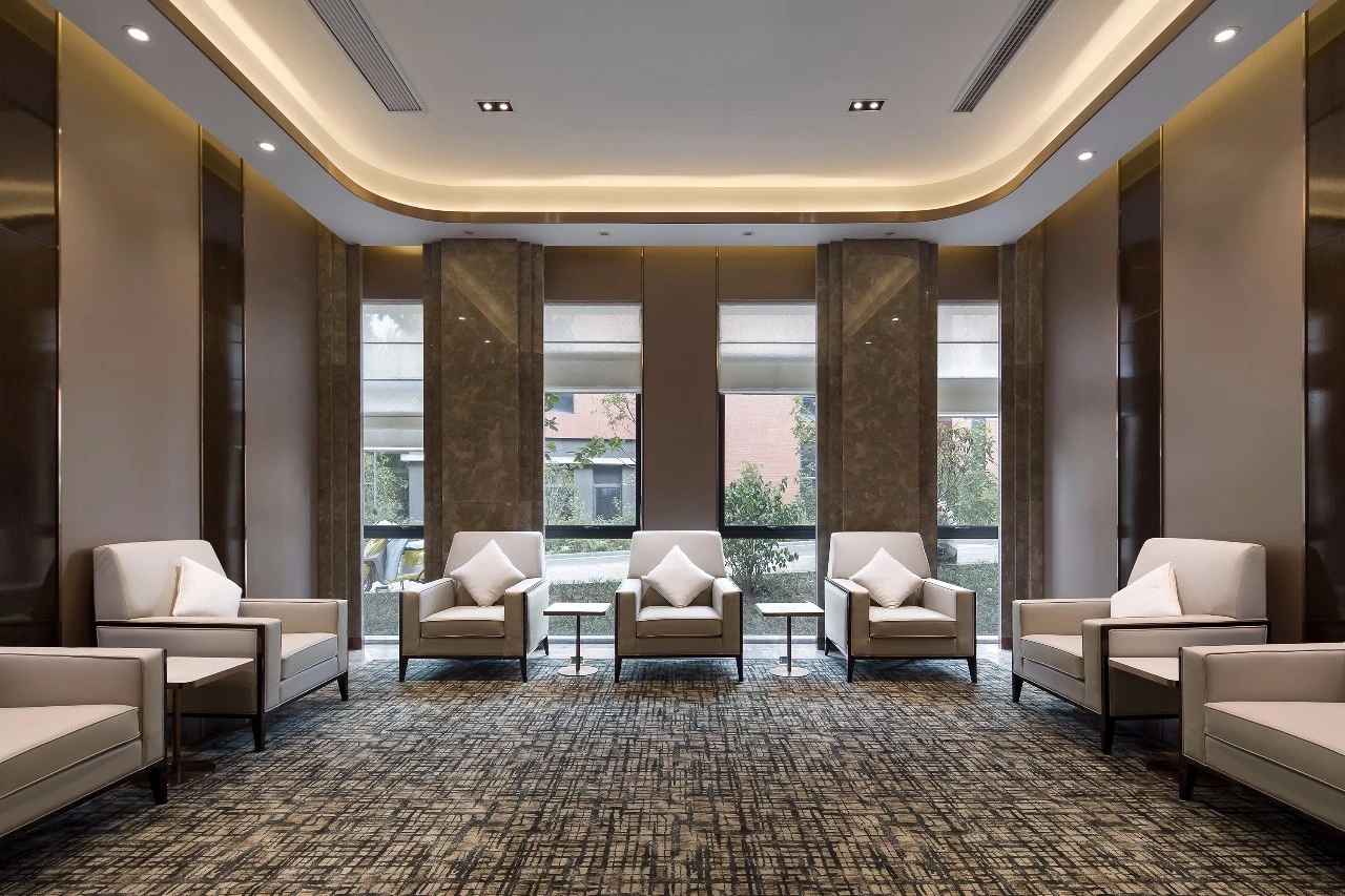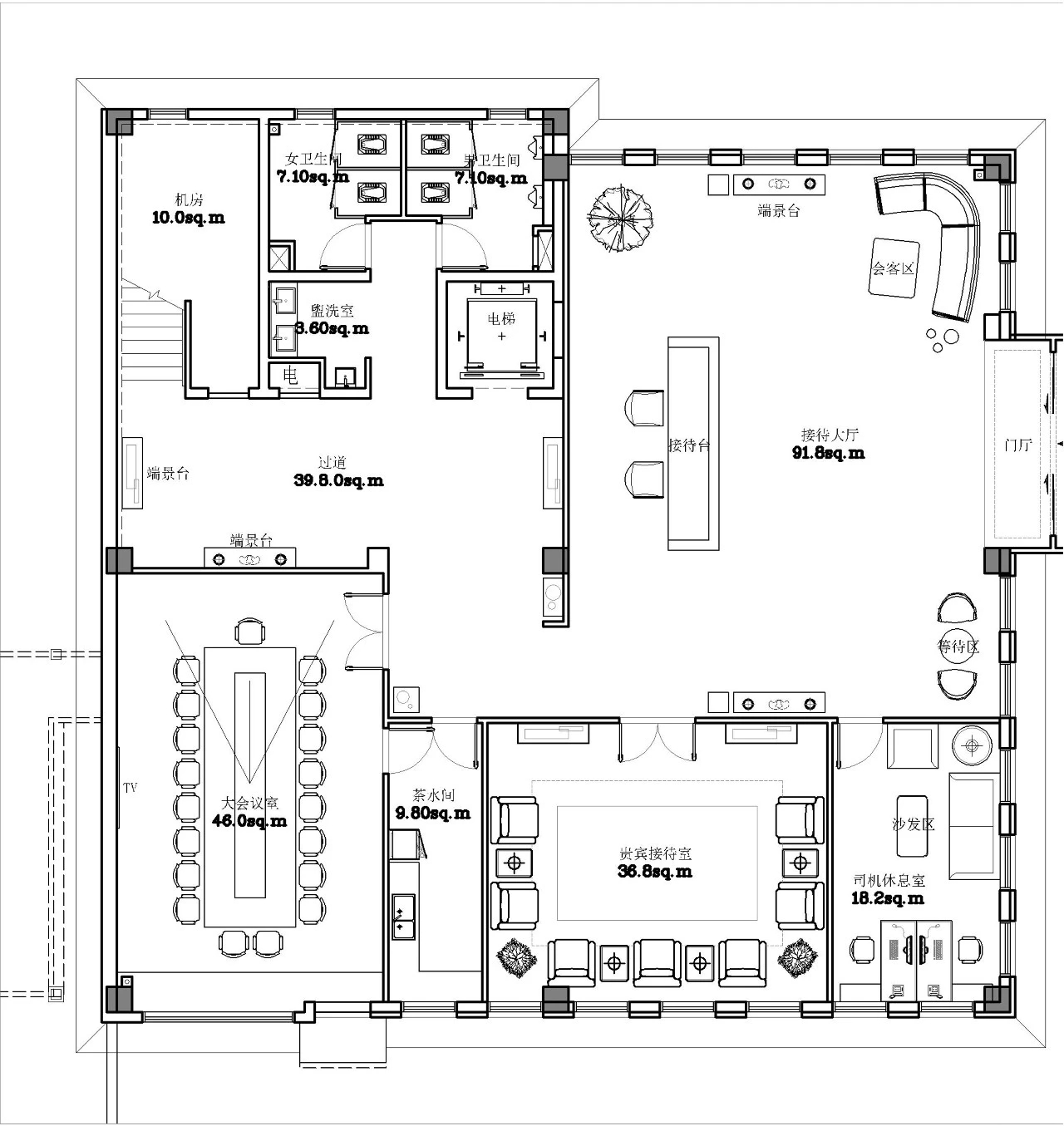 设计师运用建筑内层高较高的优势将首层空间构思成接待大厅、贵宾接待室、会议室及司机休息室等空间。