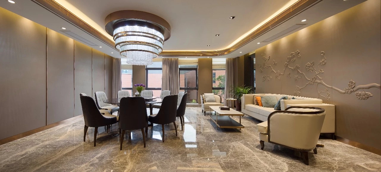 纹理自然的大理石元素,加以带有高级感的驼色影木点缀,演绎出一种“低调的奢华”,令空间质感更为饱满。