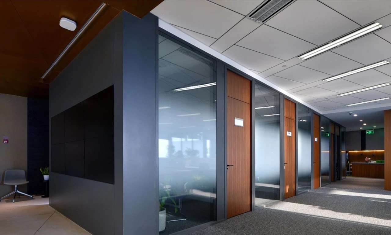 进门处墙面极简的不锈钢LOGO字,也是我们对于空间的一种态度,抛弃传统意义上的灯箱广告,它就是我们所要表达的简约之形态。