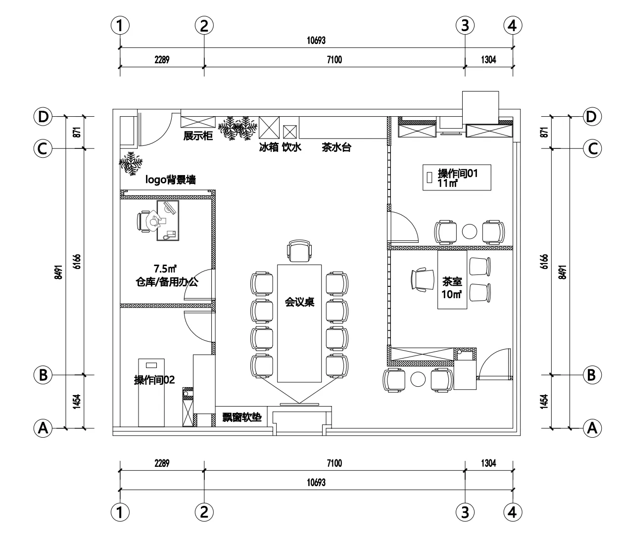 窗明几净的透明落地窗,让办公空间的采光效果非常良好,让整个空间显得宽敞而舒适。转角处、邻窗空间的合理利用,让空间上显得较有层次,空间里黑色门窗的运用,使之看起来干净利落。