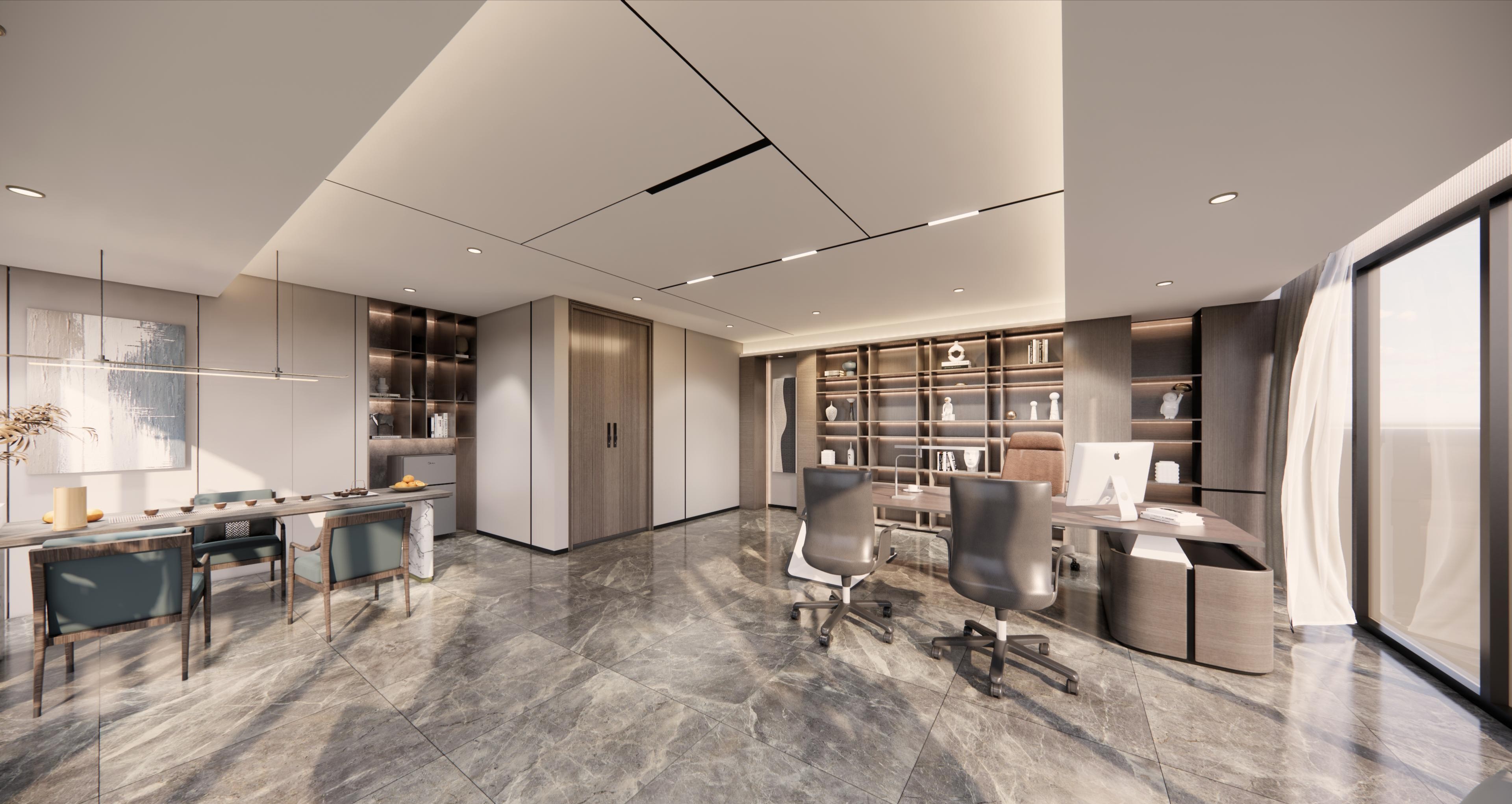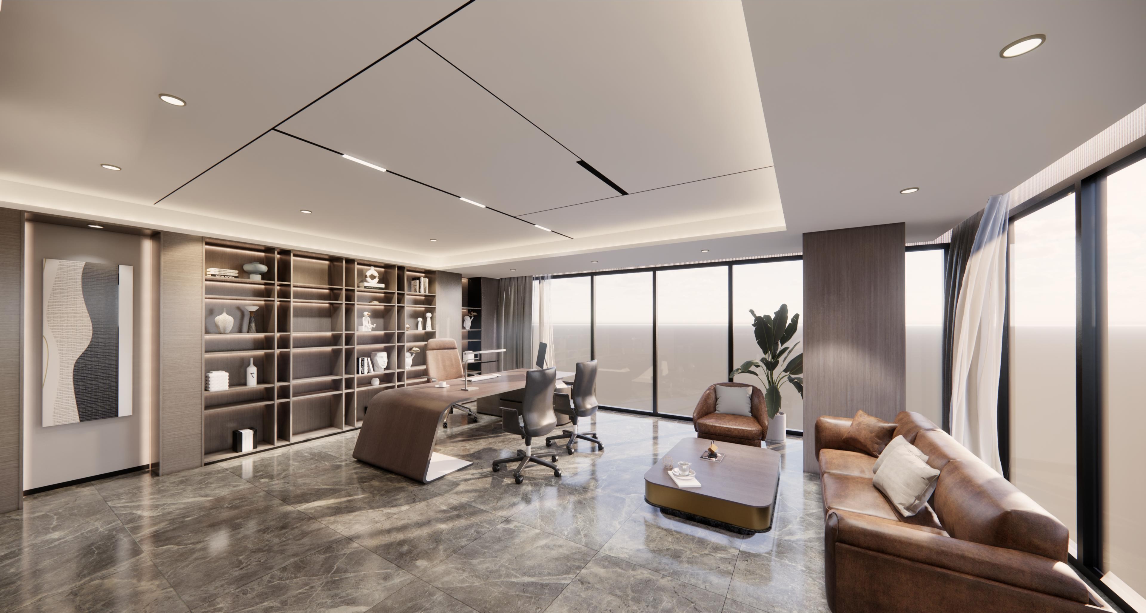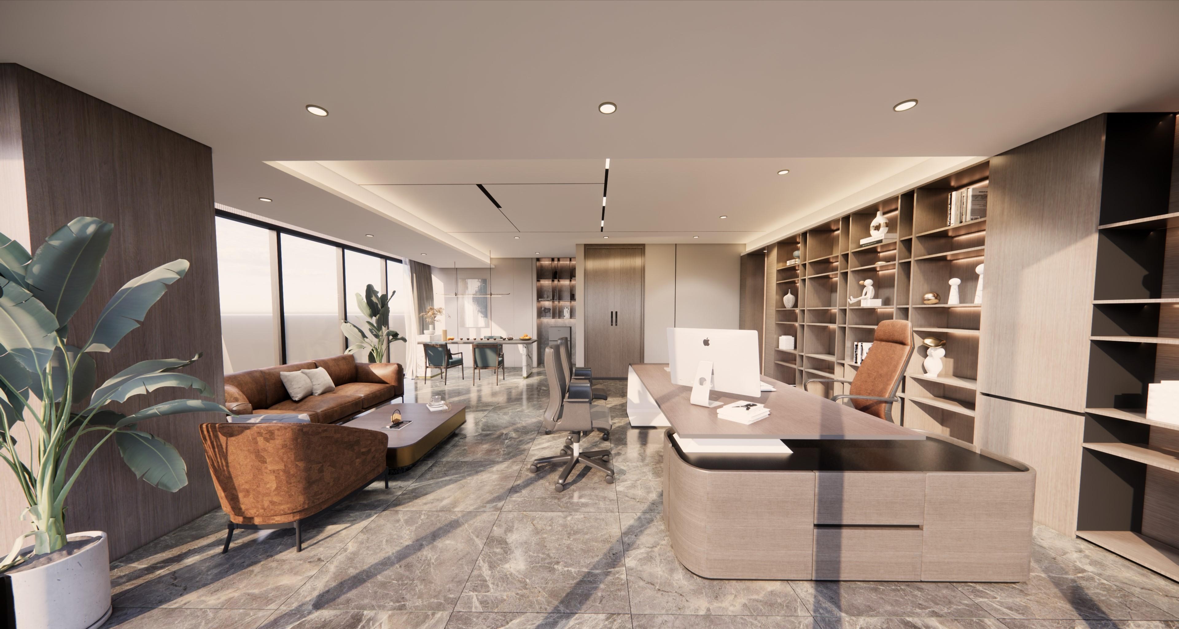 会议室沿用其深胡桃木色搭配属性,搭配黑色会议皮椅。公司会议是传达公司经营理念,集思广益解决问题,头脑风暴寻求创意的核心场所,更是商务洽谈的重要舞台。