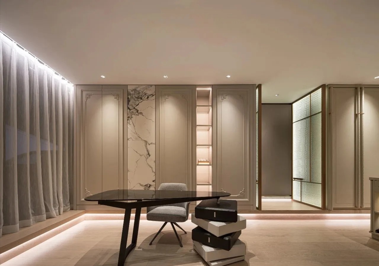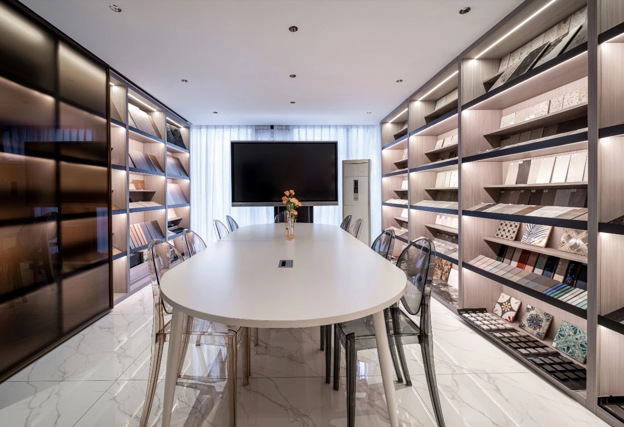 为每位顾客的完美落地定制工艺的细节与坚固的材料提高了生活品质也为客户省去时间与精力这里兼顾着多功能会议以及放置材料展示等功能每一次会议的灵感碰撞都源于此愿其成为理想的家庭/商业空间