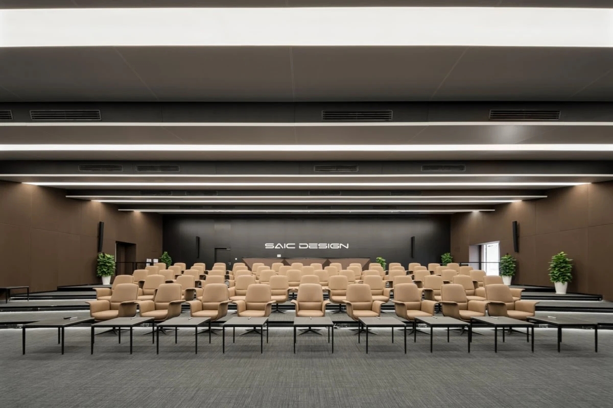 办公空间的设计以明确的组织特征为基础,展示了上汽集团的品牌形象。在整个空间享区、员工工作区和会议区等不同区域被巧妙地布局,以支持高效工作和自由开放的氛围。