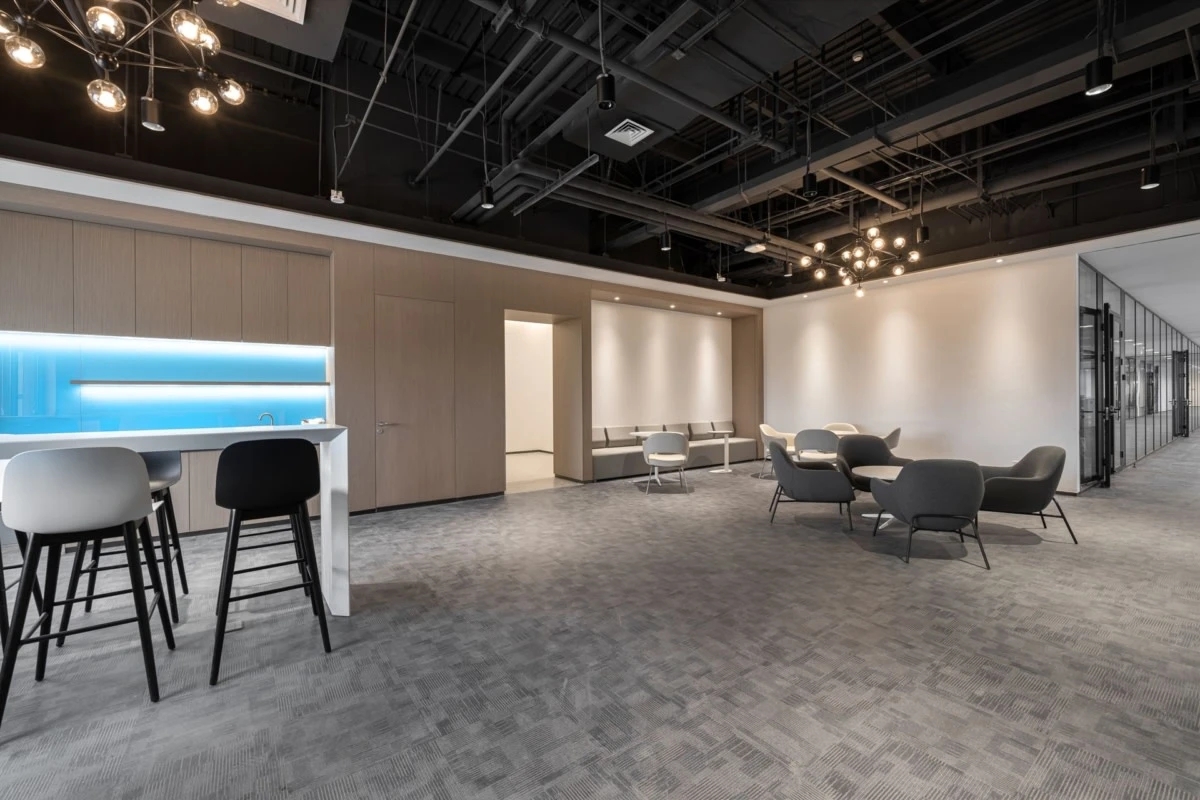 员工工作区是办公空间的核心,采用了开放式工作站的设计。每个工作站都配备了玻璃隔断和协作办公家具,既保护了个人隐私,又方便了团队之间的互动。员工们可以在这里专注于工作,并随时与同事进行交流和讨论。
