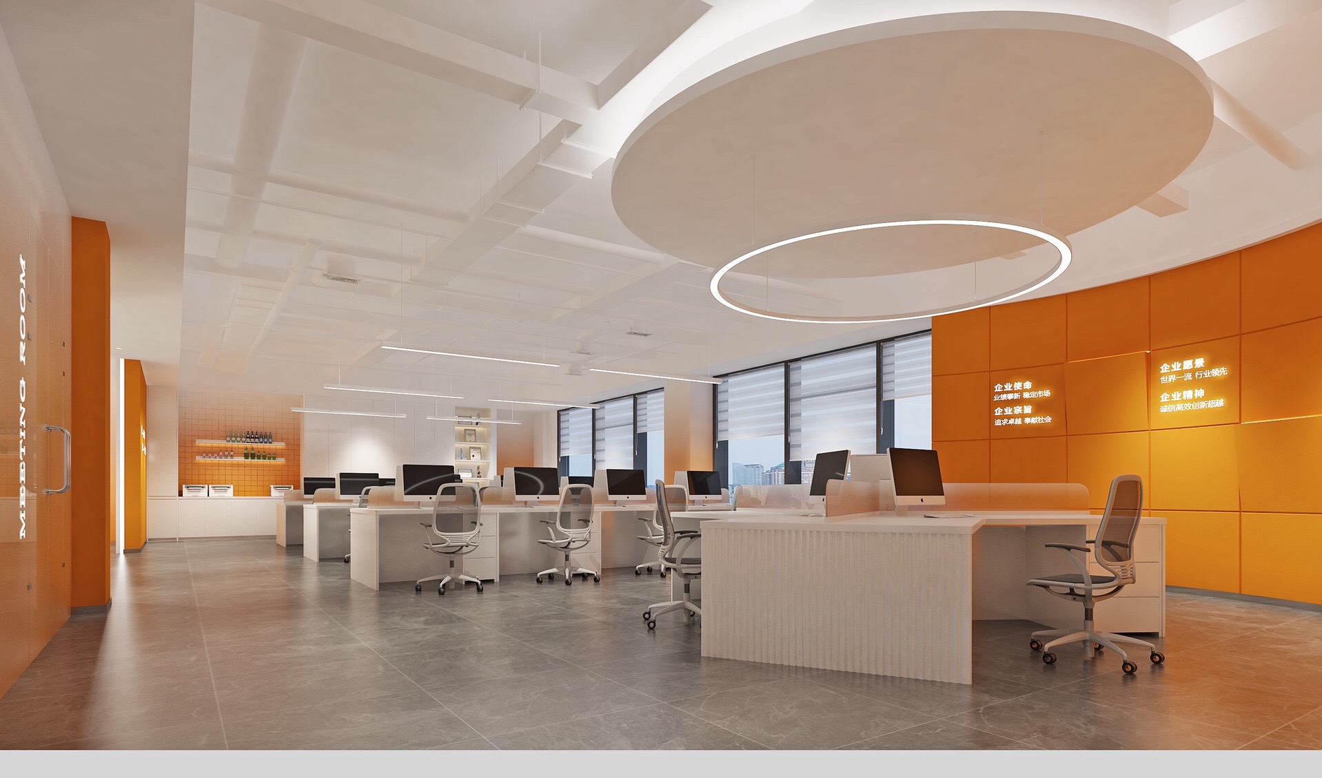 前厅是公司的门户形象,是进入公司最先看到的地方。一面的logo墙,时尚新颖,让人眼前一亮。空间与人发生关系的过程也是情绪传递的过程,设计试图用色彩营造情绪去与空间使用者发生关系,白色和深黄色的搭配和谐又大方,接待台是白色的大理石,营造出轻松活力、散而有序的空间体验。