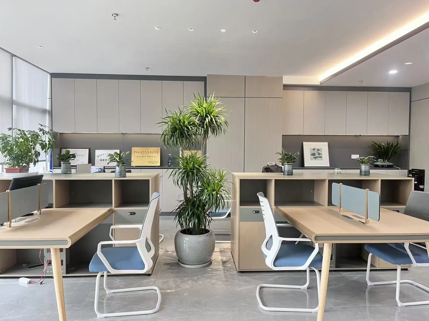 办公空间的许多细微之处都带有设计感——简约、明亮的现代感布局,辅之以祥云、印章、木质屏风等中式元素的使用,让整个办公空间看起来大气、优雅,又不失温暖。