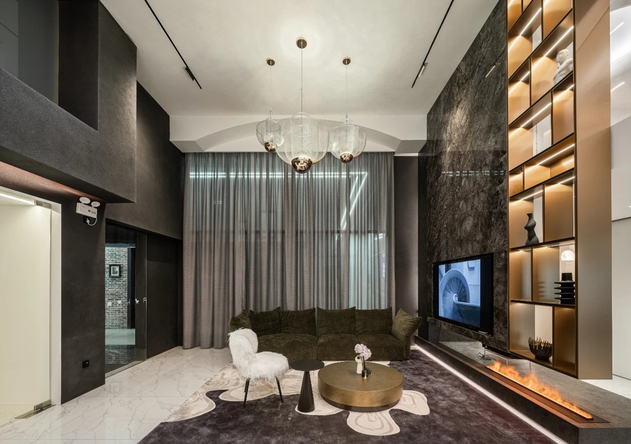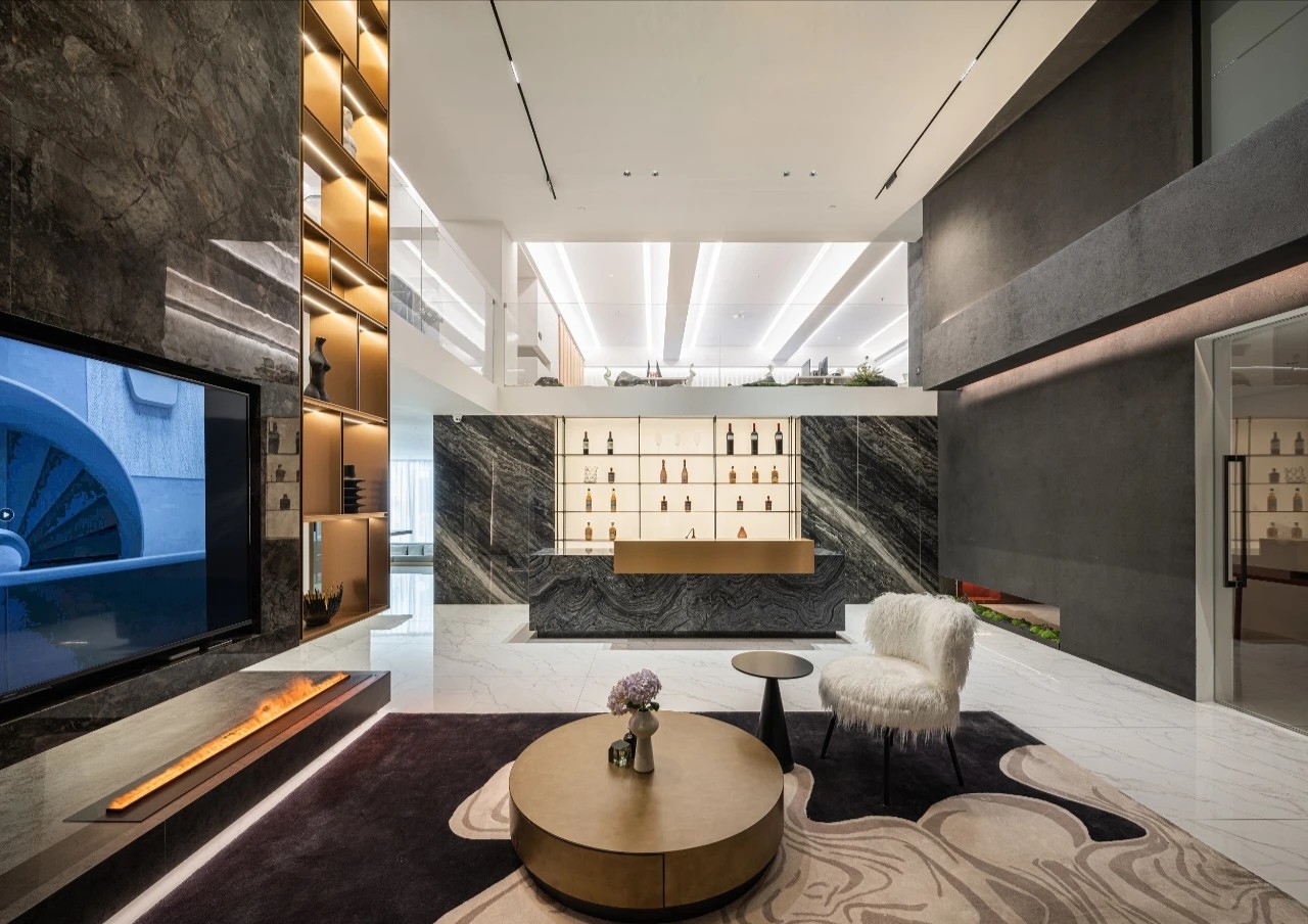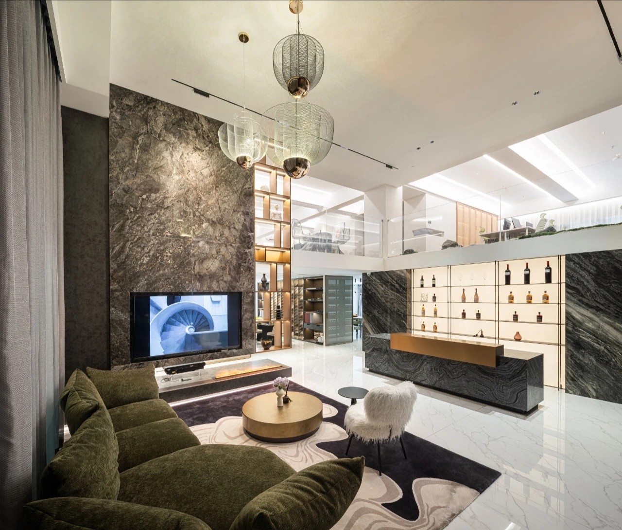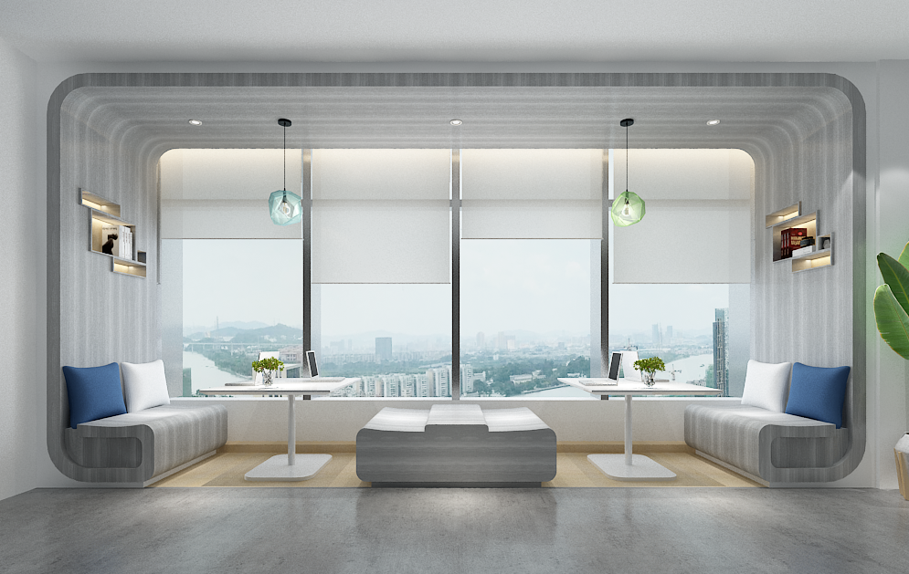 整个办公室采用了一种新中式的设计方式,我们在对中国文化充分理解的基础上融合进现代的元素。在色彩上秉承了古典风格的典雅与华贵,与之不同的是加入了很多的现代的东西,使之呈现出时尚的特性。现代中式的家具风格一般颜色沉敛深厚,文化品位浓郁,古色古香的家具搭配上现代元素的绝妙组合给人以强烈的视觉意志力,成为时尚与古典的柔媚组合。