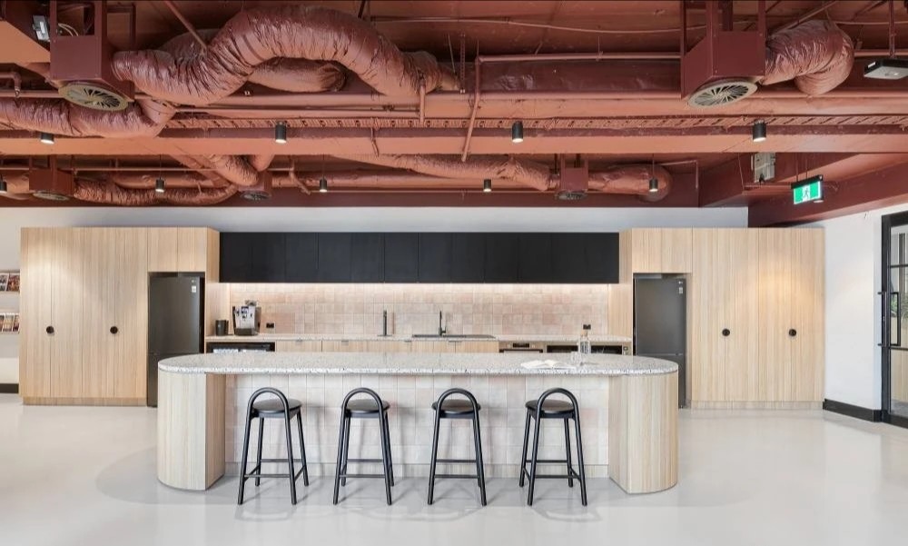 前台与电梯厅规划明亮宽敞,采用简单配色搭配原木,整体风格简约大气,更贴合企业环保从简的理念。