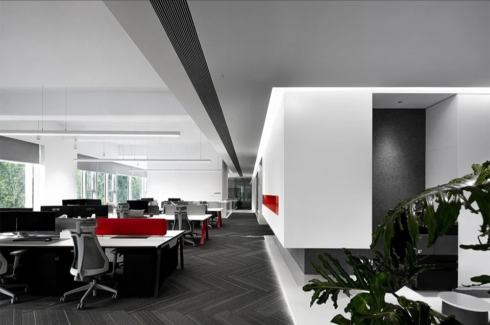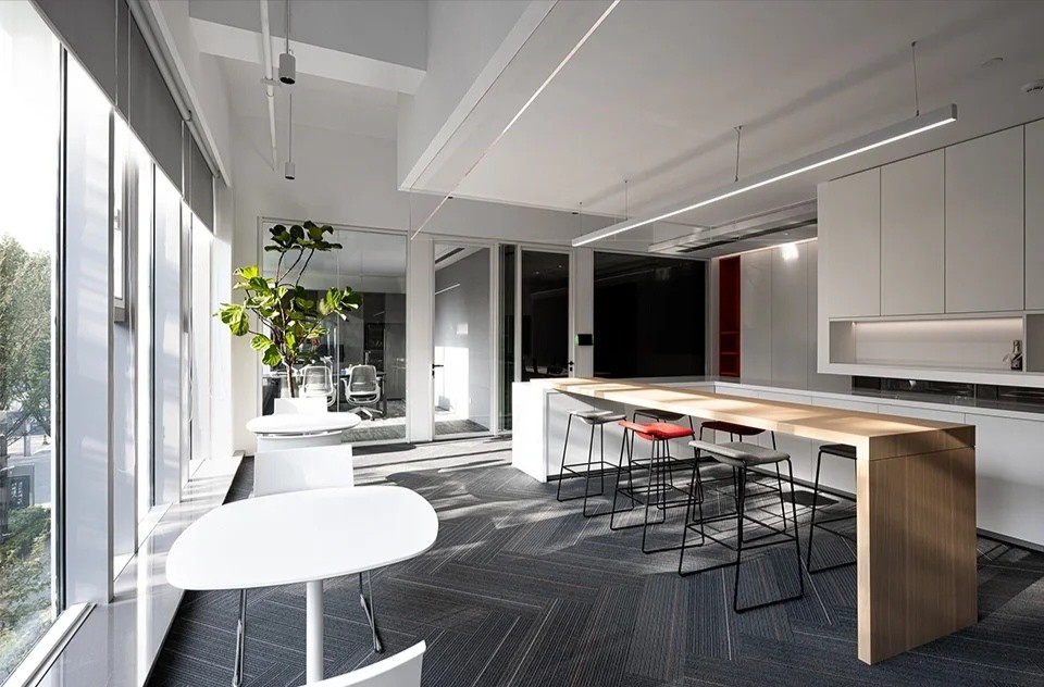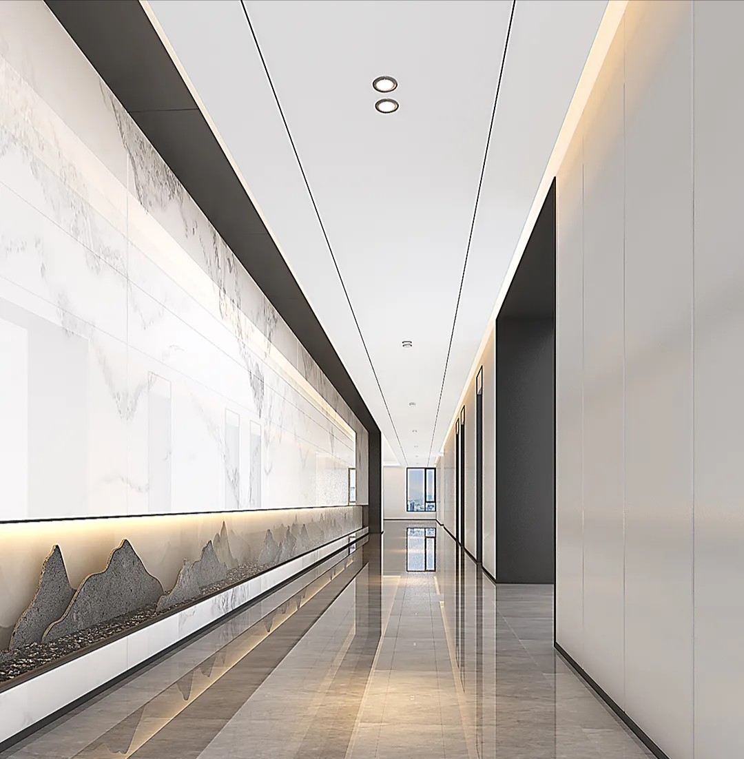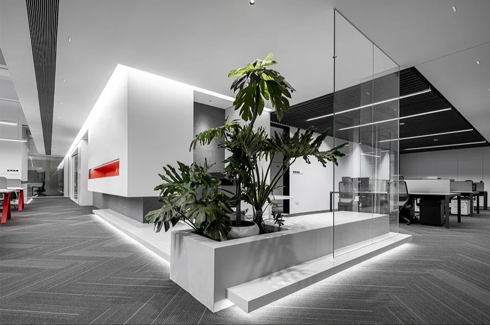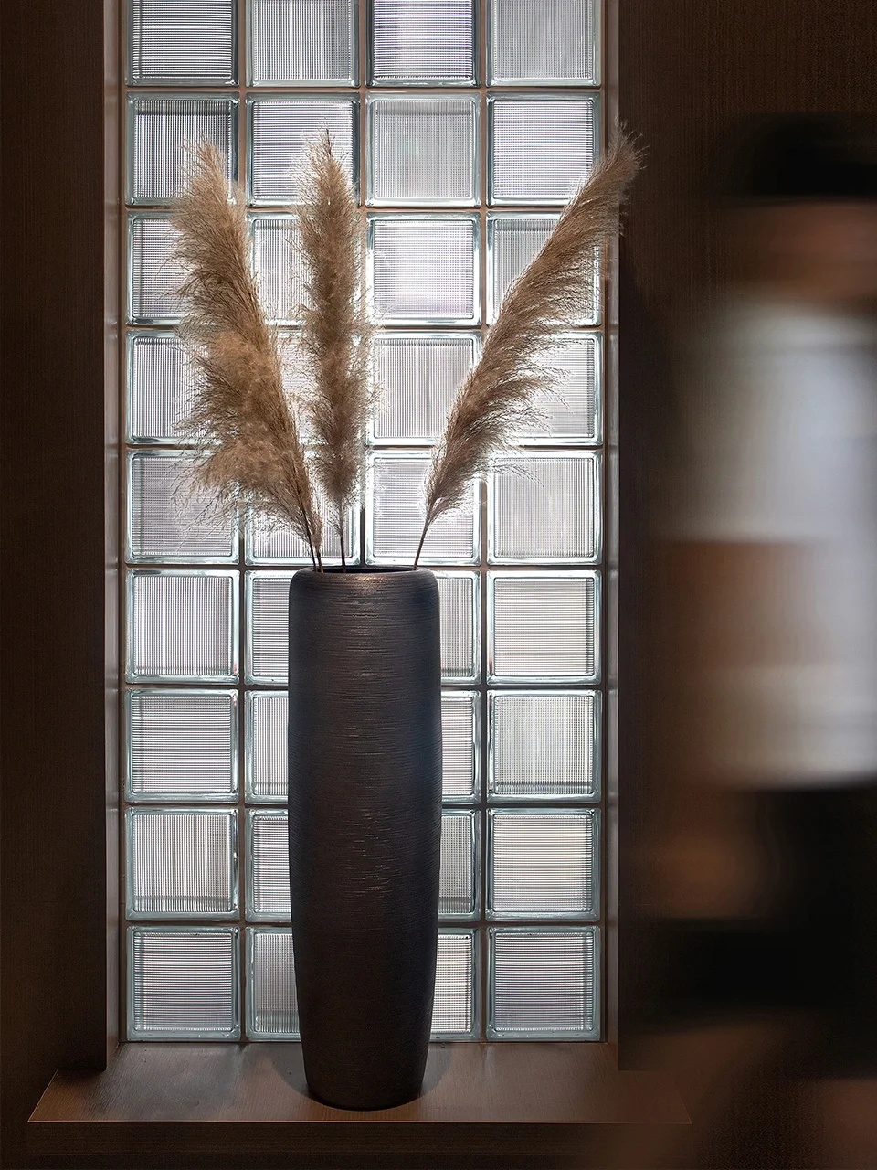 我们希望打破常态化办公空间的格局,光与影映射在墙面的肌理石皮上,探索如何构建办公空间的高级感。当阳光穿过玻璃砖的一瞬间,描绘出光与影的性感线条,与自然形态的芦苇干支相衬托,抒发着一种流光疏影之意。我们设想了一种以“感知”和“探索”为核心的空间系统,从尺度感知、行为感知、色彩感知、序列感知和多维感知为核心的一个具有多元探索的全新办公空间。