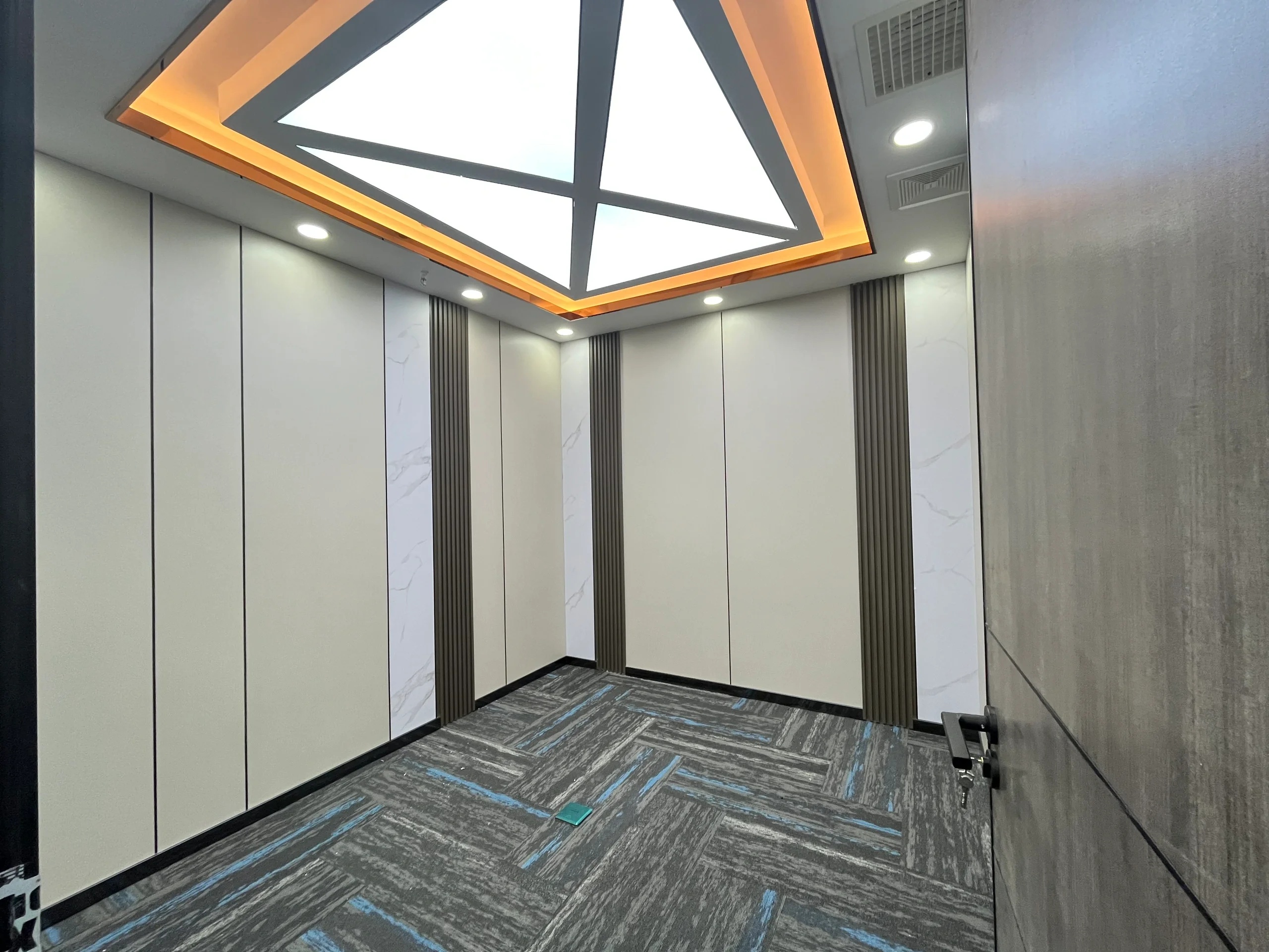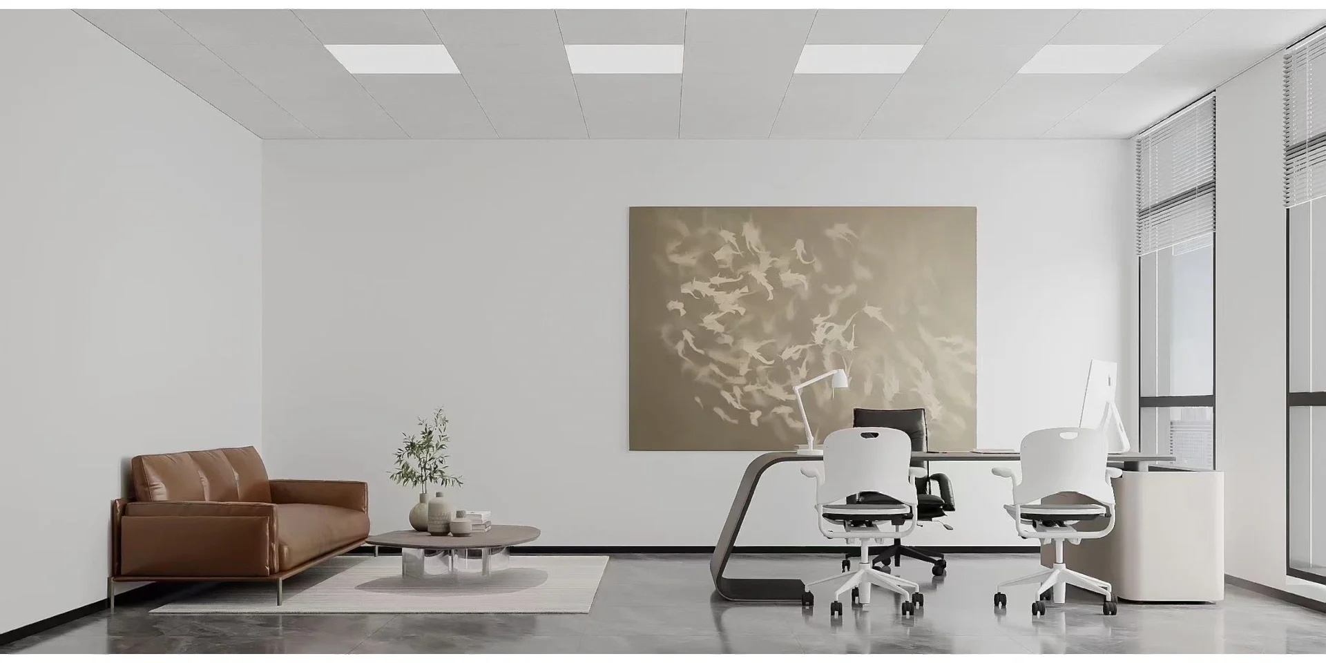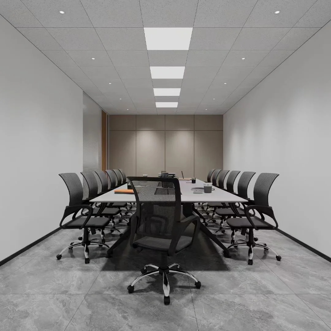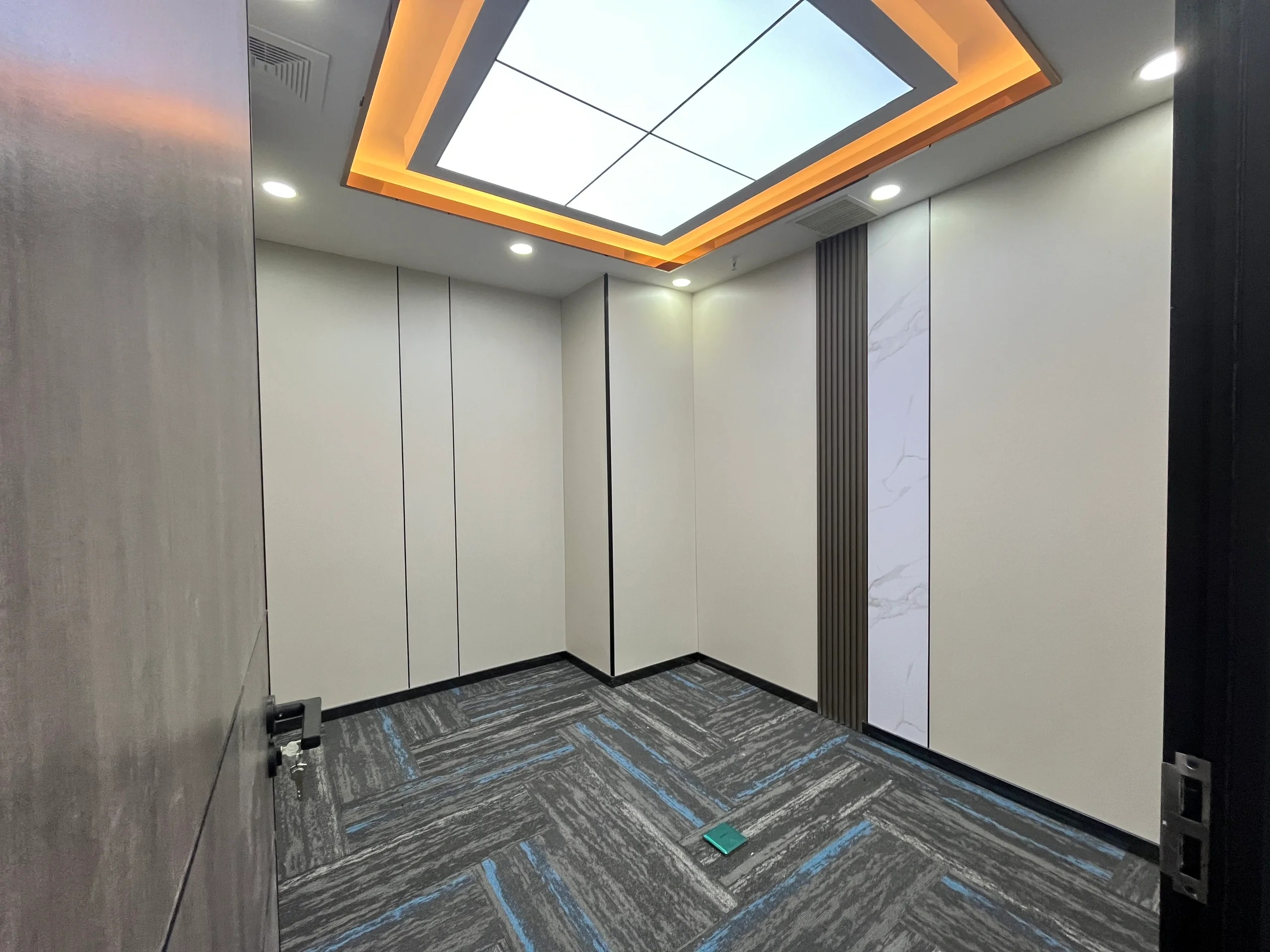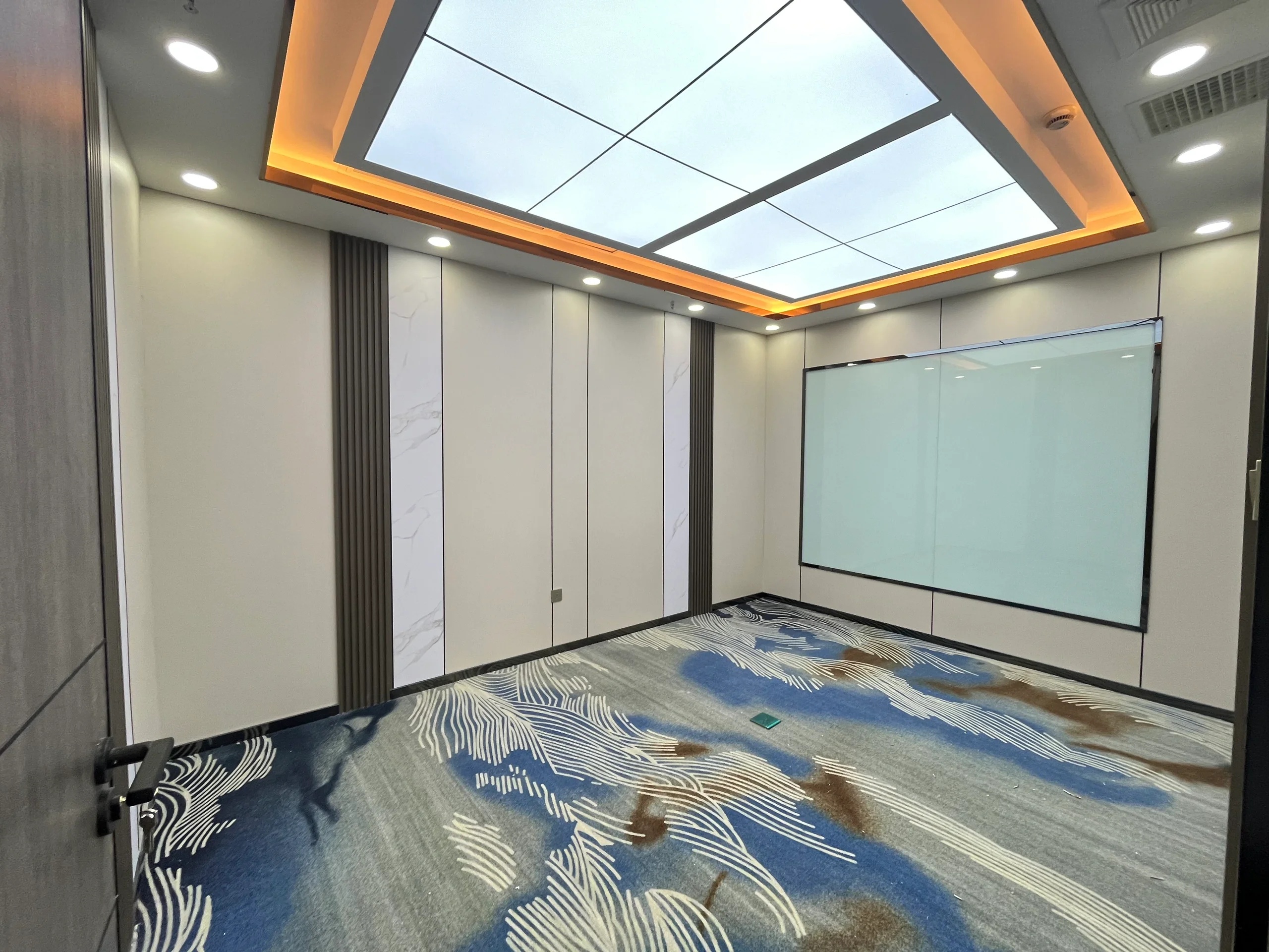 VIP会议室则采用了简洁干净的白色调墙板和米色的软装来体现空间质感。墙面的隐式灯带为房间增加更多氛围感和光线的变化。