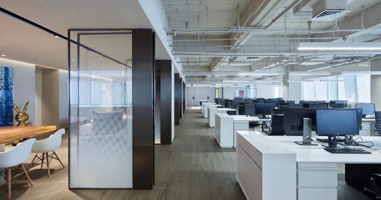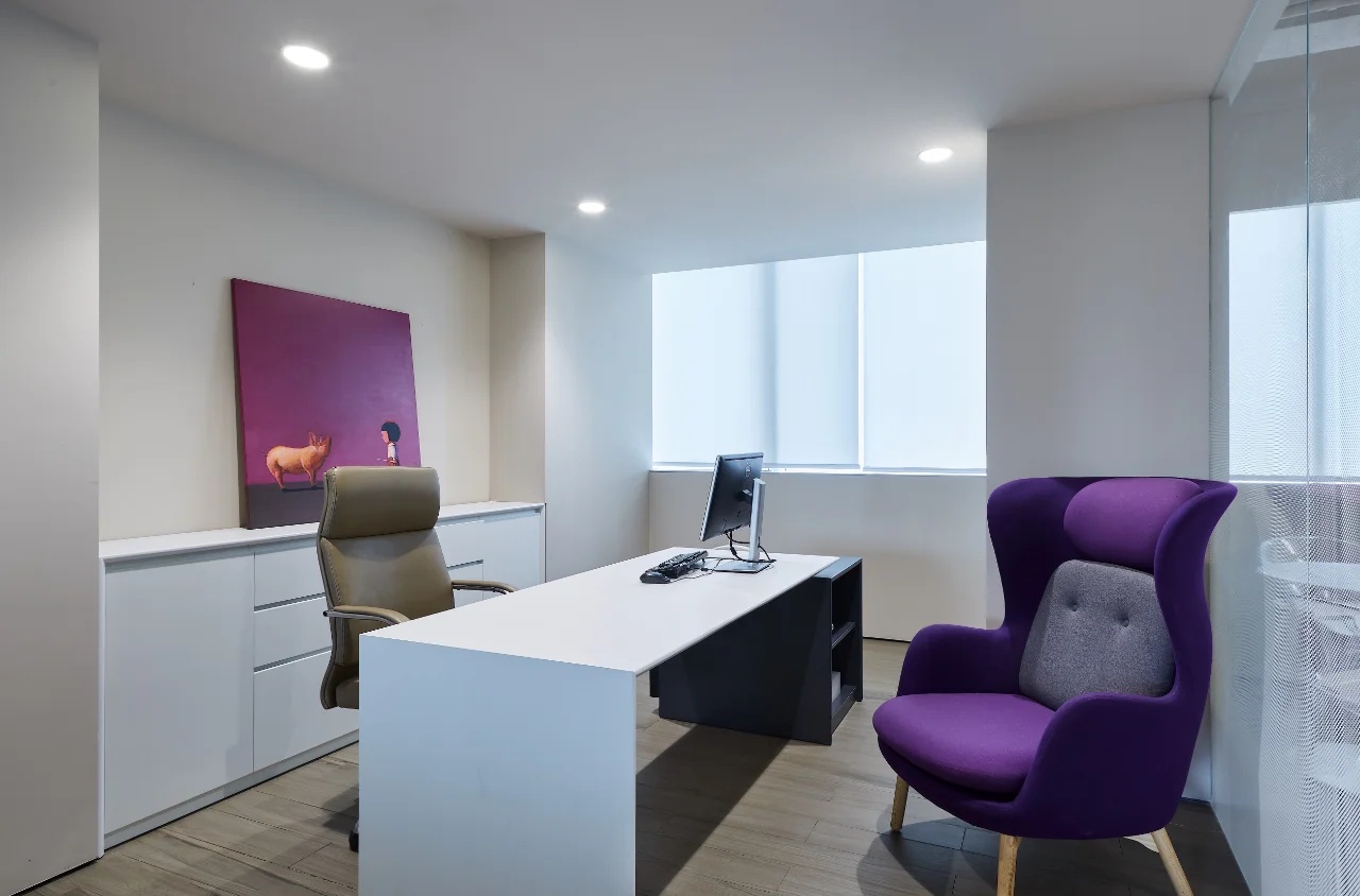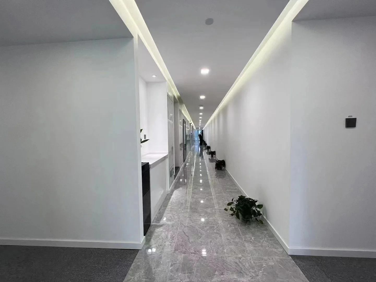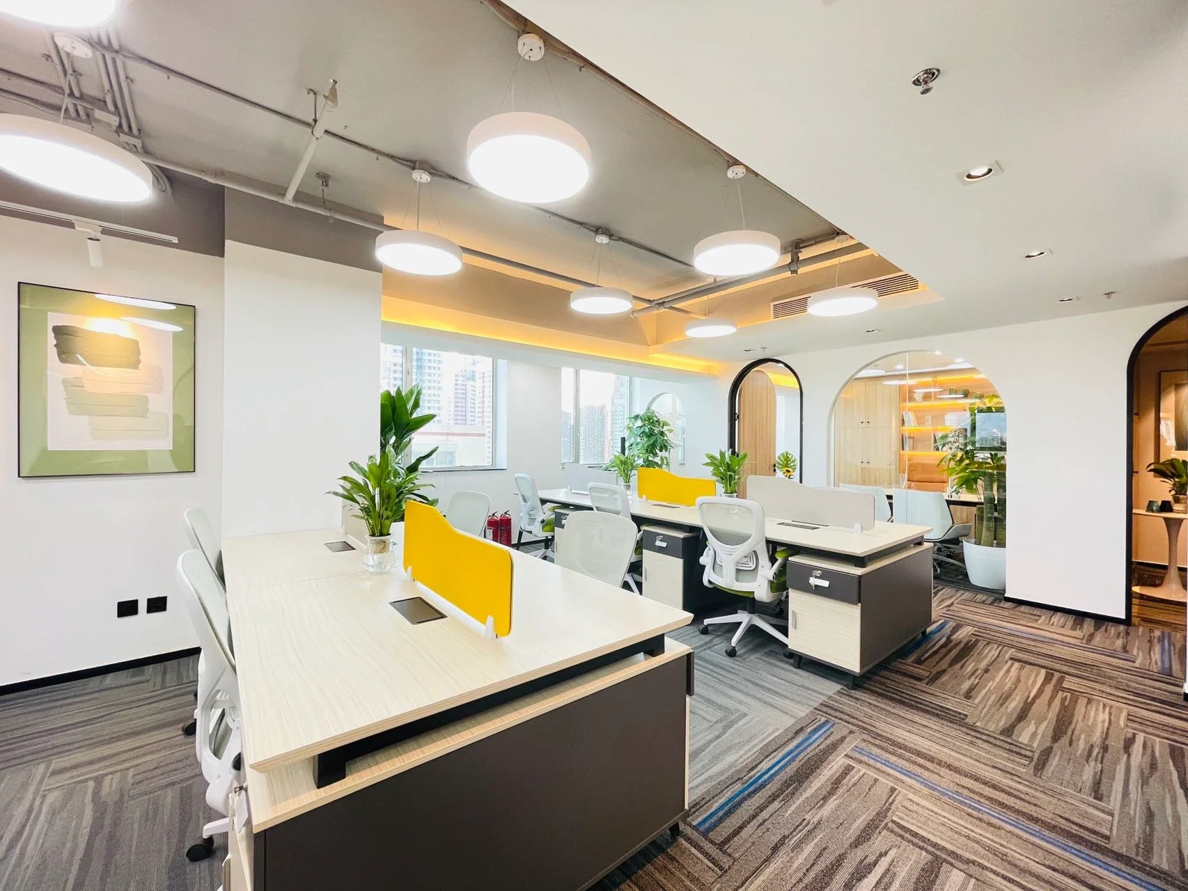 天圆地方的设计理念,全新装修简约时尚!精心设计、定制家具配备全齐,房间内均采用单层钢化玻璃到顶隔断。给您一种氛围式的办公体验。