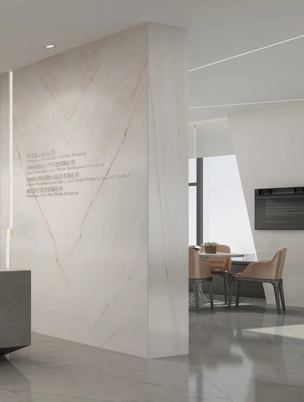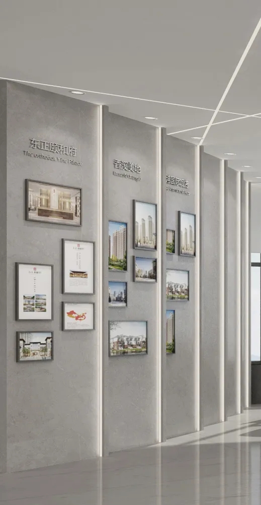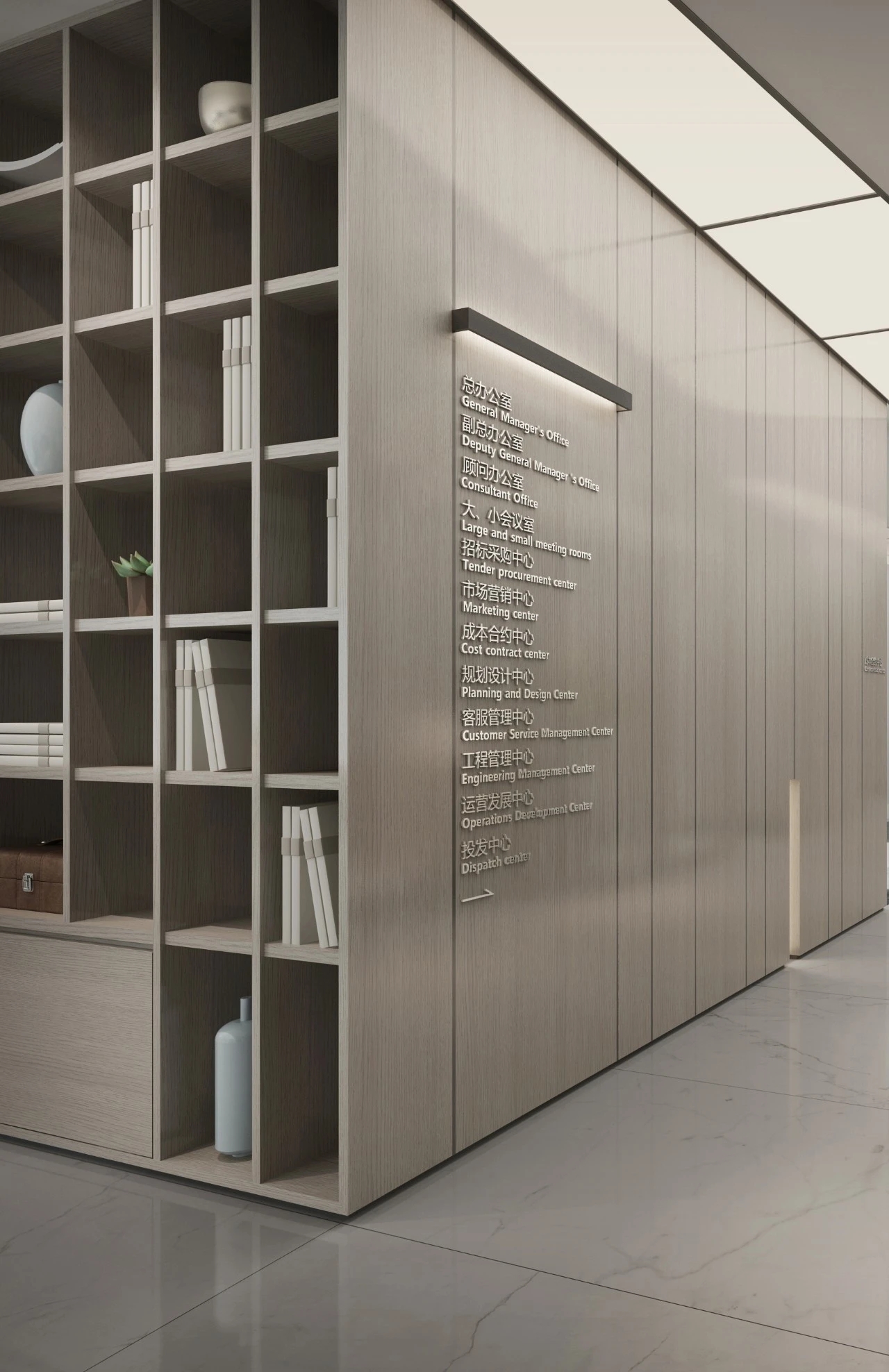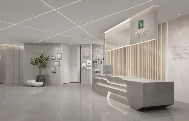前台和前厅背景墙是展示公司形象和风范的窗口,设计风格使用现代元素,相互融合简洁的线条以及色彩相互融合,来呈现出简单大气的空间氛围
