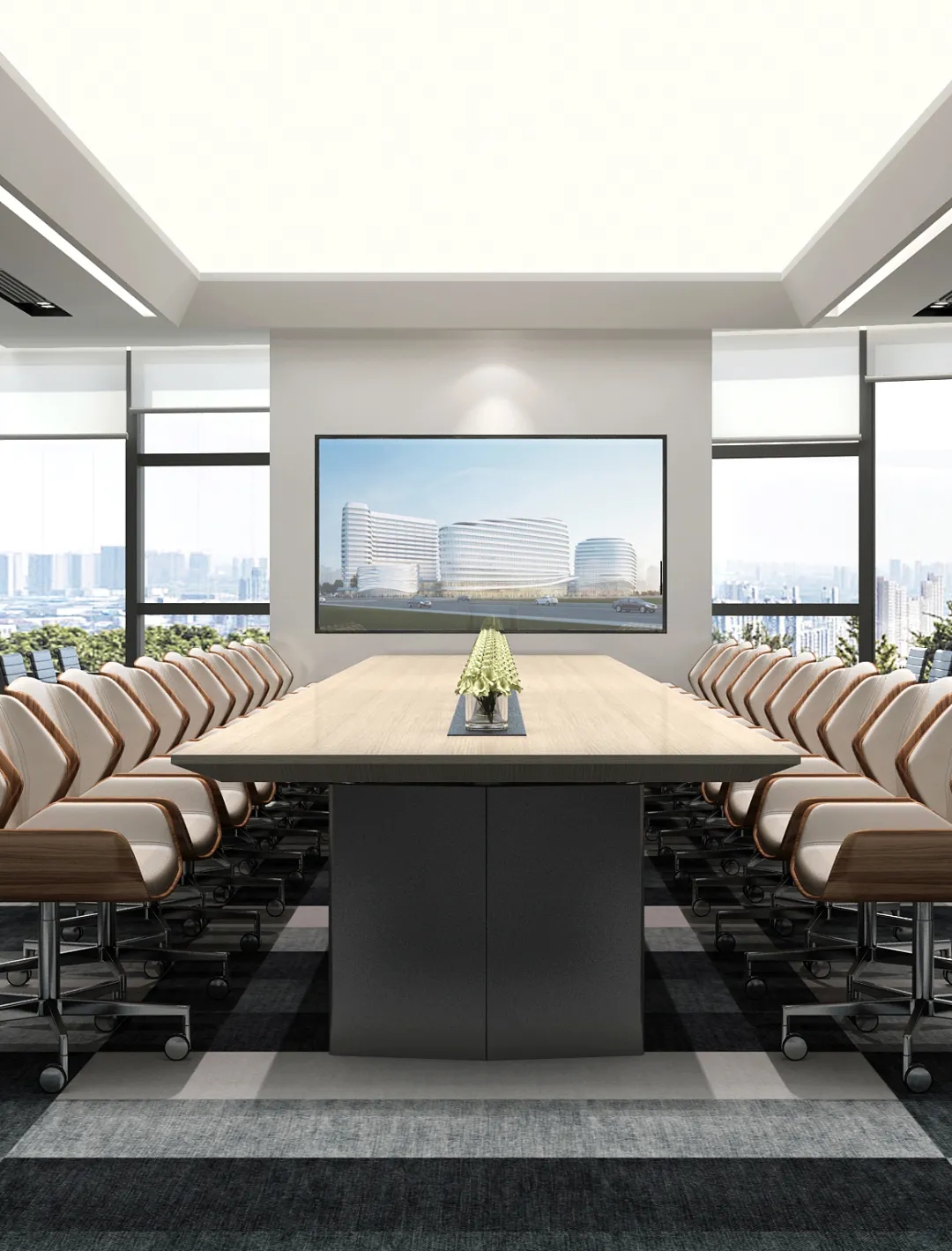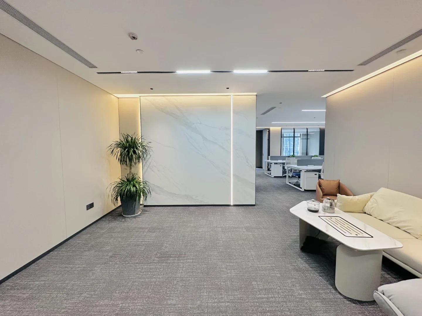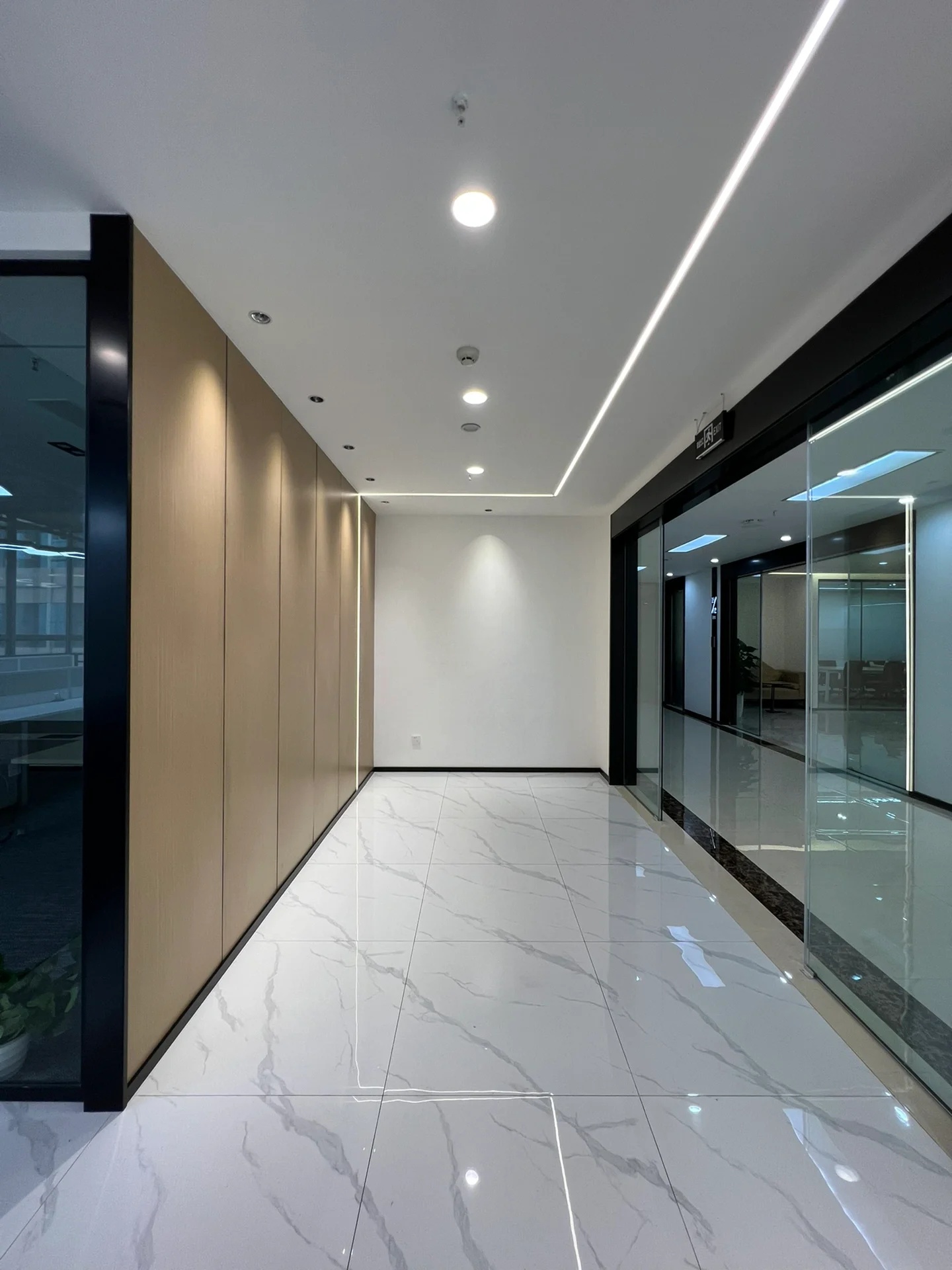 前台和前厅背景墙是展示公司形象和风范的窗口,设计风格使用现代元素,相互融合简洁的线条以及色彩相互融合,来呈现出简单大气的空间氛围