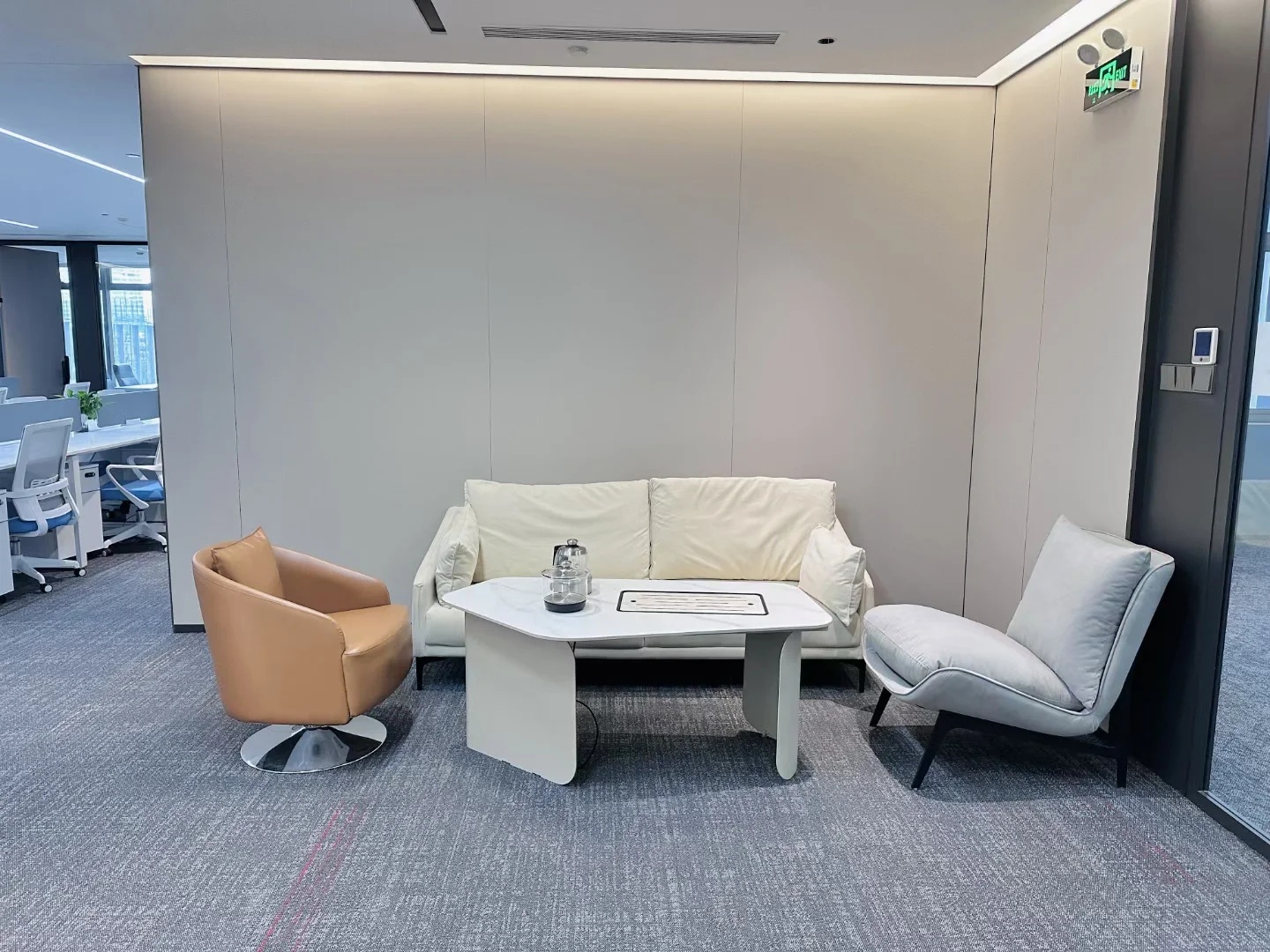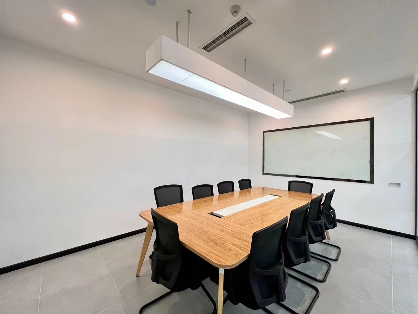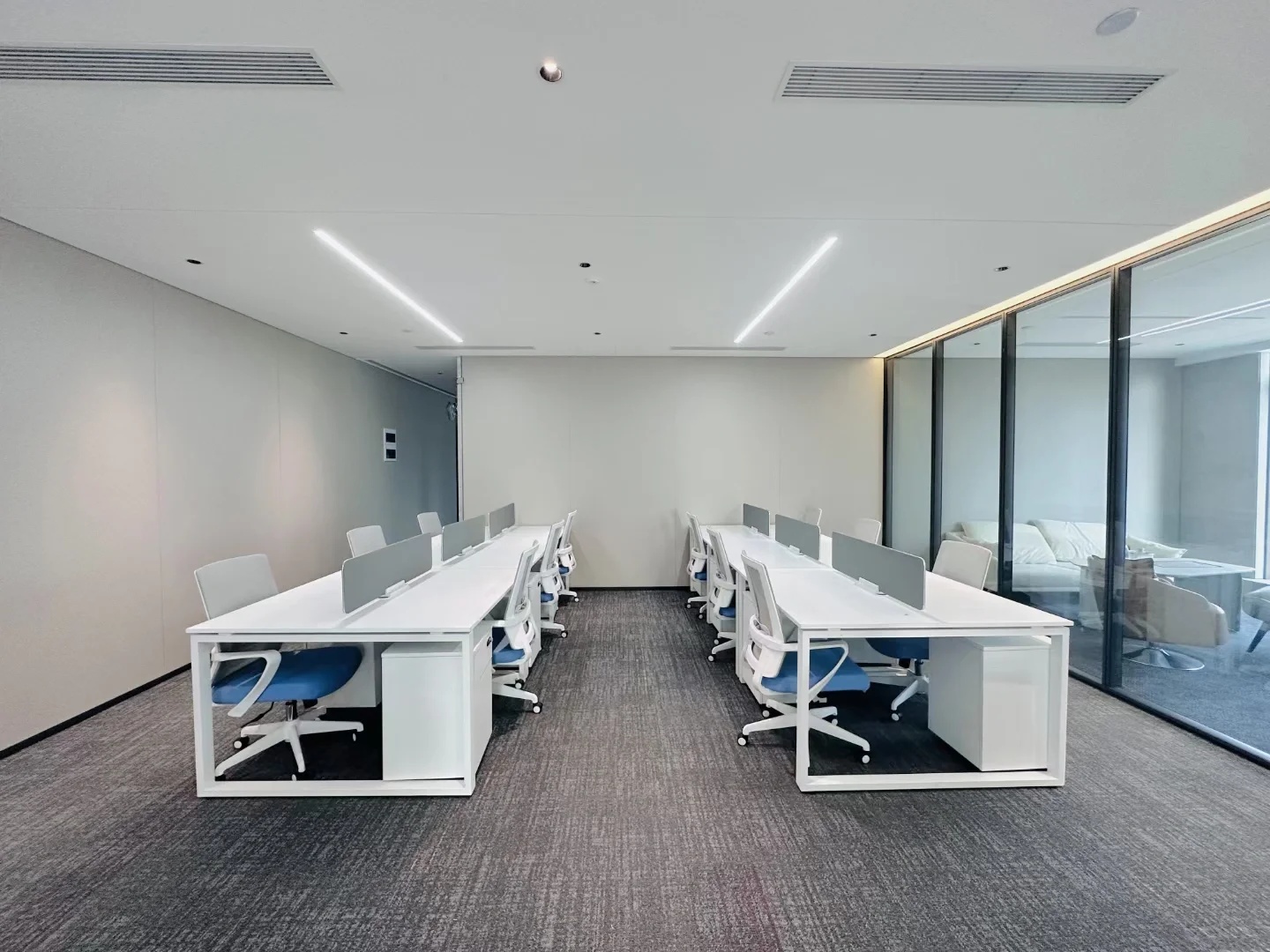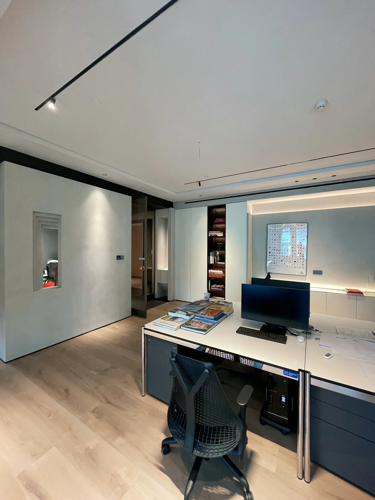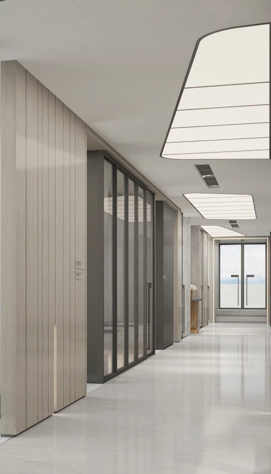 阳光穿过玻璃透入空间里,光线随着时间的变化而摆动,使整个空间变得和谐而舒适,开发的空间布局,将员工与部门之间的距离拉近,是办公环境轻松却不失理性会议室的墙面采用了灰色色作为主色调,用简单条营造出一个理性而自然的流动空间,让使其凸显清透、雅致、稳重、大气外,还表现出一种高效感