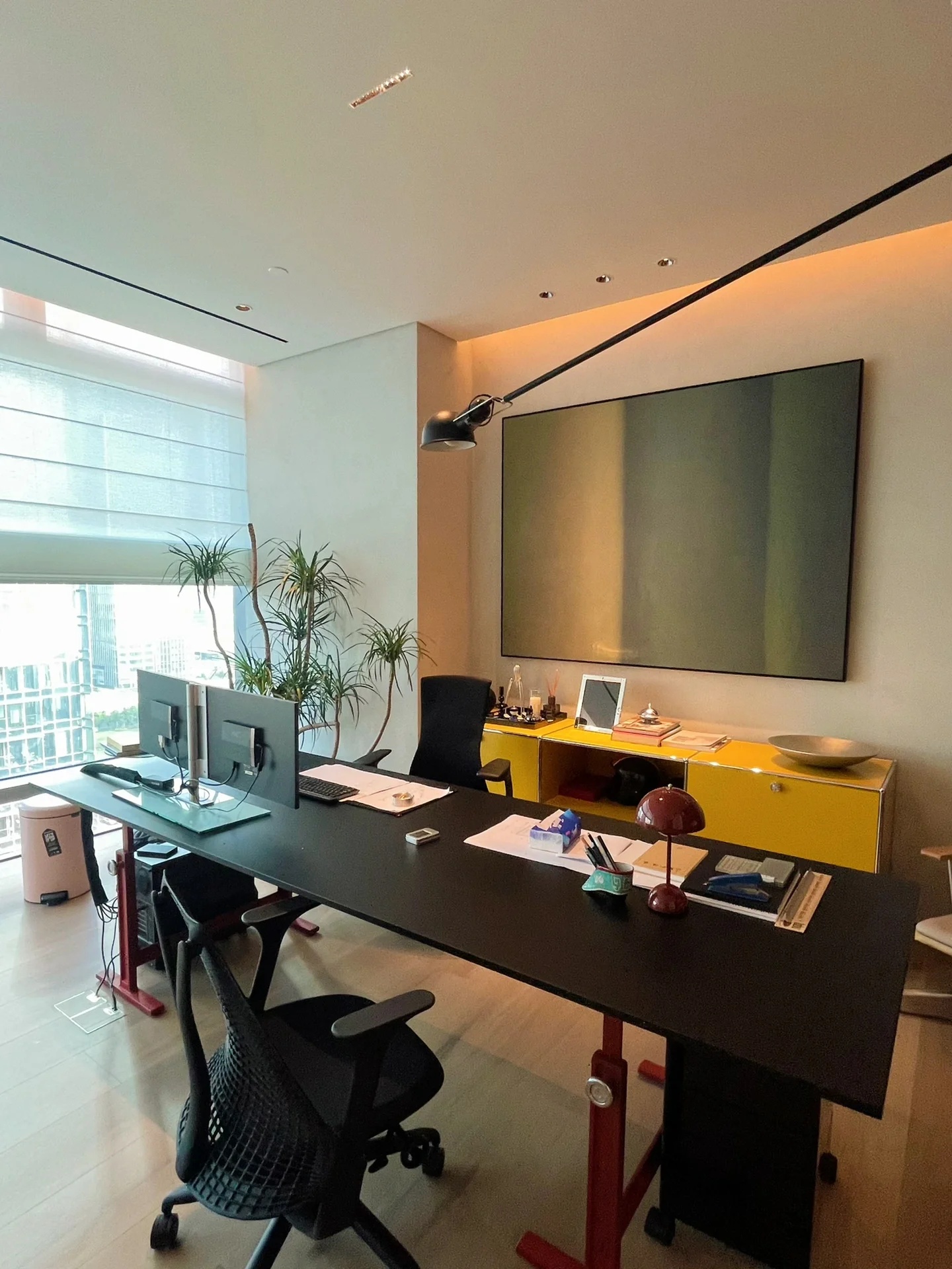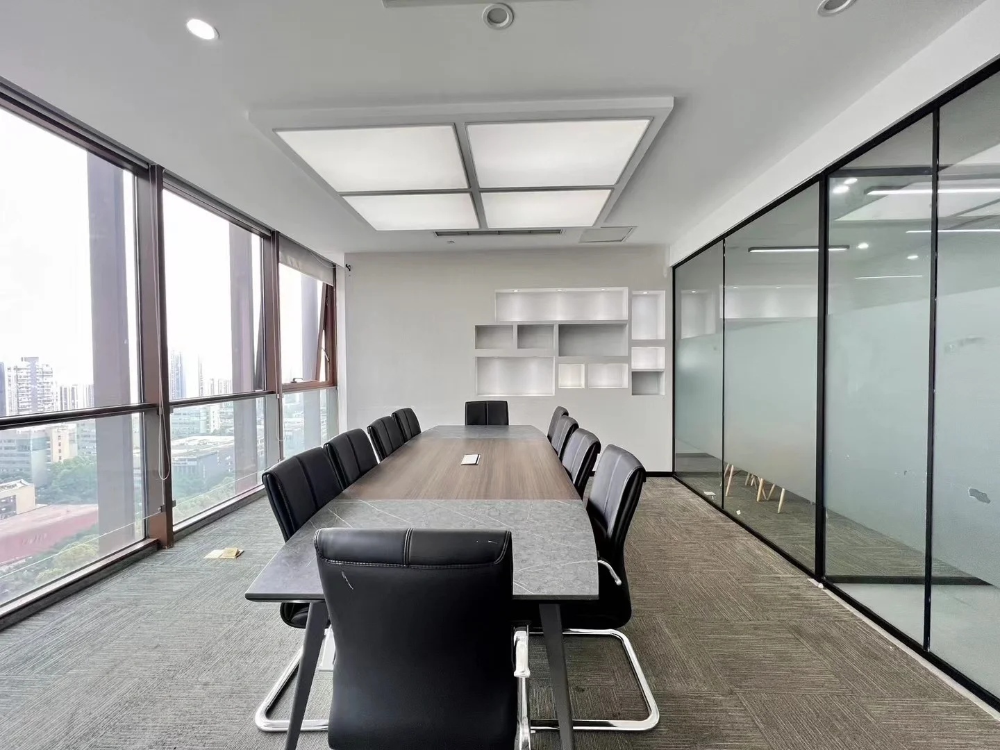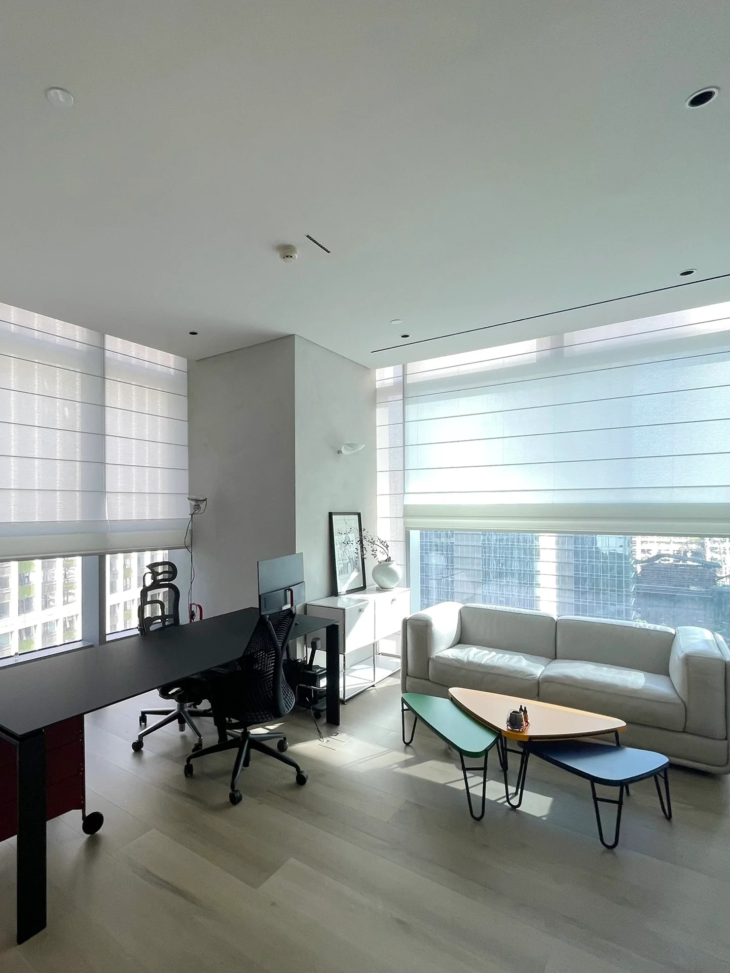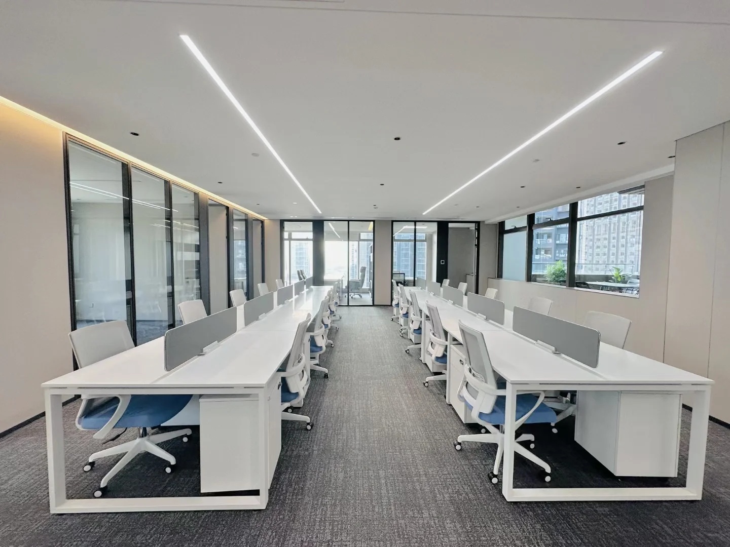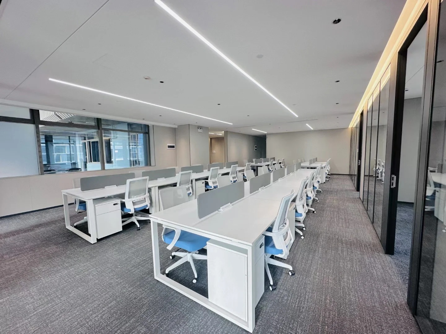阳光穿过玻璃透入空间里,光线随着时间的变化而摆动,使整个空间变得和谐而舒适,开发的空间布局,将员工与部门之间的距离拉近,是办公环境轻松却不失理性会议室的墙面采用了灰色色作为主色调,用简单条营造出一个理性而自然的流动空间,让使其凸显清透、雅致、稳重、大气外,还表现出一种高效感