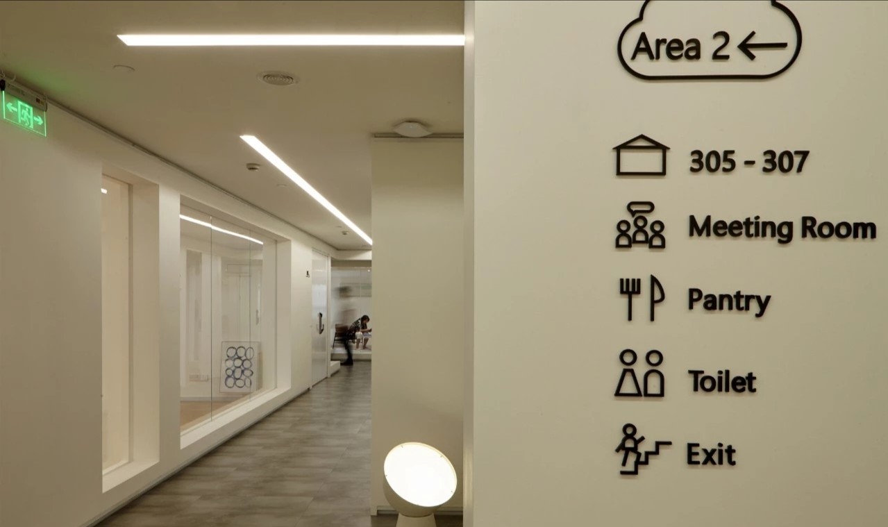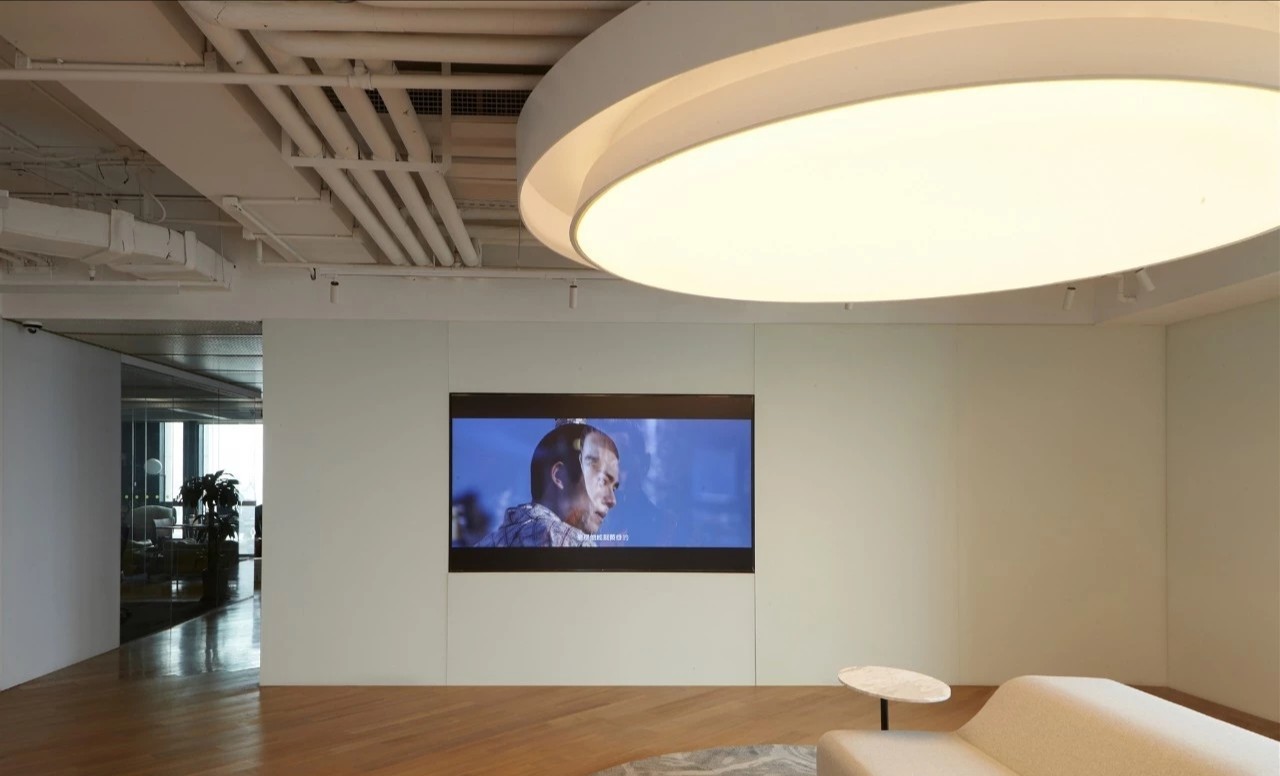 前台和销售部办公区之间有一条长长的走廊,这条走廊既是保证了两个空间的相对私密,同时也起到连接的作用,在这条廊道的墙面上,设计了三台100寸的大电视,滚动播放企业的文化和历史,就将这条走道设计成为了一个企业文化长廊,“在行走的过程中了解大运”,“并在行走的过程中带来好运”是我们给这条长廊赋予的意义,此为“走运“.