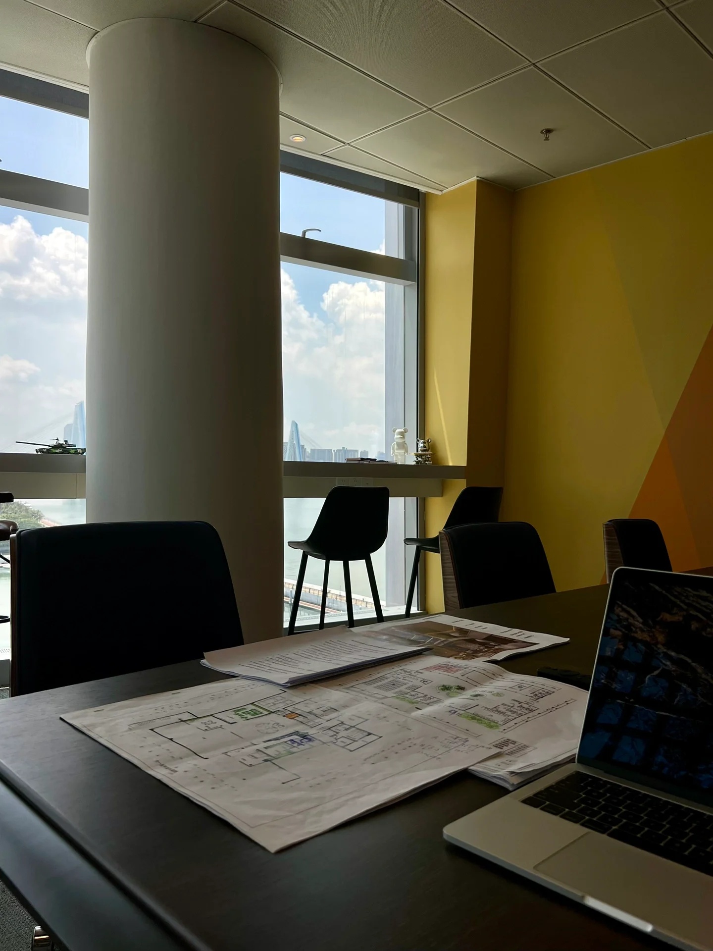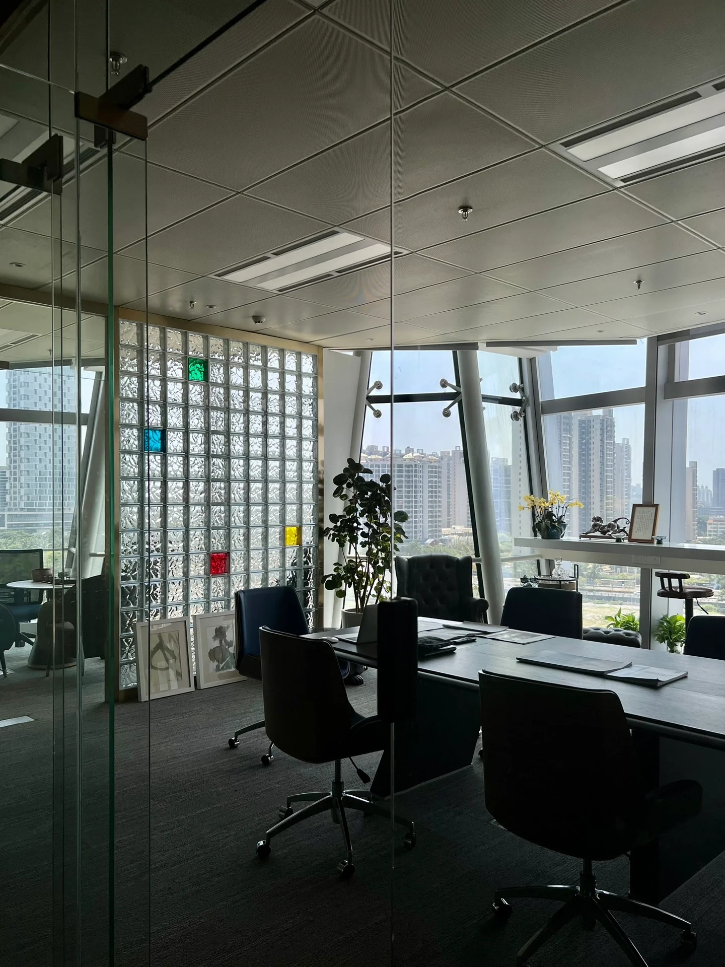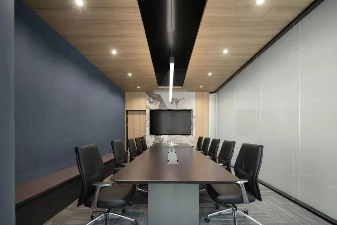 会议室以黑白灰+原木色调为主,整个空间看上去非常干净利落.