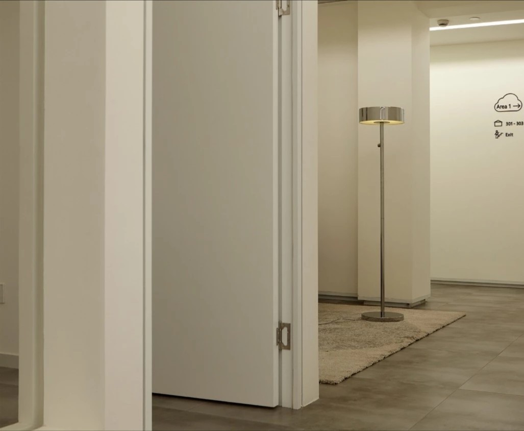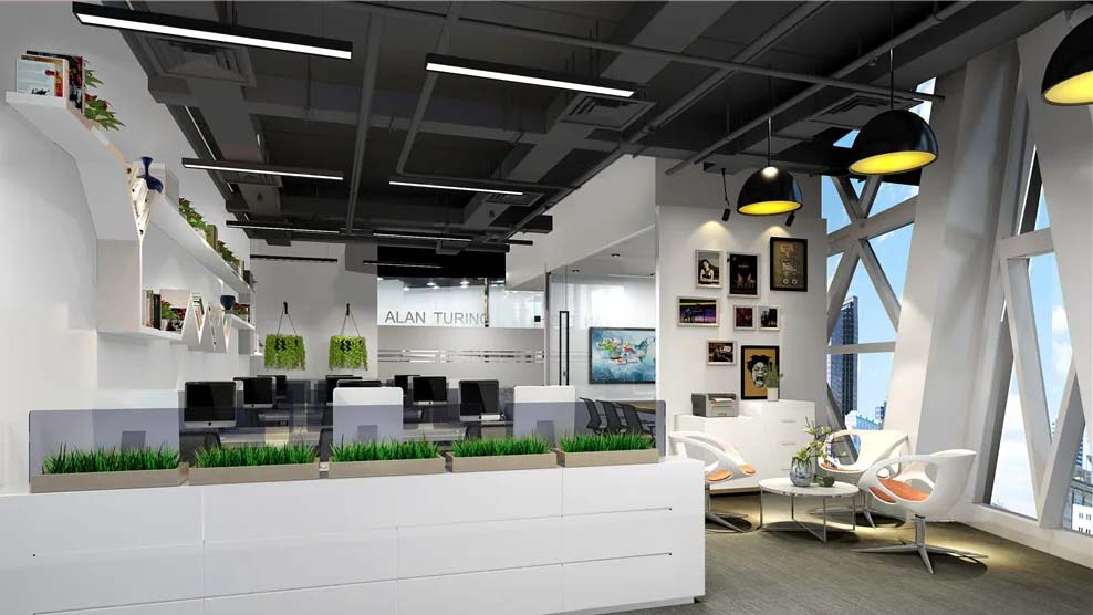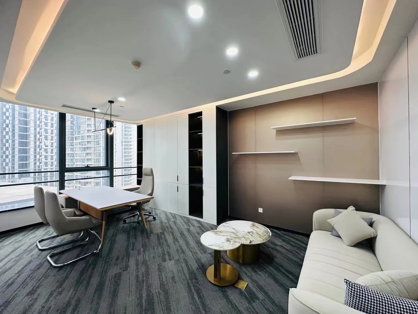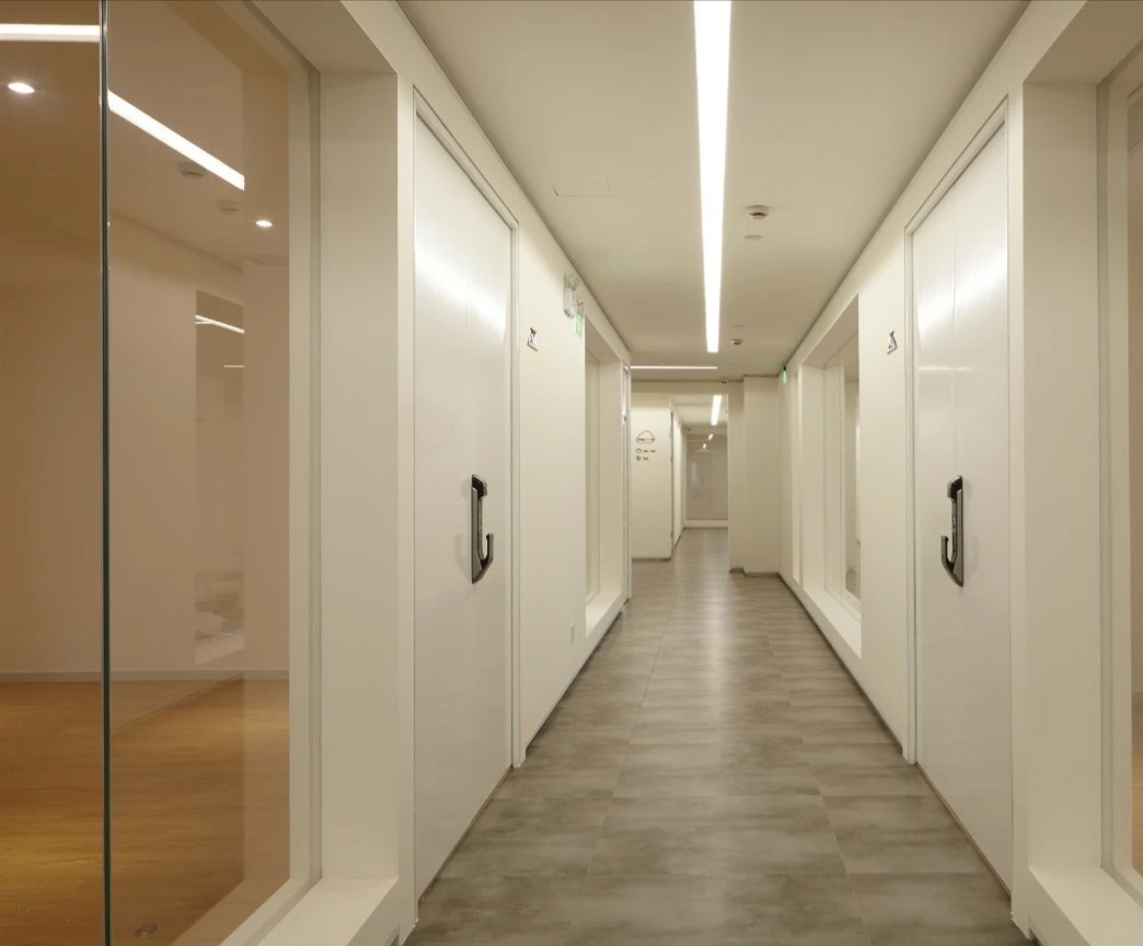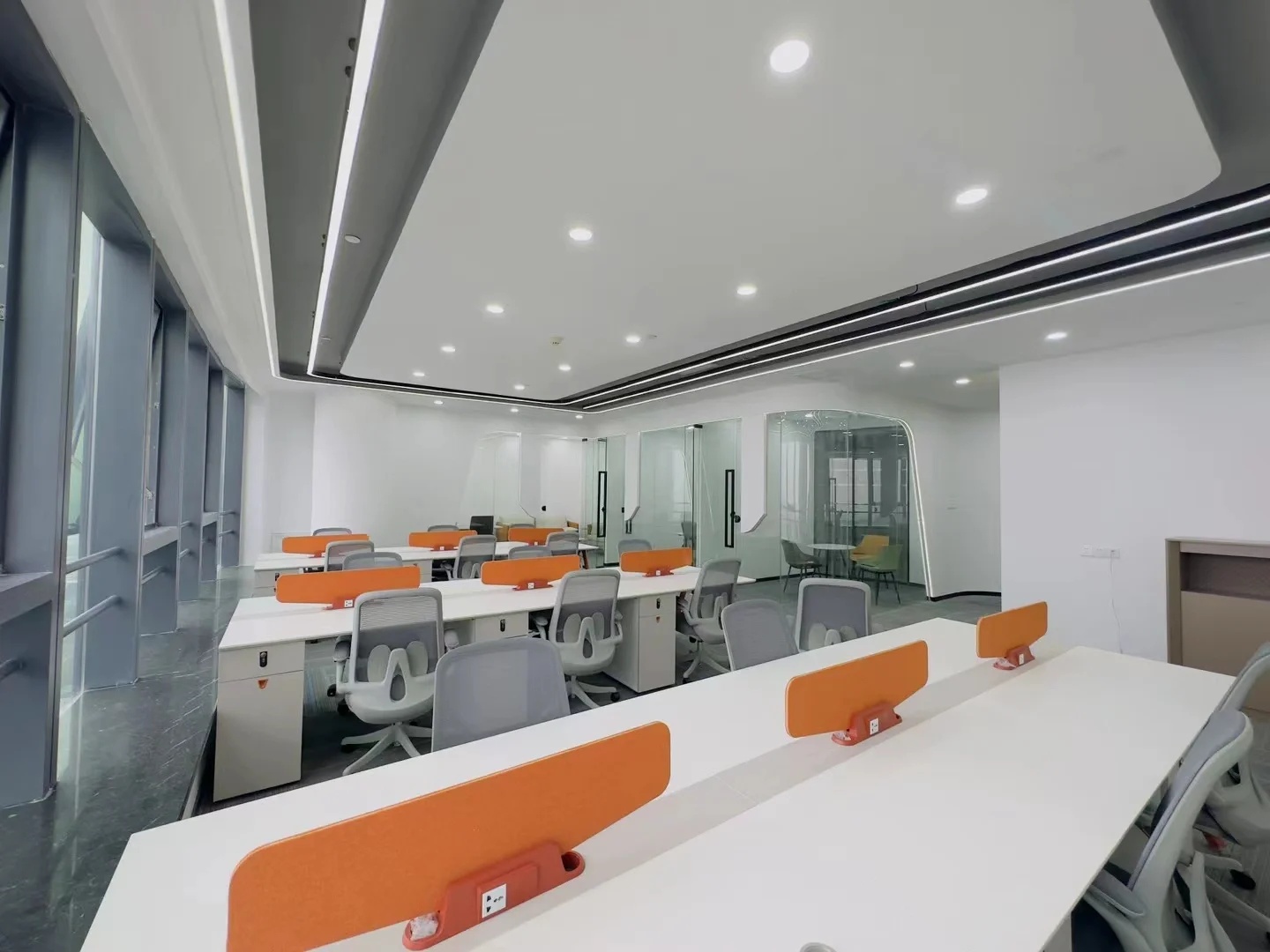 在灯光设计上,南面挑空大堂增加了局部灯带设计营造暖度,呼应了叠纸LOGO的同时,保持了南面挑空大堂的简约氛围。
