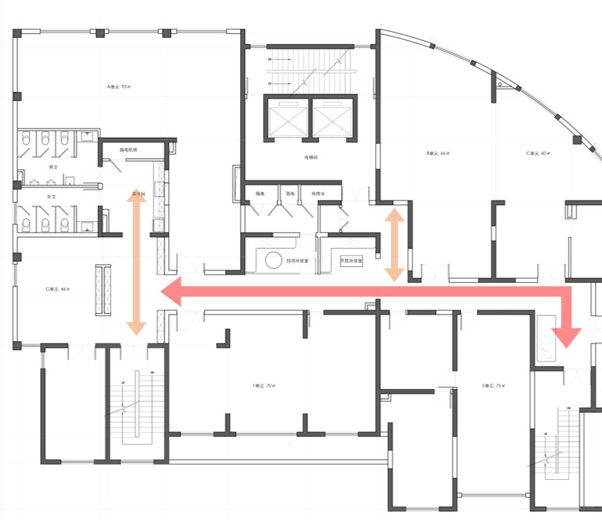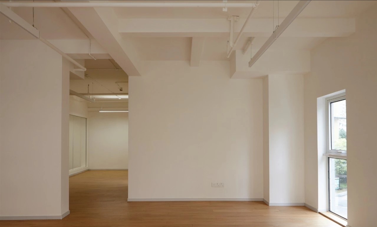 南北入口分别对应了南北两大堂,由于原始大堂铝板无法进行拆除,但在设计上不符合叠纸的企业形象,为了保证后期能还原交付,在设计策略上采用米白色贴膜形式进行改造,各层的电梯间也同样采用此策略。