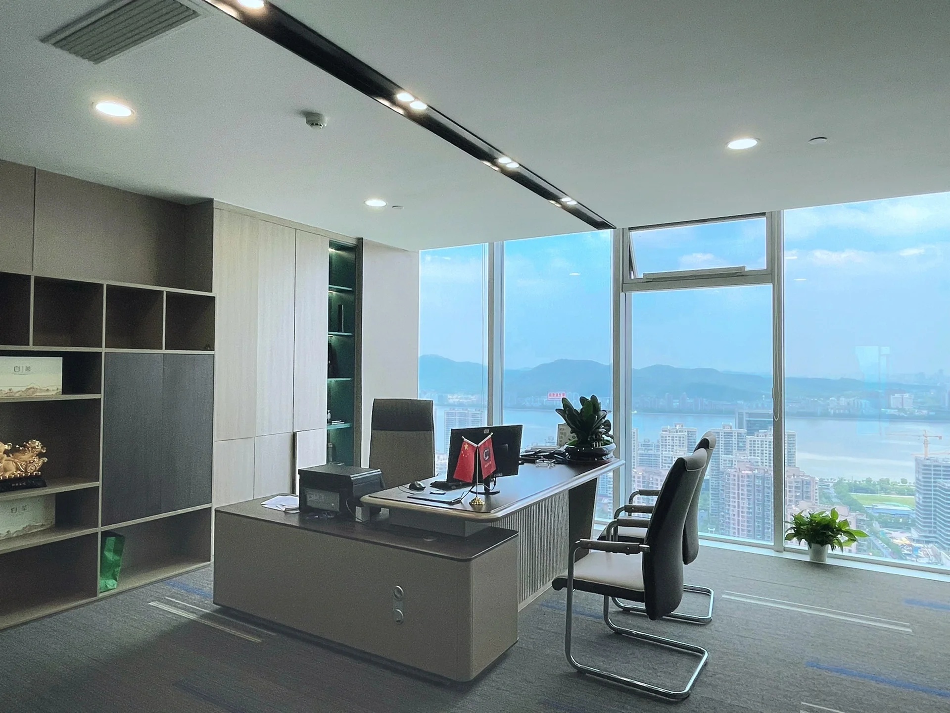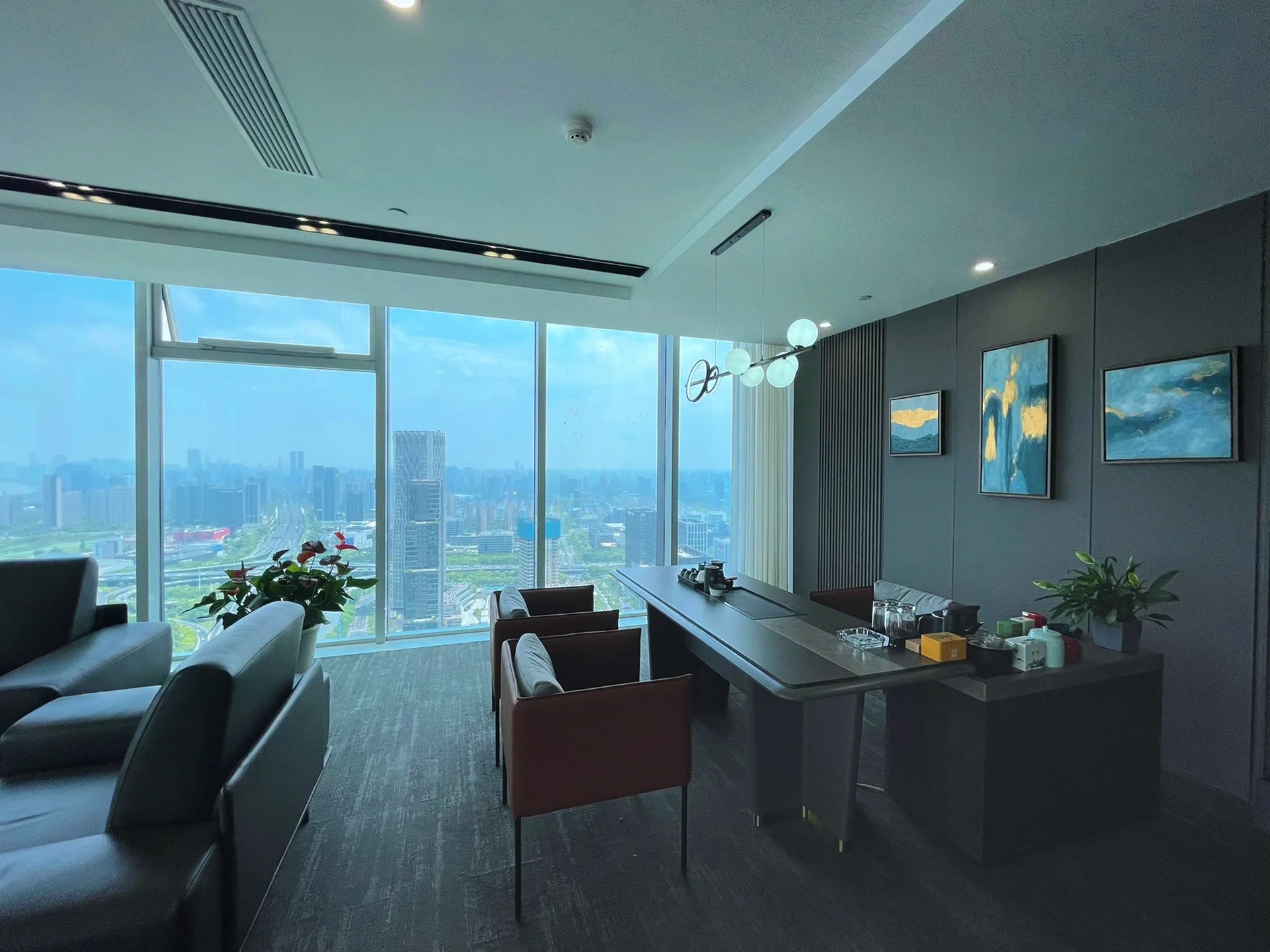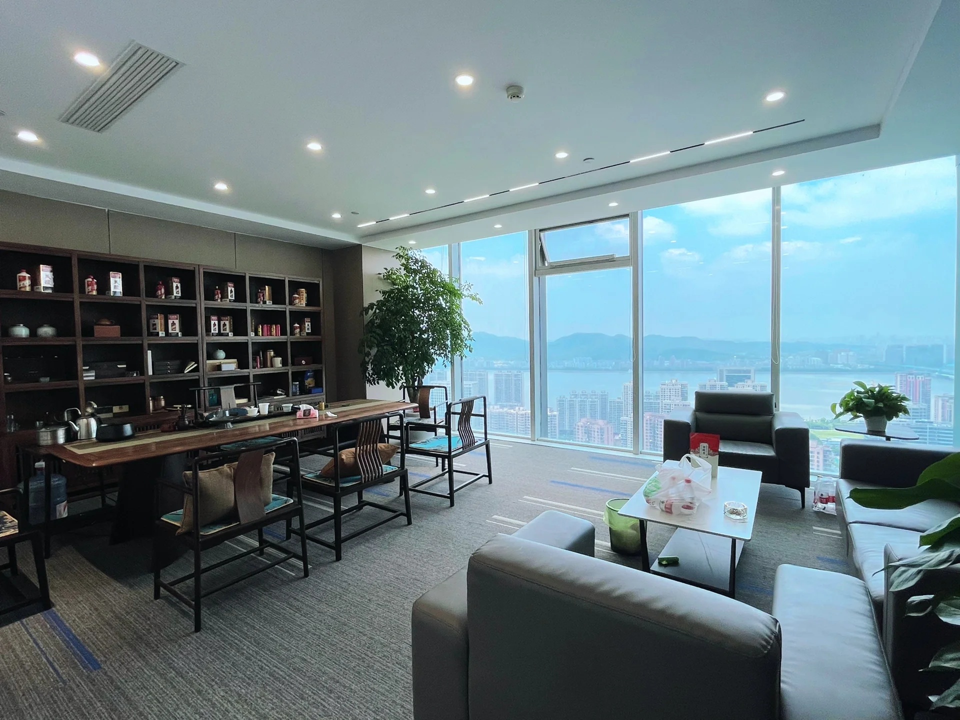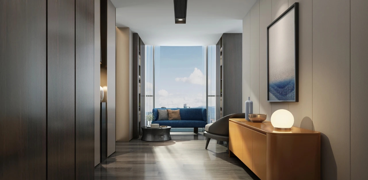 接待区追溯中式哲学精髓的家具,与意大利皇室品牌Poltrona Frau蕴含的尊贵气质,在工艺、材料及配色的交感和应之中迭代韵律,绽放美学新生。秉承「少即是多」的设计哲学,东方传统的审美意境与面向未来的时尚语汇在此得以有机结合,于空中描摹一处超卓社区,触发专注与平衡的归属感。