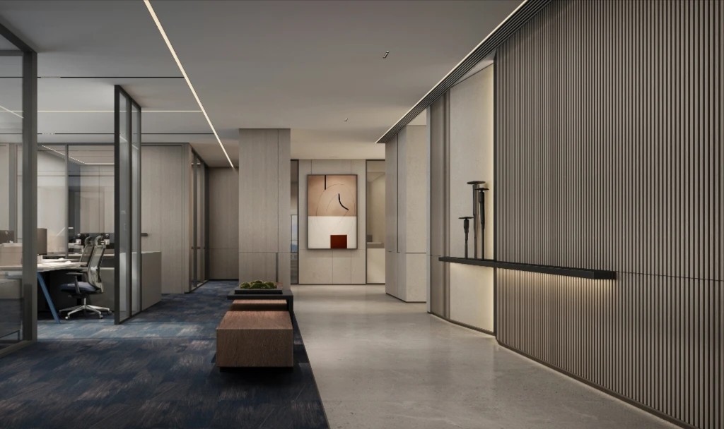 设计师将空间合理分割,使之拥有二十余个相对独立的办公和会议区域,以及餐区、休息区、洽谈区…还有足矣容纳150人的阶梯会议室,多种功能区域的划分组合,让办公节奏得以张驰结合,并为其提供了照明、办公家具等整体空间规划方案及落地,营造出一个知性的、优雅的,具有浓郁时尚感,但又充满着商务气息的现代化办公空间。