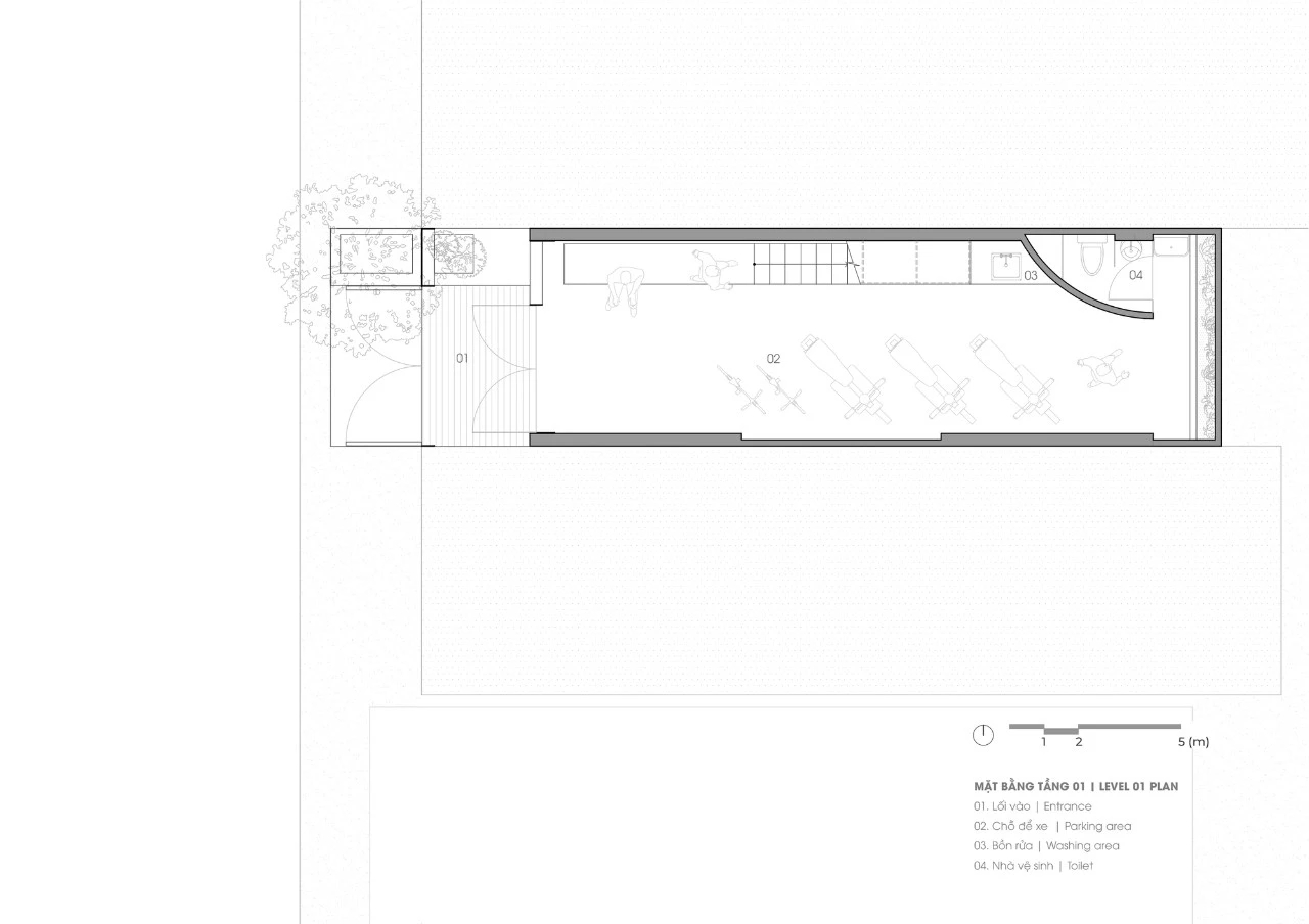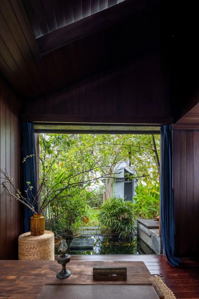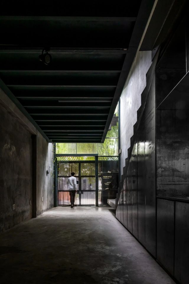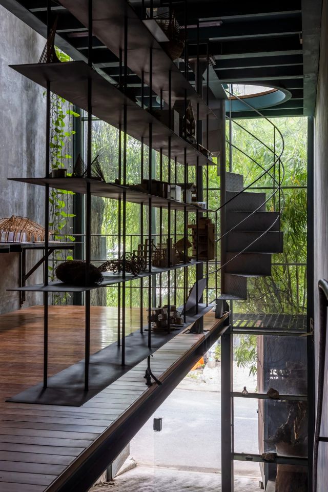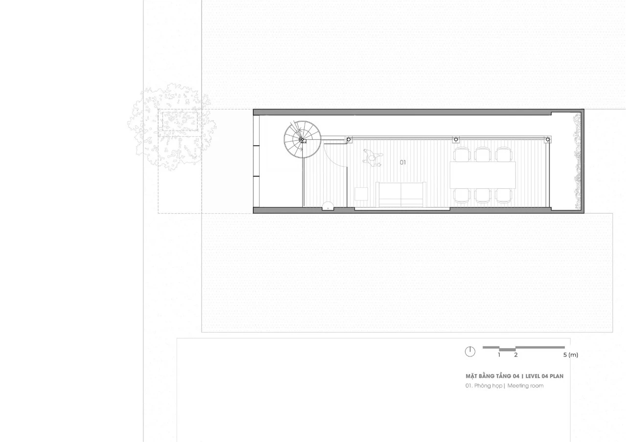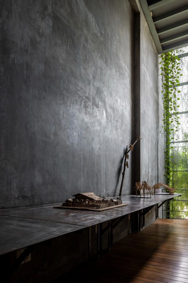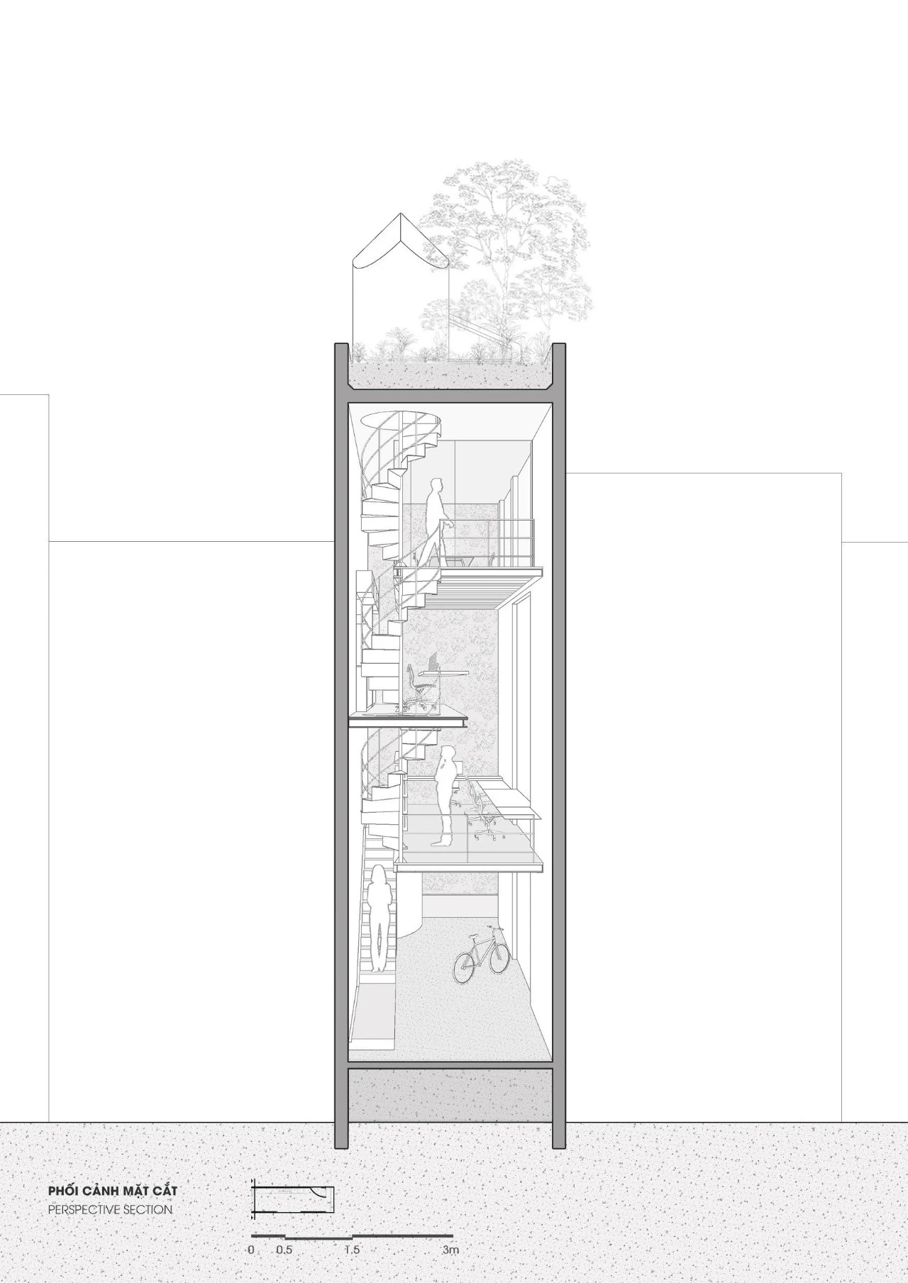 办公室立面的二层至四层都有相似的景观,可以俯瞰被各种植物覆盖的玻璃幕墙系统。建筑和窗户前的绿植代表了一种“常规隔断”,模糊了内外的界限,不仅为工作空间创造了私密性,还确保了自然光与舒适的绿色景观。建筑后方有一个从较高楼层一直延伸到底层的垂直悬浮花园作为保护,就像建筑呼吸的肺部。屋顶花园有一个多样化的生态系统,设有小鱼池和一些当地的树种,让来到这里的人们逃离城市喧嚣和闷热空气。工作空间几乎完全被绿植、自然光和新鲜空气所包围。