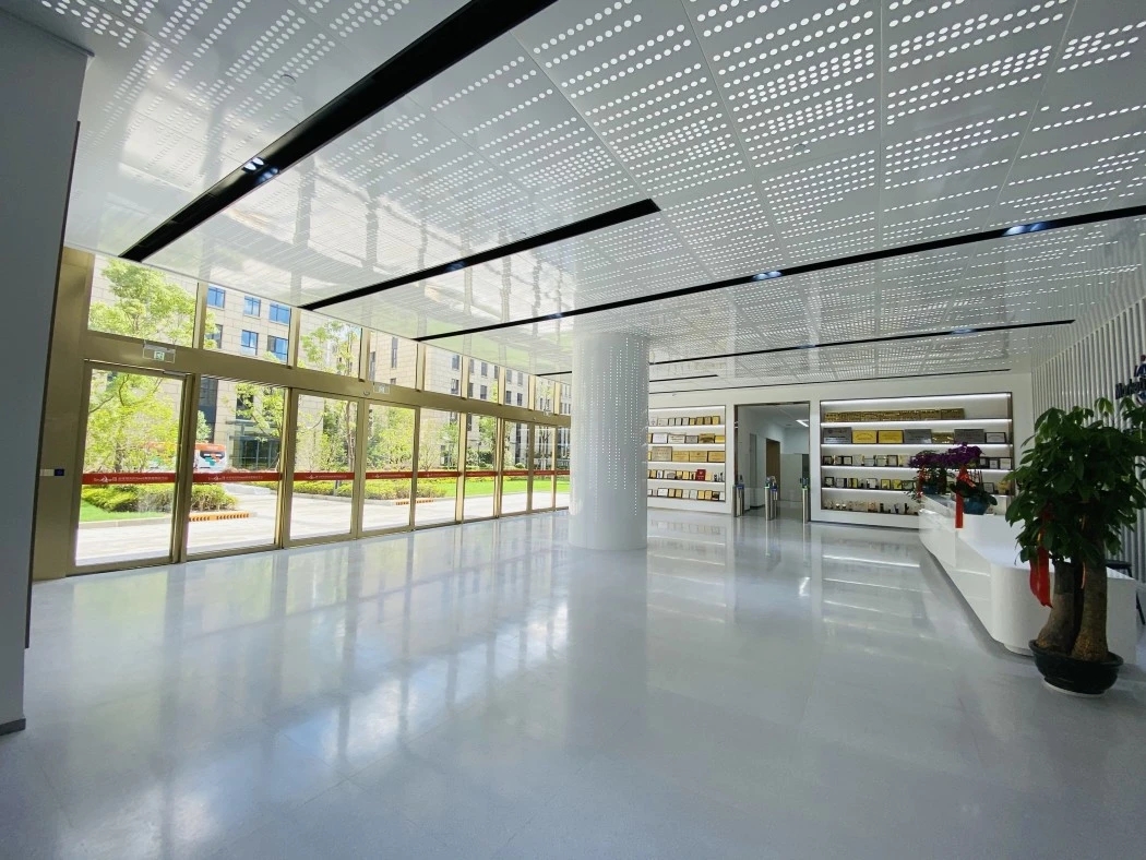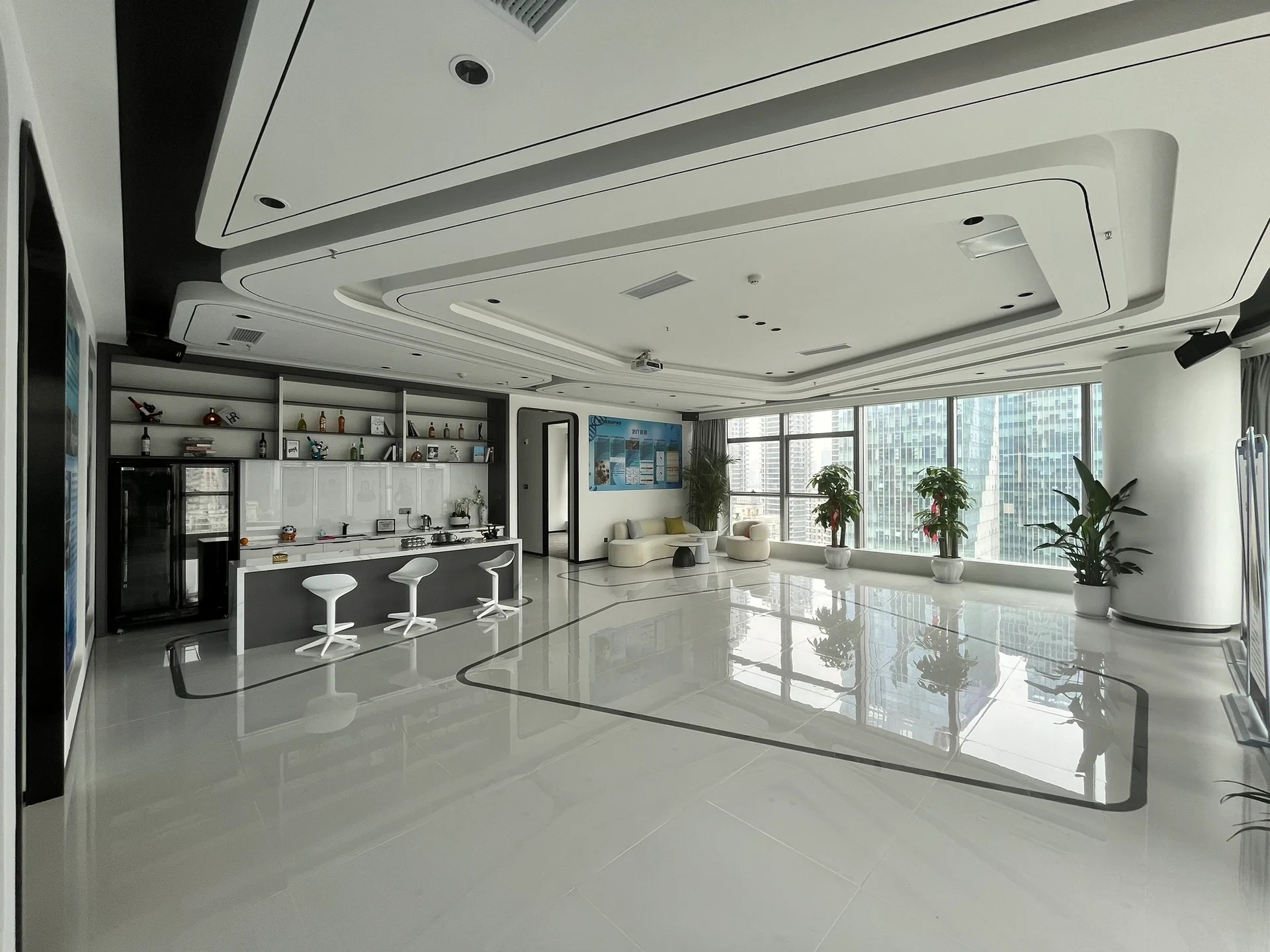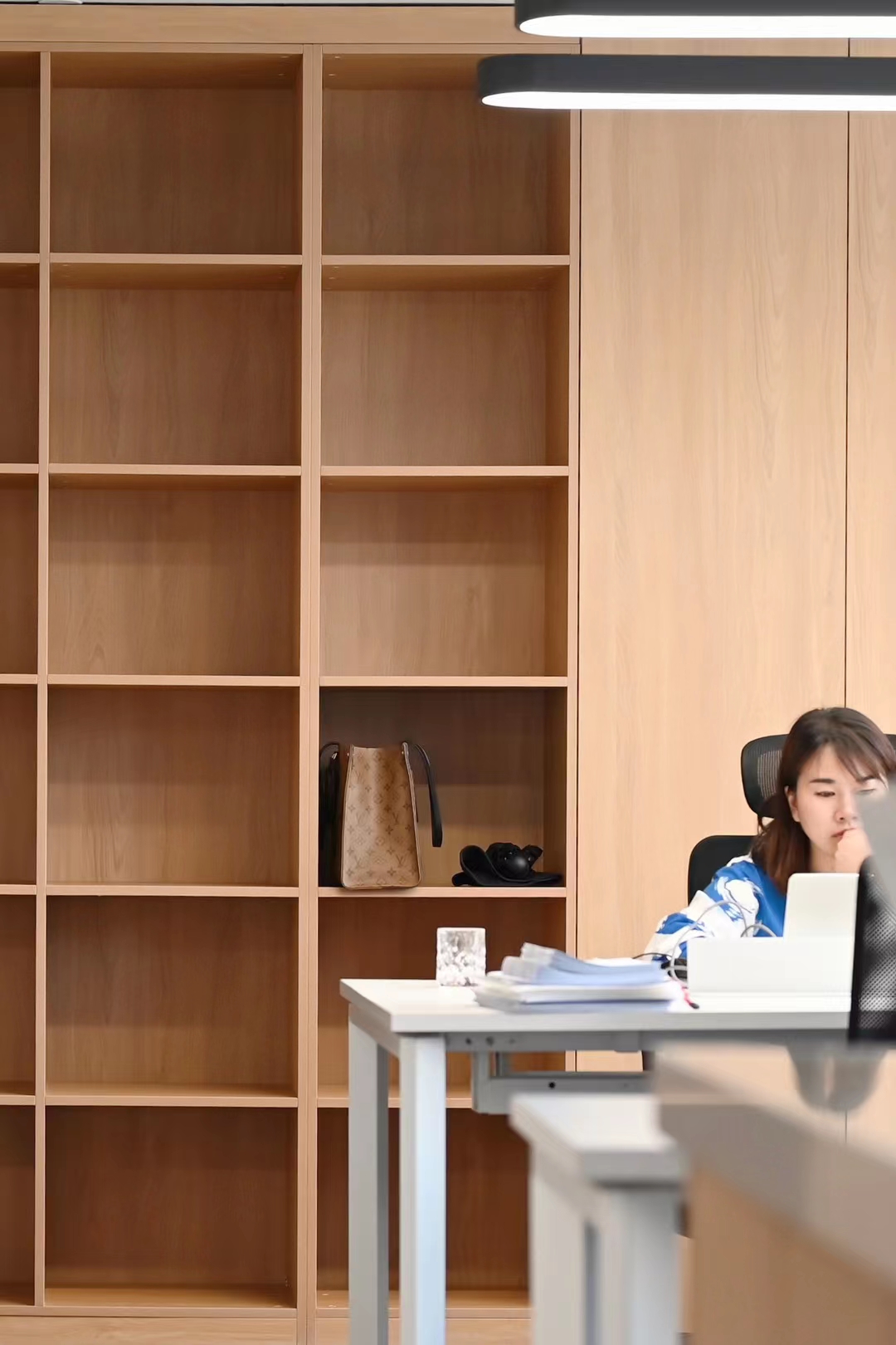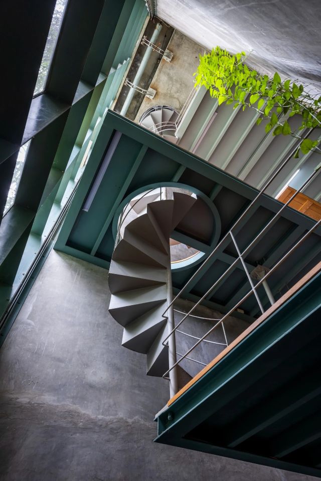 整体建筑在 4 个方向上每隔一段距离就设有一个开放空间,使楼层能够垂直连通,以增加同事之间的互动。但由于缺乏清晰的空间界限,每个人都会感觉他们在同一个房间里工作,这使得他们即使位于不同楼层也可以在垂直方向上互动和联系。最后建筑师选择了“悬浮结构”方案,所有地板都按照规划安放在特定的位置,并悬挂于屋顶,以创造出宽敞的工作空间,其视野不受支柱的影响。钢制的地板营造出轻盈飘逸感。