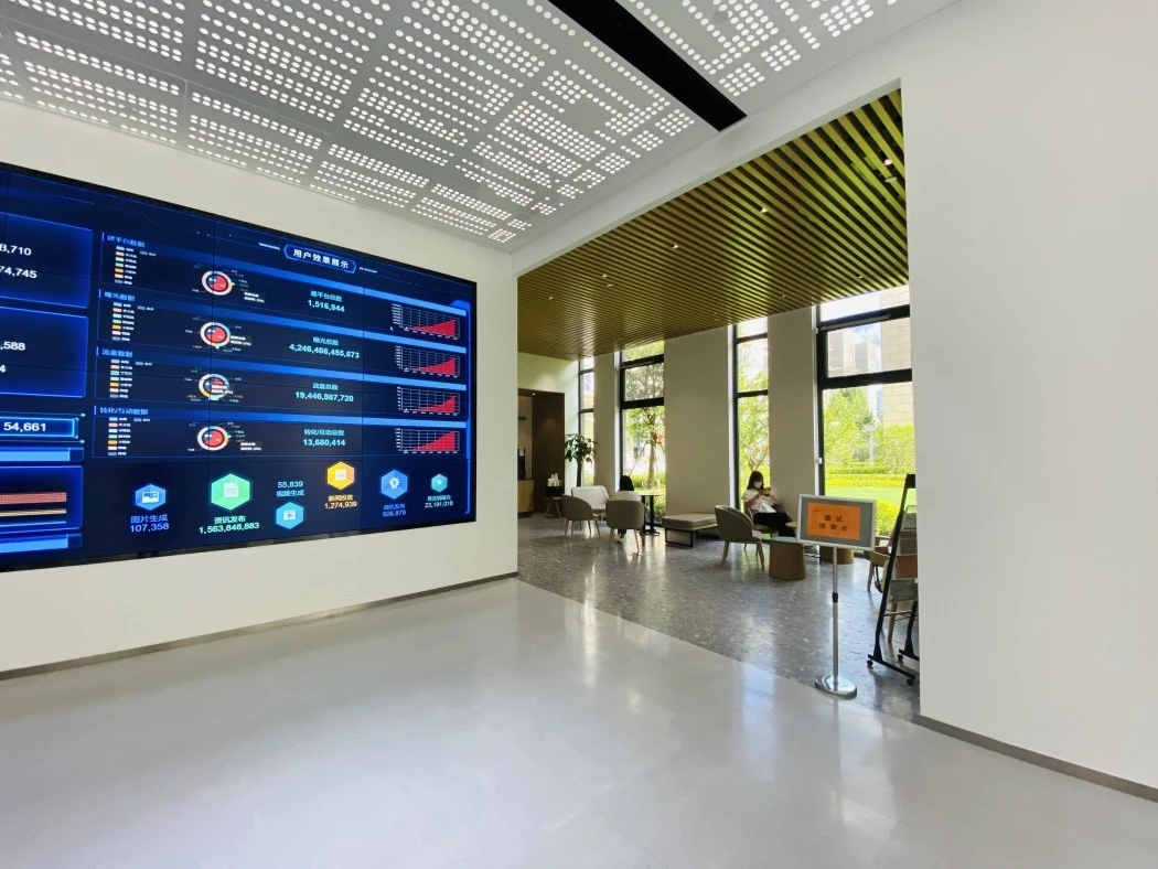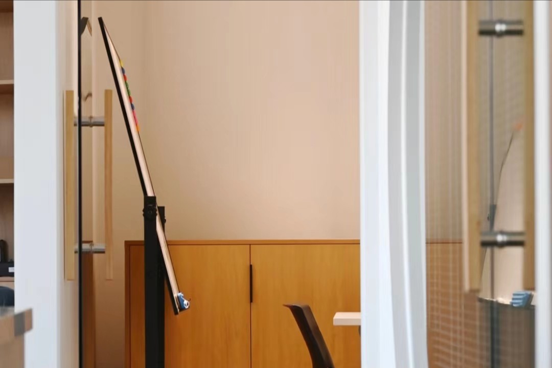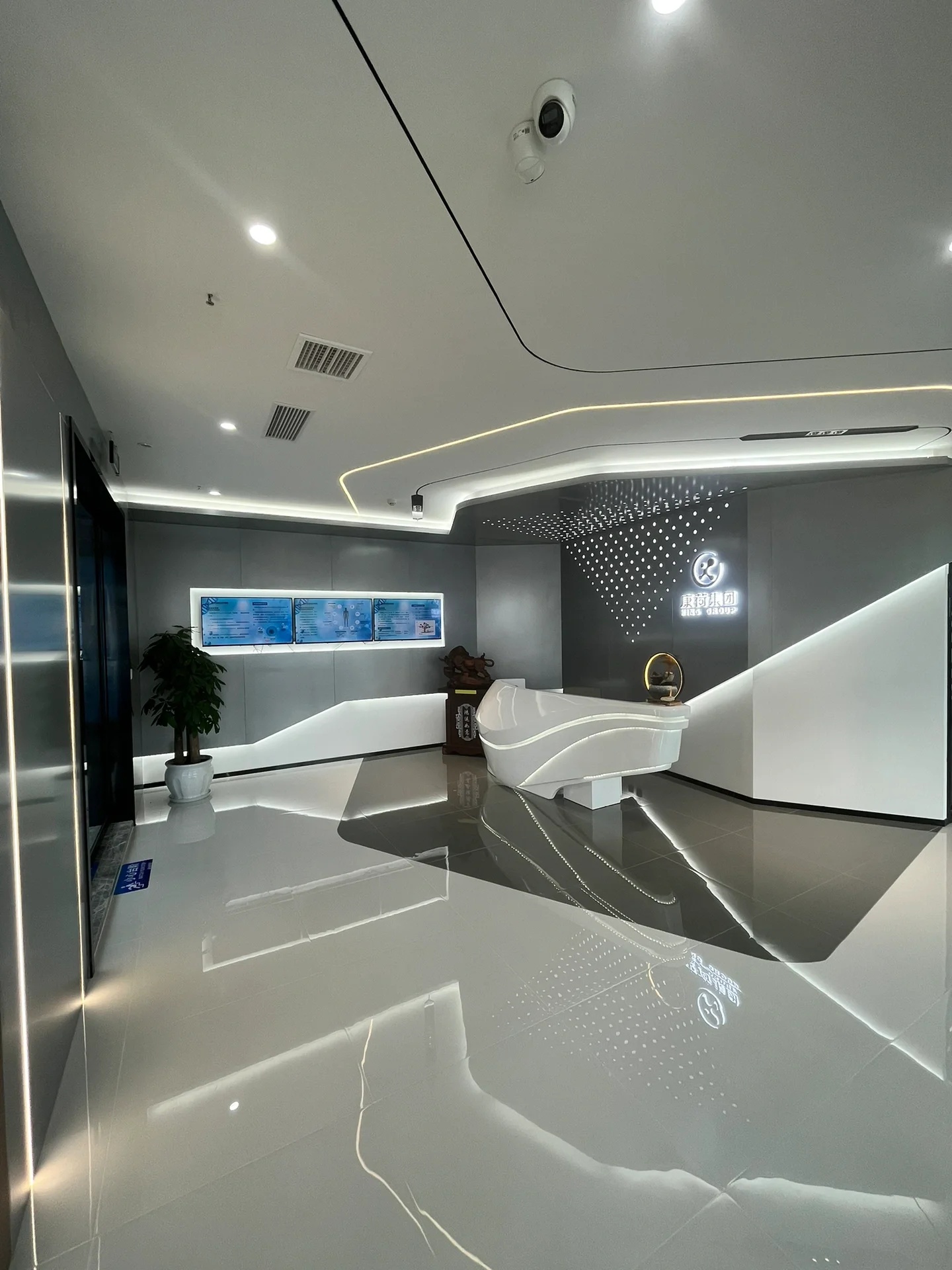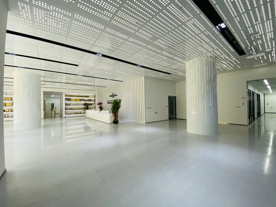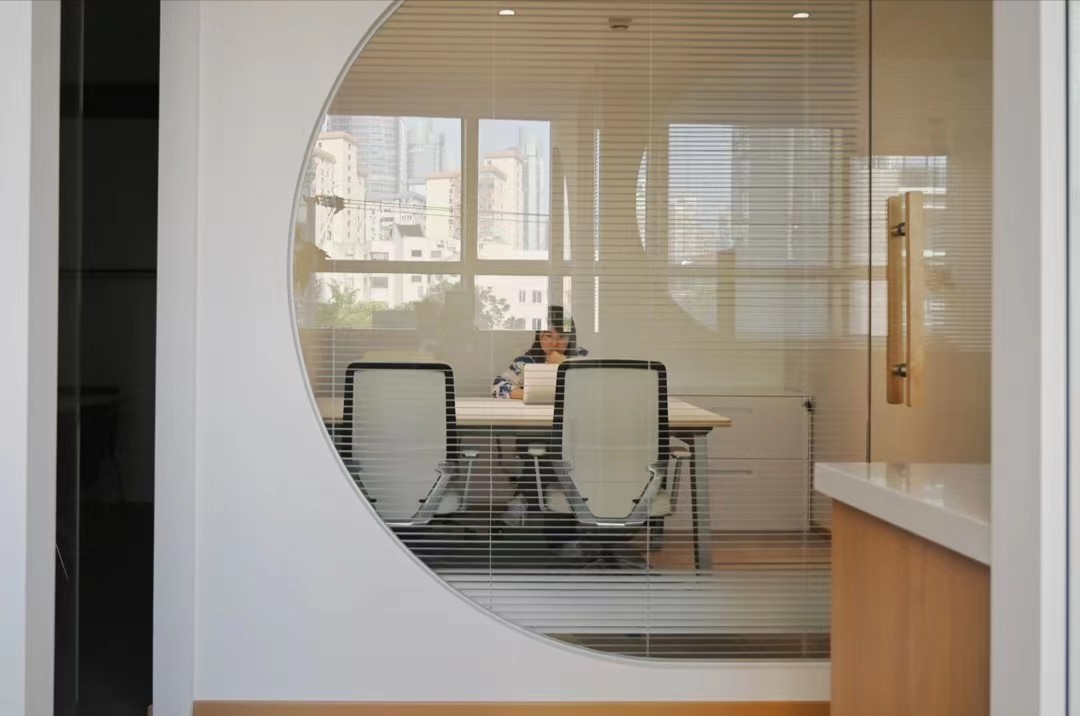 整体建筑在 4 个方向上每隔一段距离就设有一个开放空间,使楼层能够垂直连通,以增加同事之间的互动。但由于缺乏清晰的空间界限,每个人都会感觉他们在同一个房间里工作,这使得他们即使位于不同楼层也可以在垂直方向上互动和联系。最后建筑师选择了“悬浮结构”方案,所有地板都按照规划安放在特定的位置,并悬挂于屋顶,以创造出宽敞的工作空间,其视野不受支柱的影响。钢制的地板营造出轻盈飘逸感。