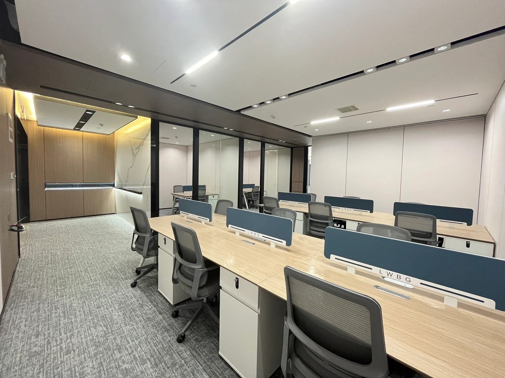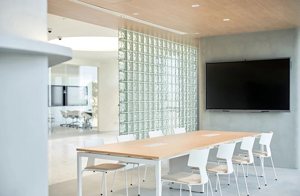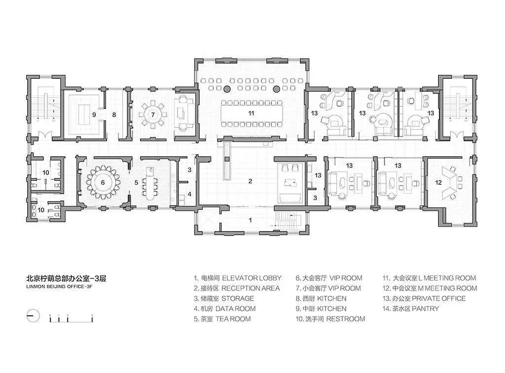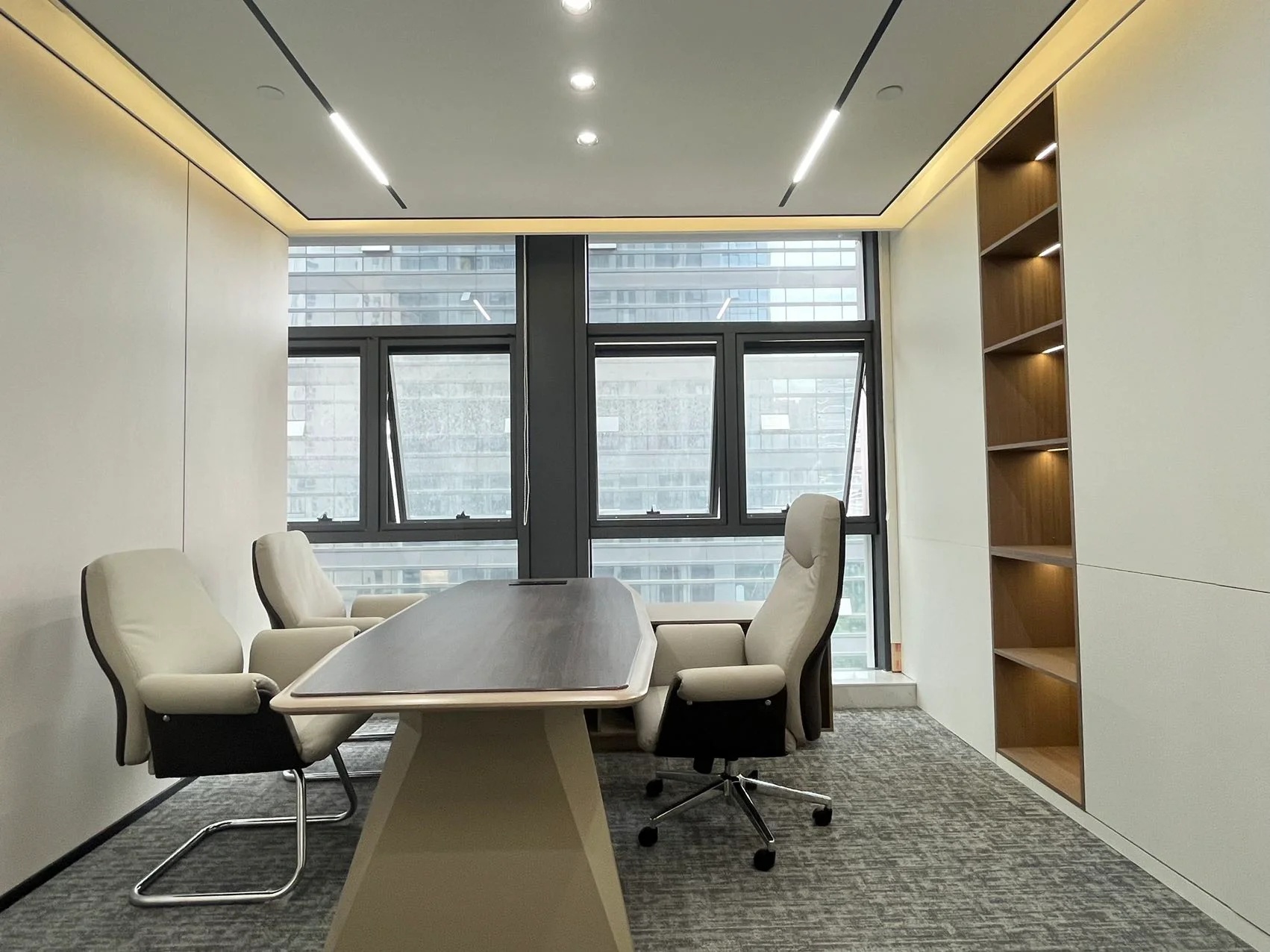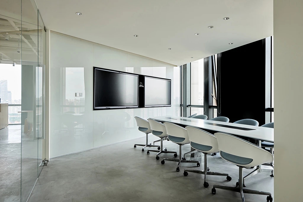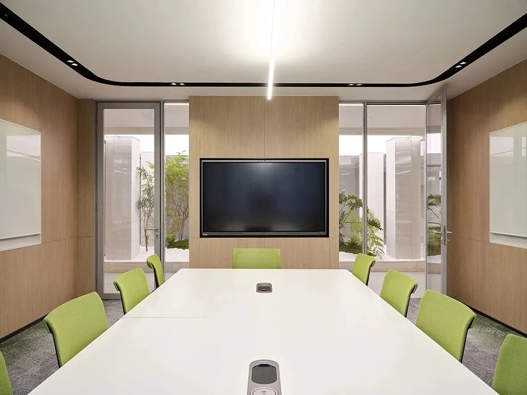 前厅区后方的大会议室,在保证大型会议基础上,在靠窗区域预留了空间保证了能增添座椅,以满足全员会议的功能