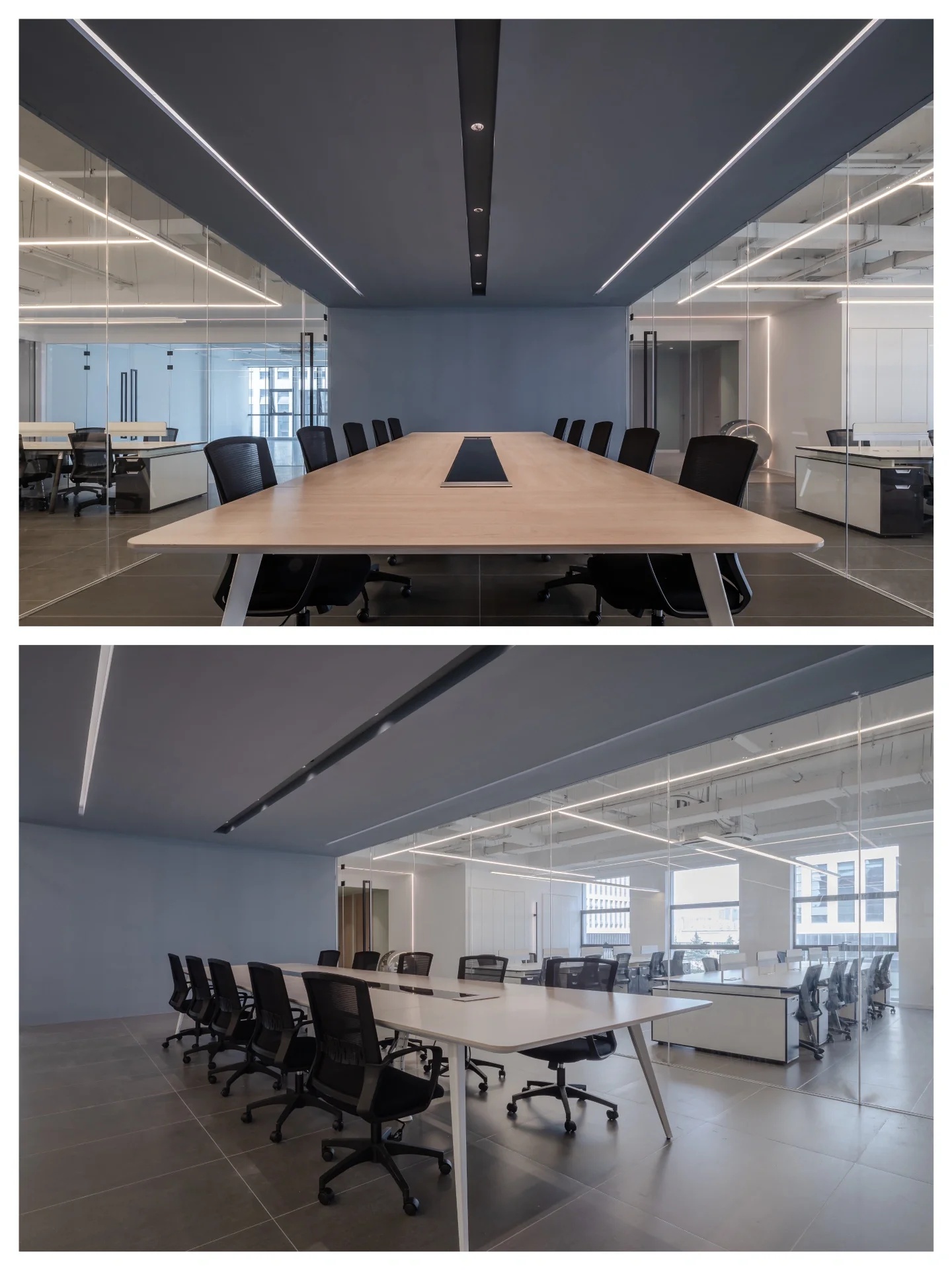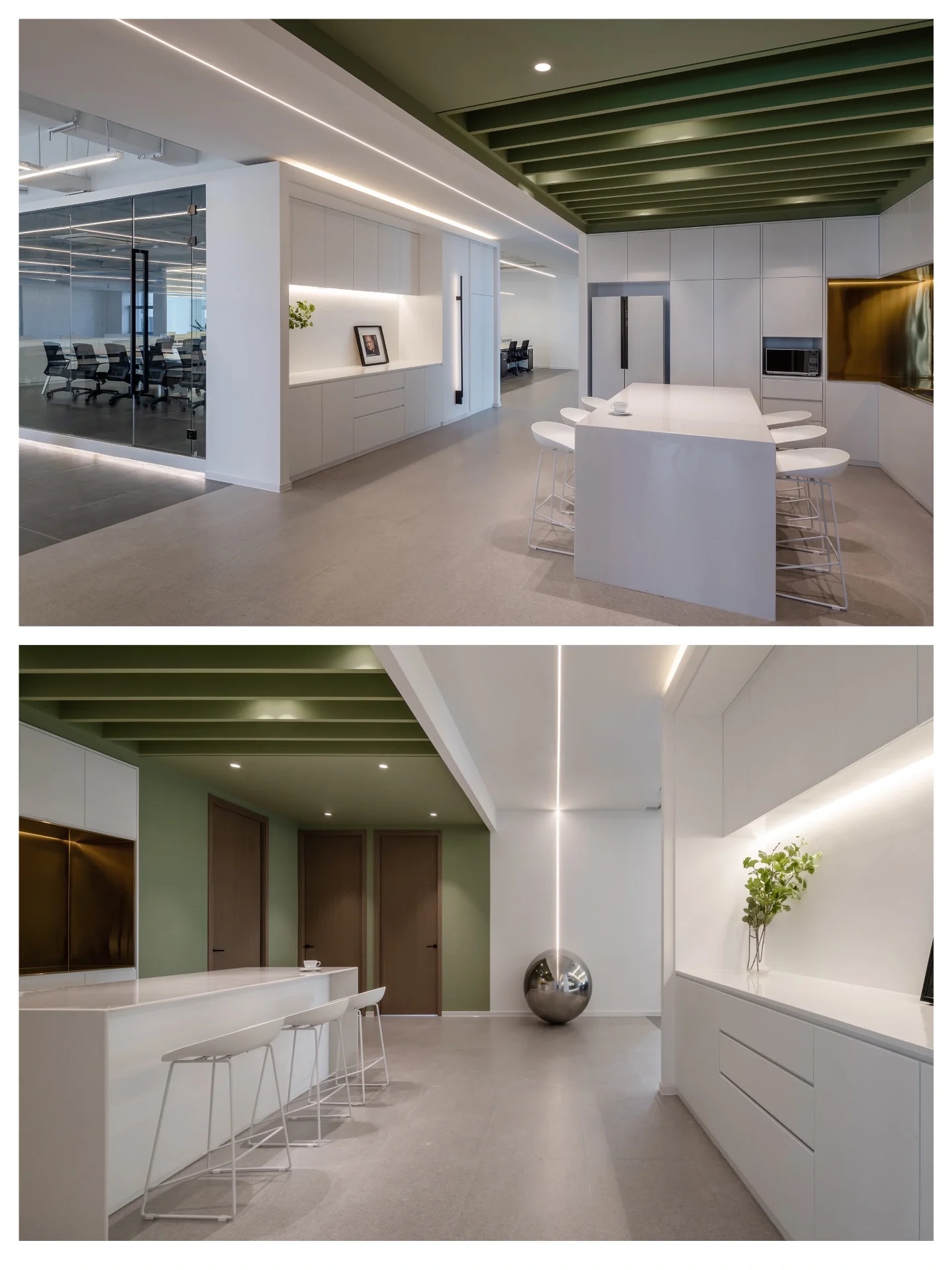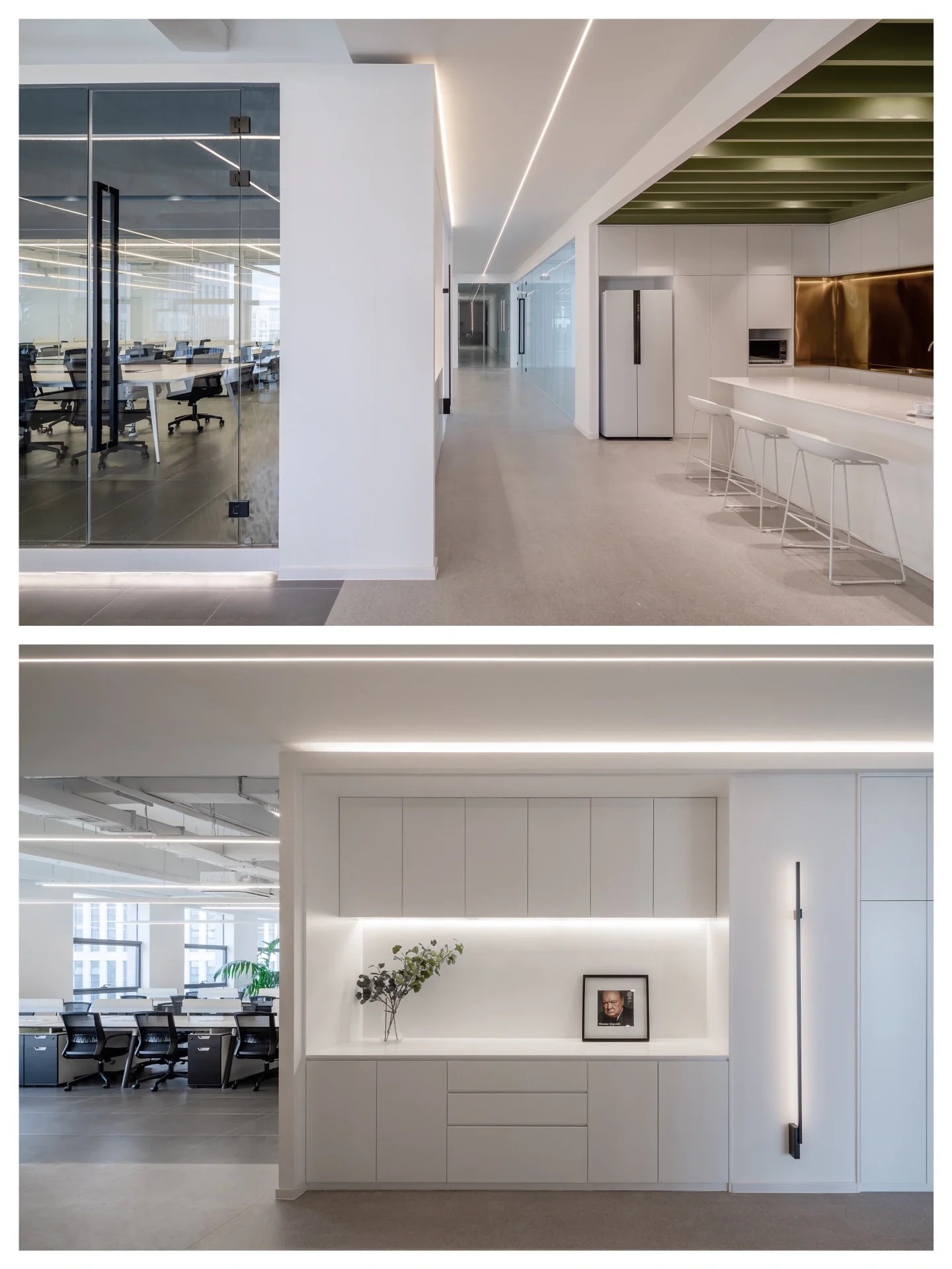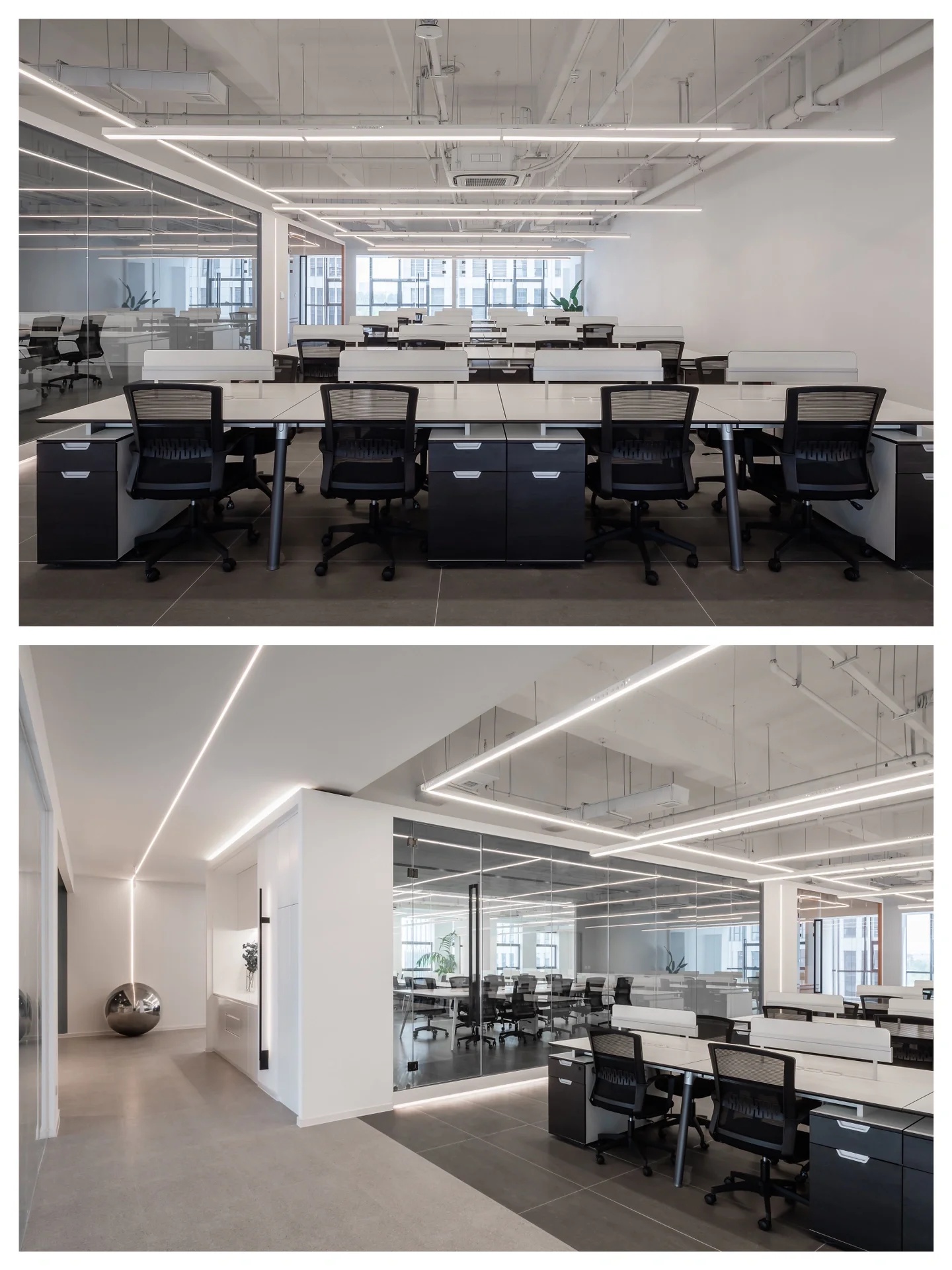 纵观整体,本案设计少有门与隔板的出现,或是以玻璃为墙,尽可能在保留必要私密空间的同时,增强工作中的流动性。使每个人都能在部分领域中,实现自我的价值,找到归属感与责任感。并且,更有效促进员工间的相互交流,以提高团队协作及凝聚力。