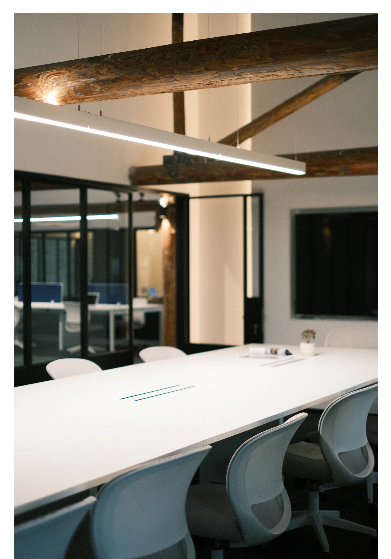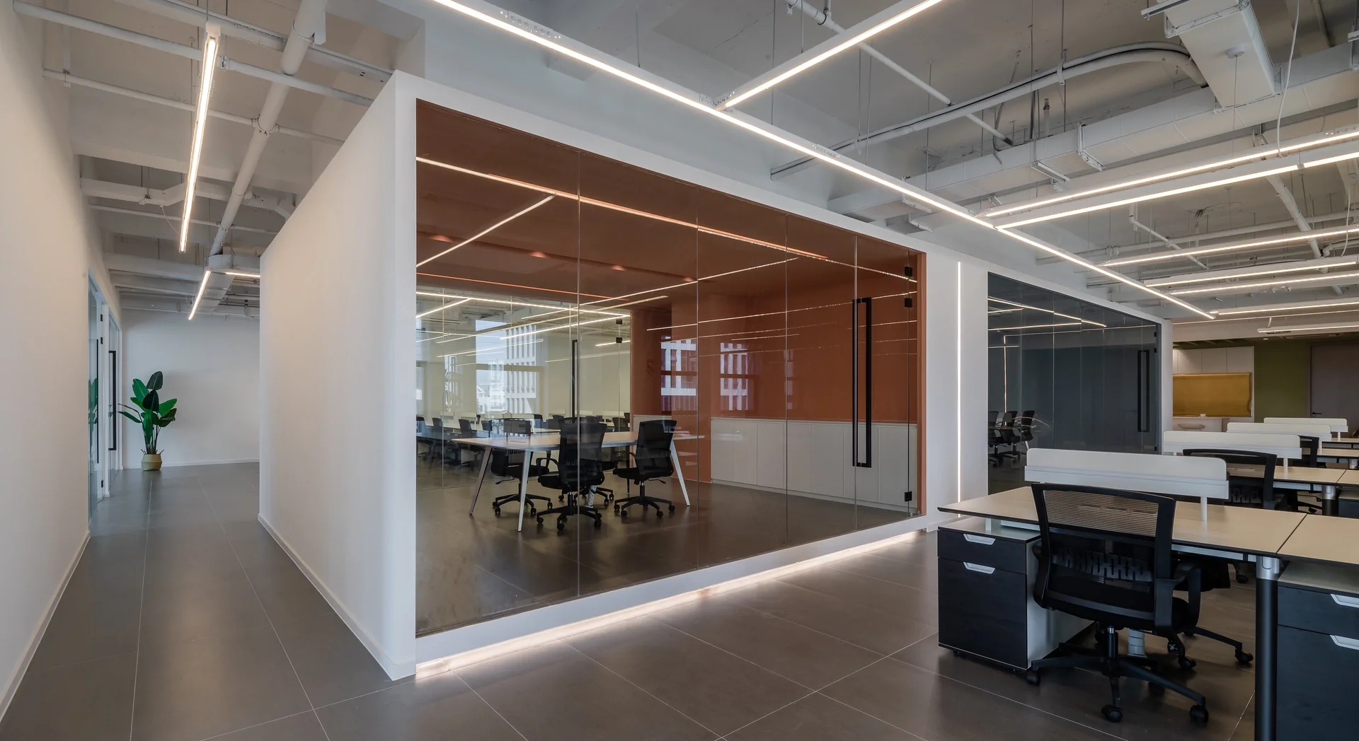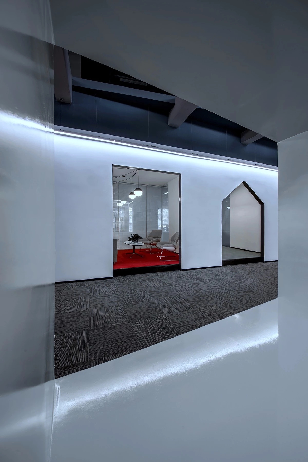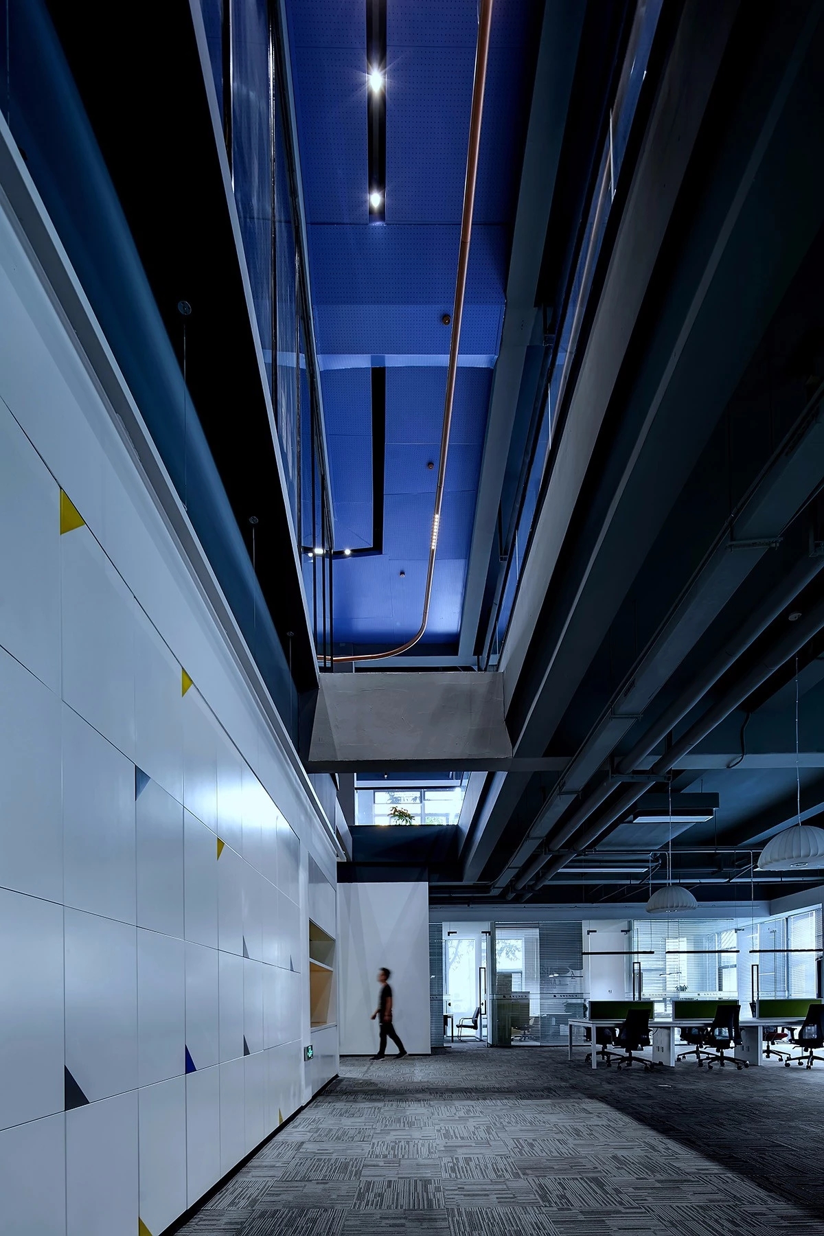 纵观整体,本案设计少有门与隔板的出现,或是以玻璃为墙,尽可能在保留必要私密空间的同时,增强工作中的流动性。使每个人都能在部分领域中,实现自我的价值,找到归属感与责任感。并且,更有效促进员工间的相互交流,以提高团队协作及凝聚力。
