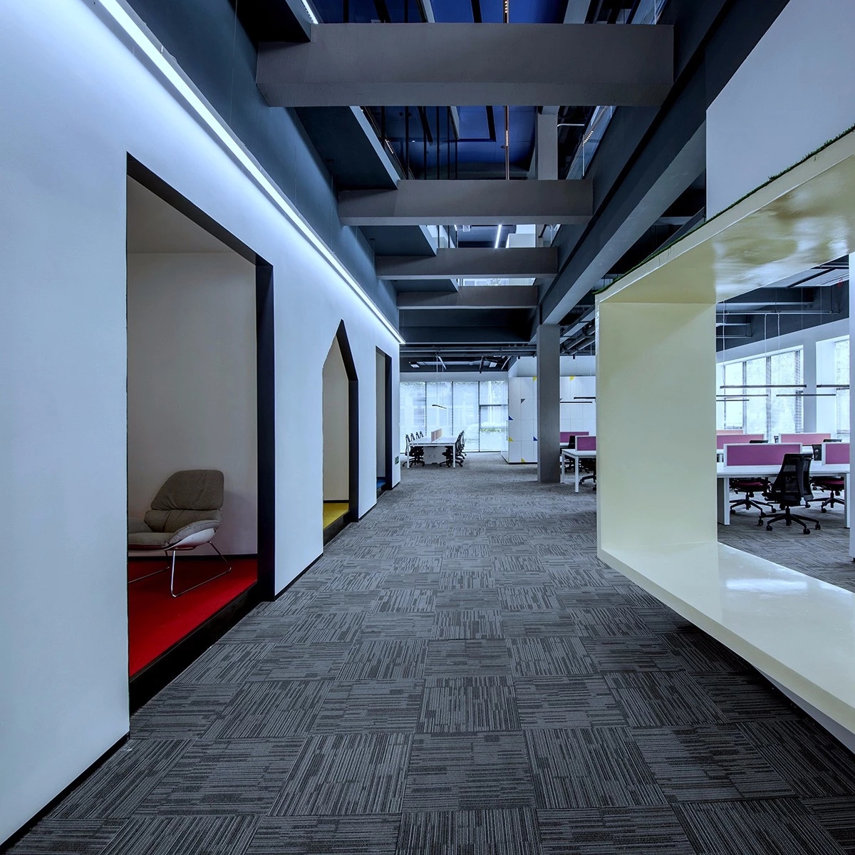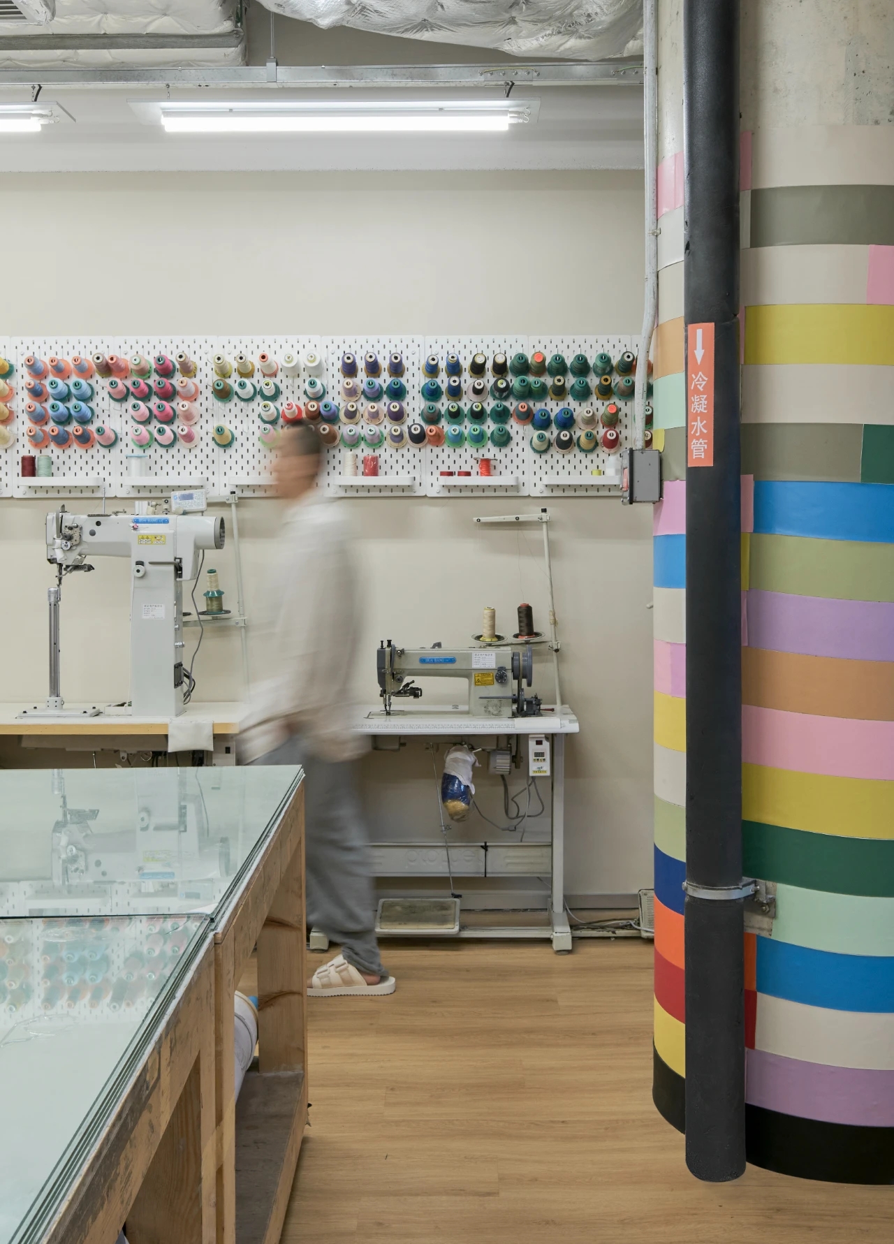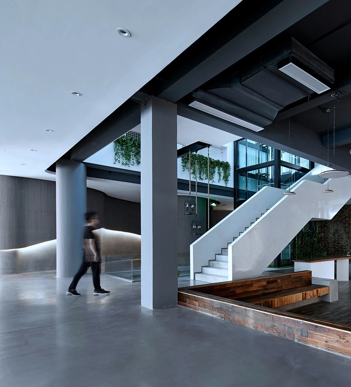 FREE WORK北侧是空间ARTWAY,可转动轨道射灯、模拟天光的构造和漫反射照明系统共同组成服务着这个空间,品牌的展示、RUNWAY、WORKSHOP甚至晚宴都会在这个灵活的空间中进行,很大程度上成为了品牌对于文化输出的线下空间。