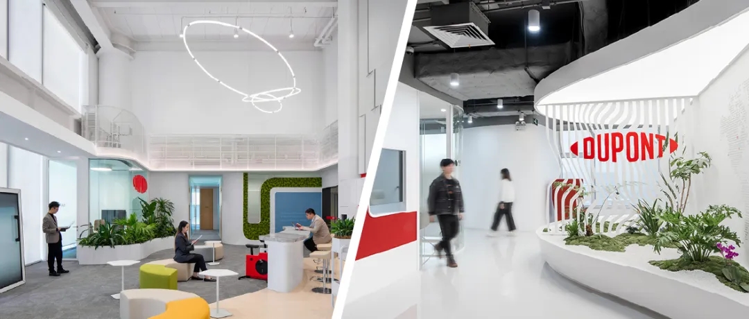 同时通过空间布局的组织也做到内部办公区域和外部来访人员活动区域互不干扰,做到使用人员的“汇聚、流通、连接”的目的。