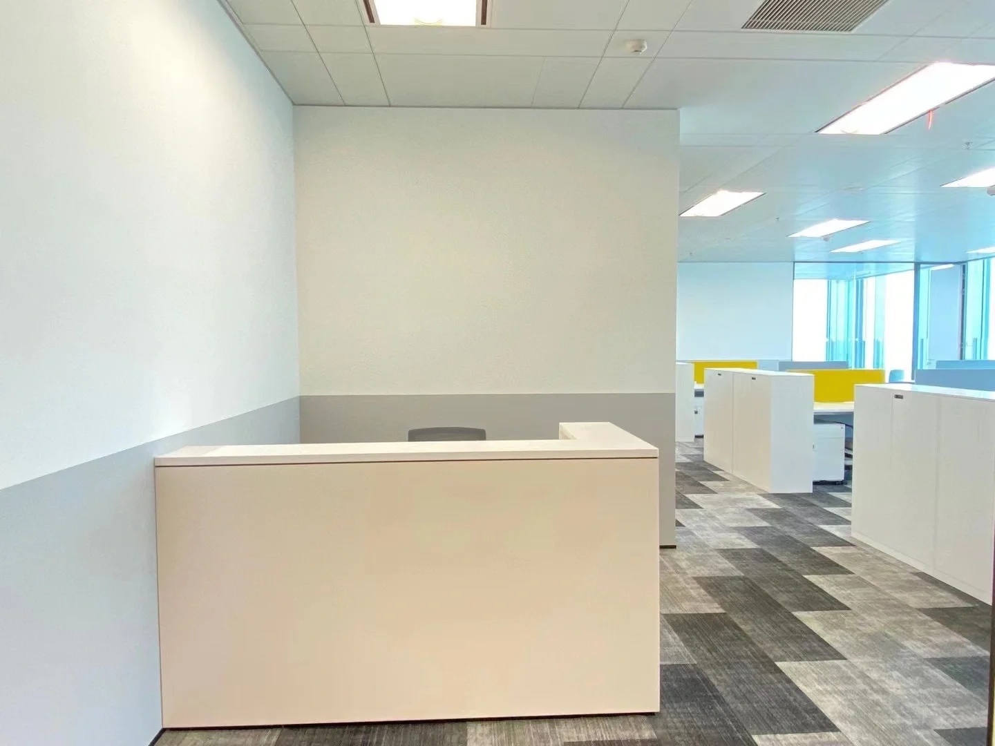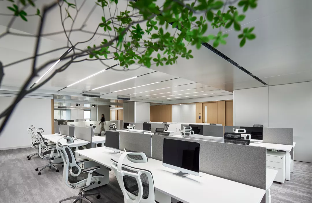 开放办公区,空间一如既往的纯净与通透。在这里,设计师希望与大堂的设计错开感觉。